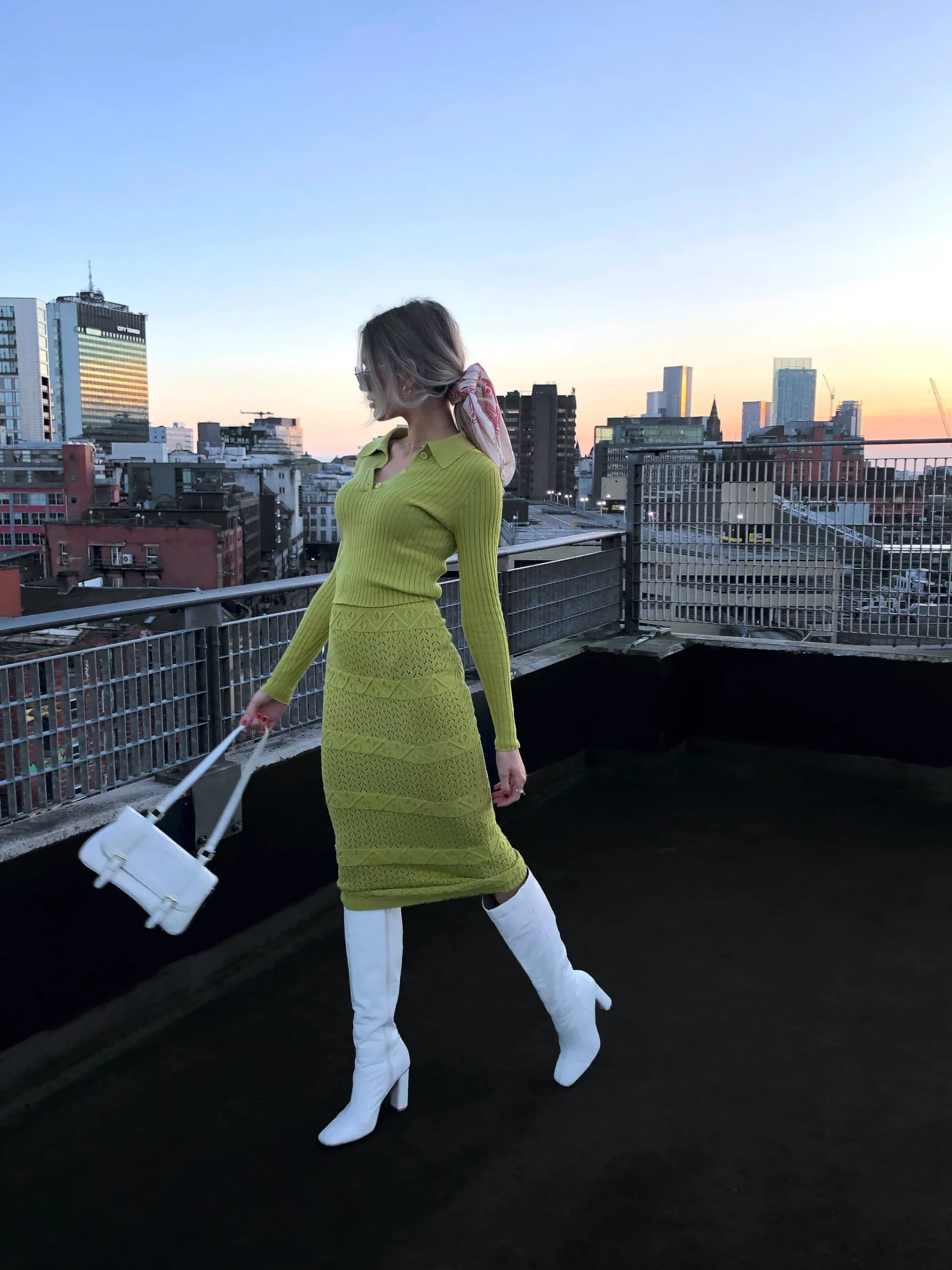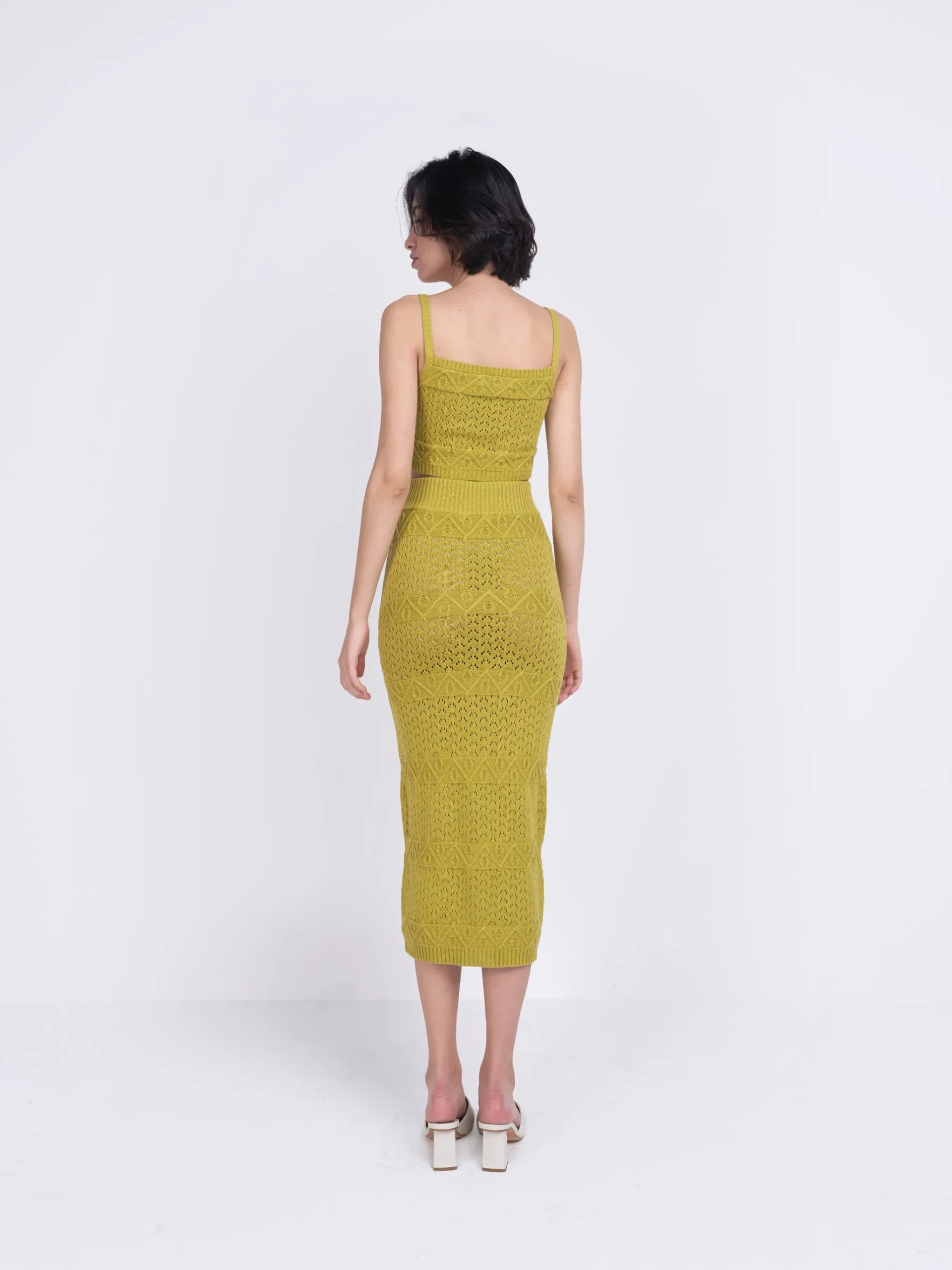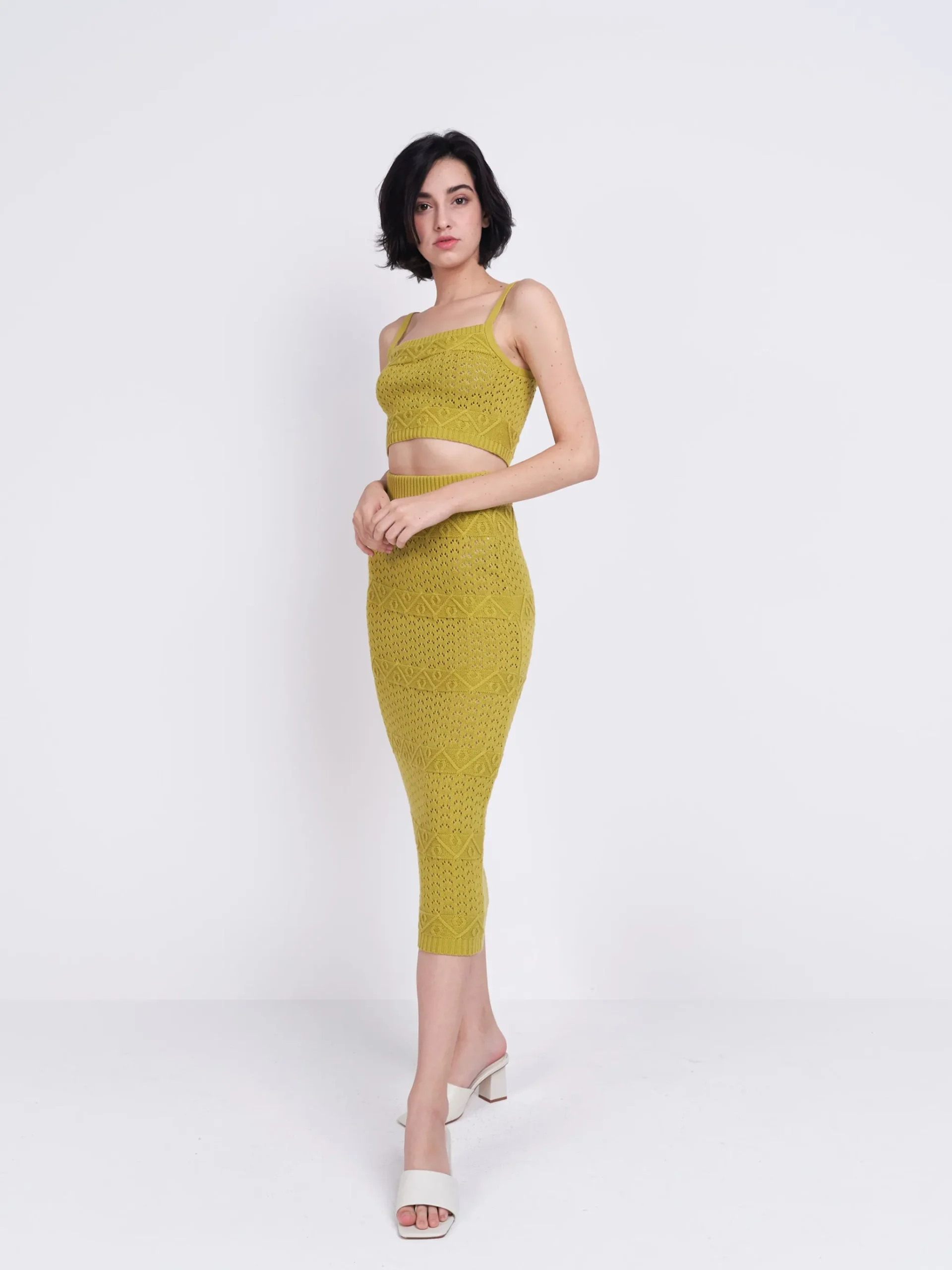 Glamorous Care Olive Green Knitted Midi Skirt. This staple piece in on trend olive green is a must have for your Spring wardrobe. Fashion forward, flattering and super versatile. Made from organic cotton, this midi skirt will have you feeling and looking your best every time. Dress with any of your favourite tops and some heels to complete your look.
