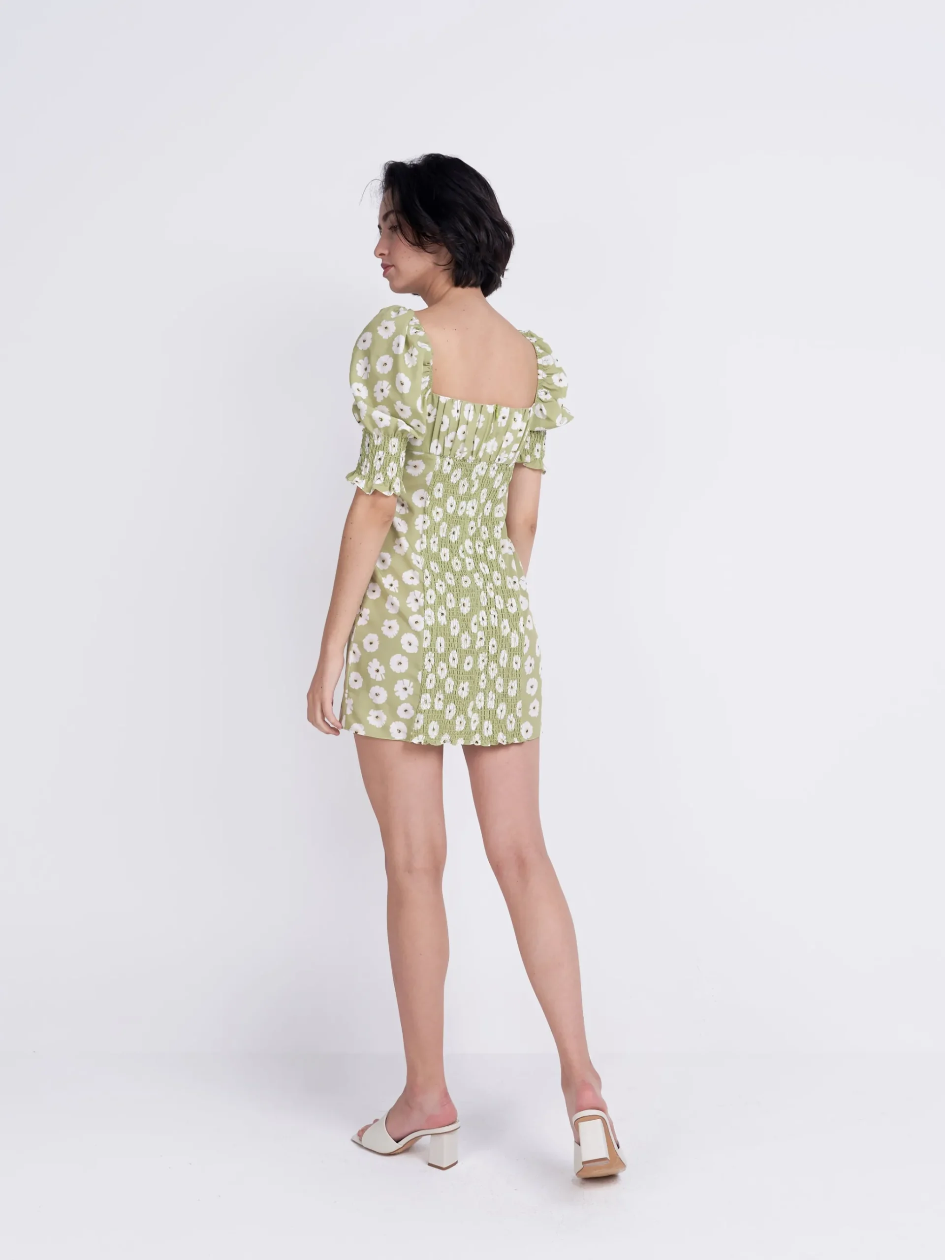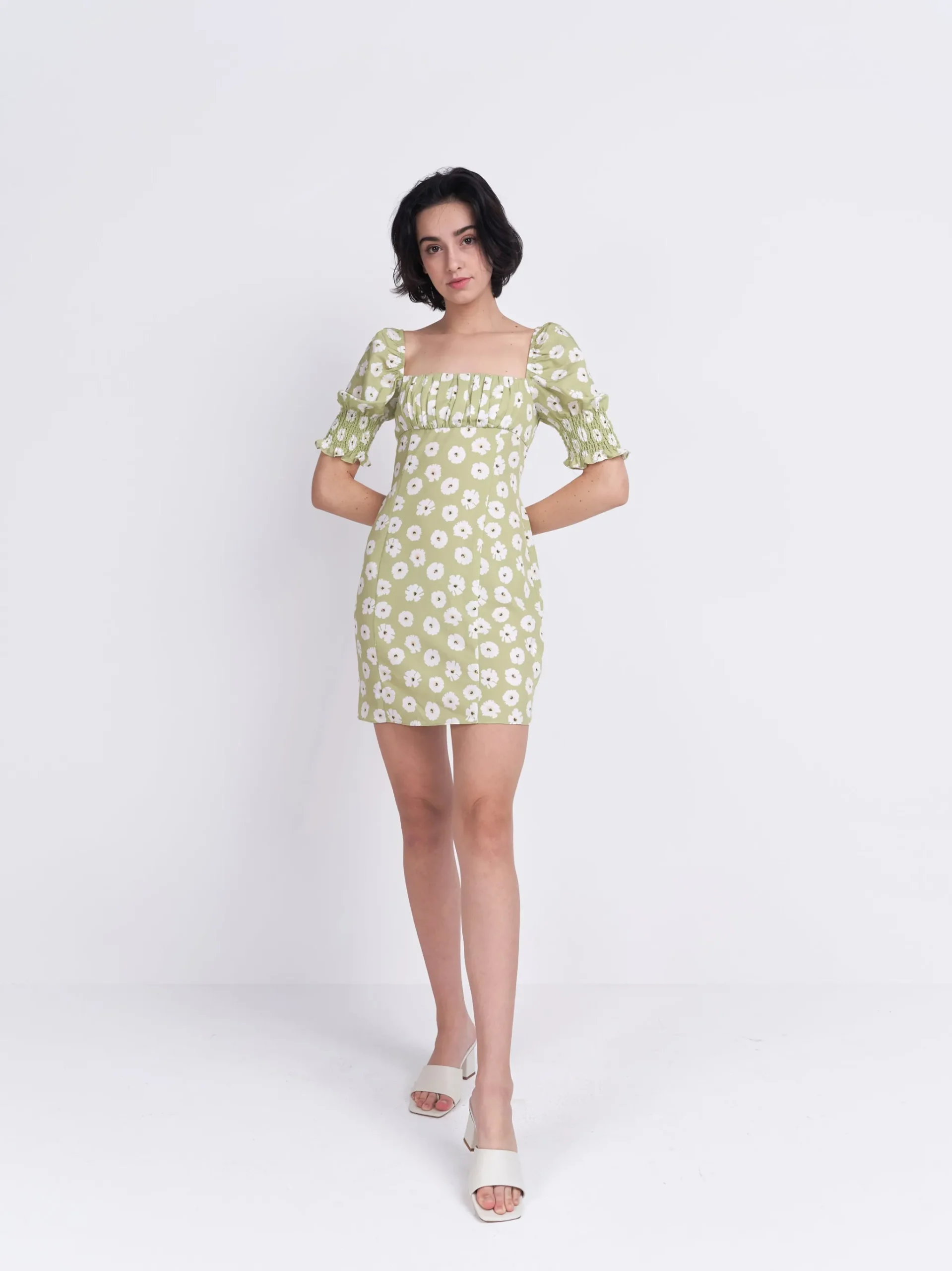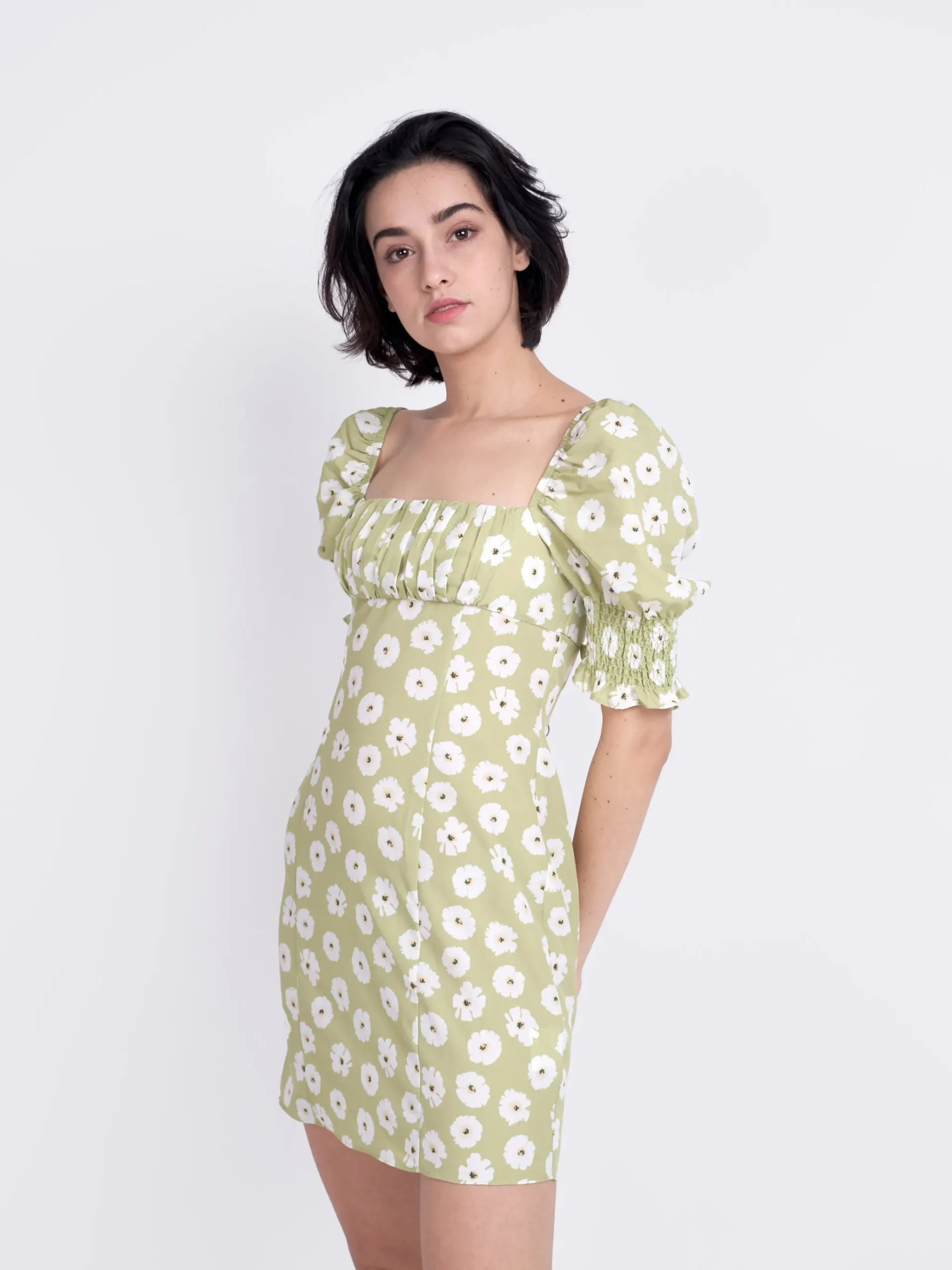 Glamorous Care Olive Green Flower Puff Sleeve Mini Dress. Opt for a sustainable silhouette with this mini dress featuring puff shirred sleeves. We love this environmentally friendly print this Spring. Perfect with some chunky trainers for a daytime look, or mix it up with some strappy heels to dance the night away.