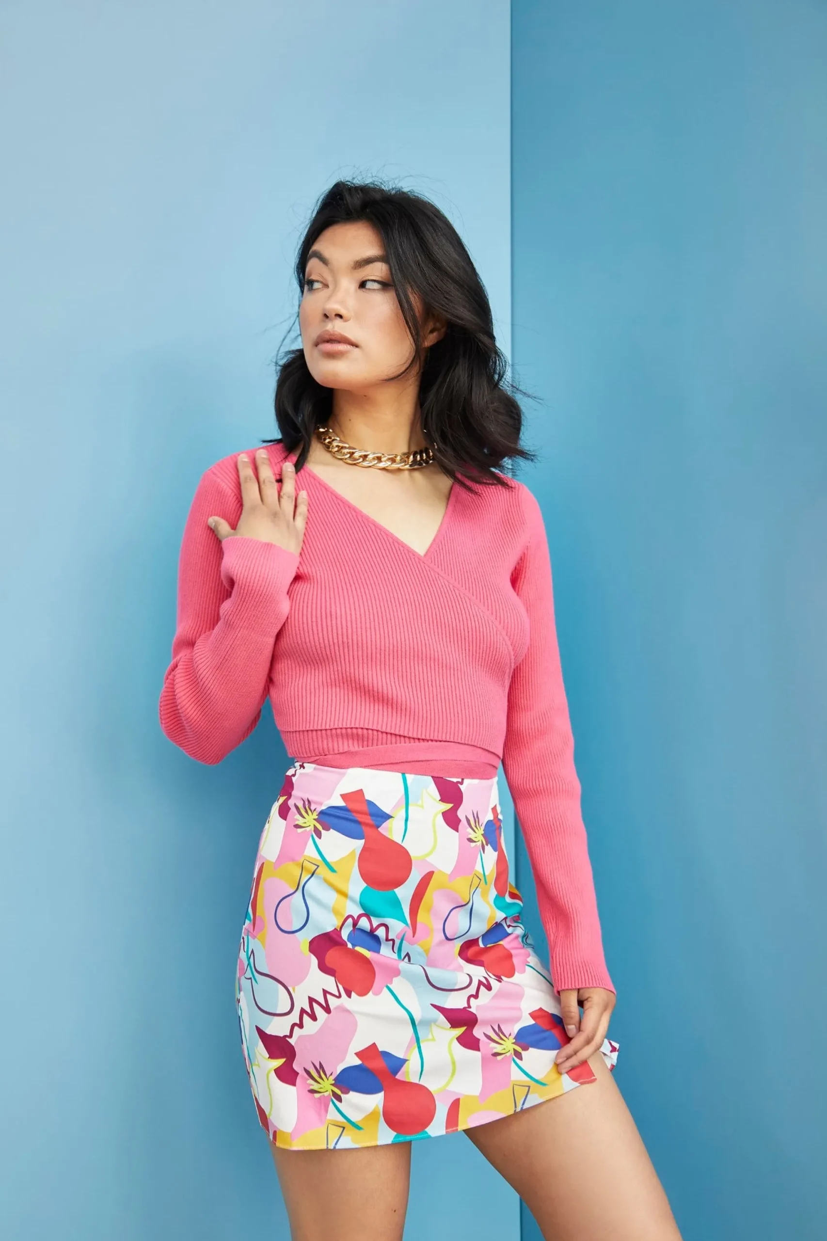 Glamorous Care Womens Abstract Rainbow Print Side Split Mini Skirt. This skirt is perfect for your wardrobe this season! Featuring a side split and on trend pattern, we love this piece here at Glamorous. Pair with a cute jumper chunky heels and a shoulder bag for the ultimate fashion forward sustainable look.