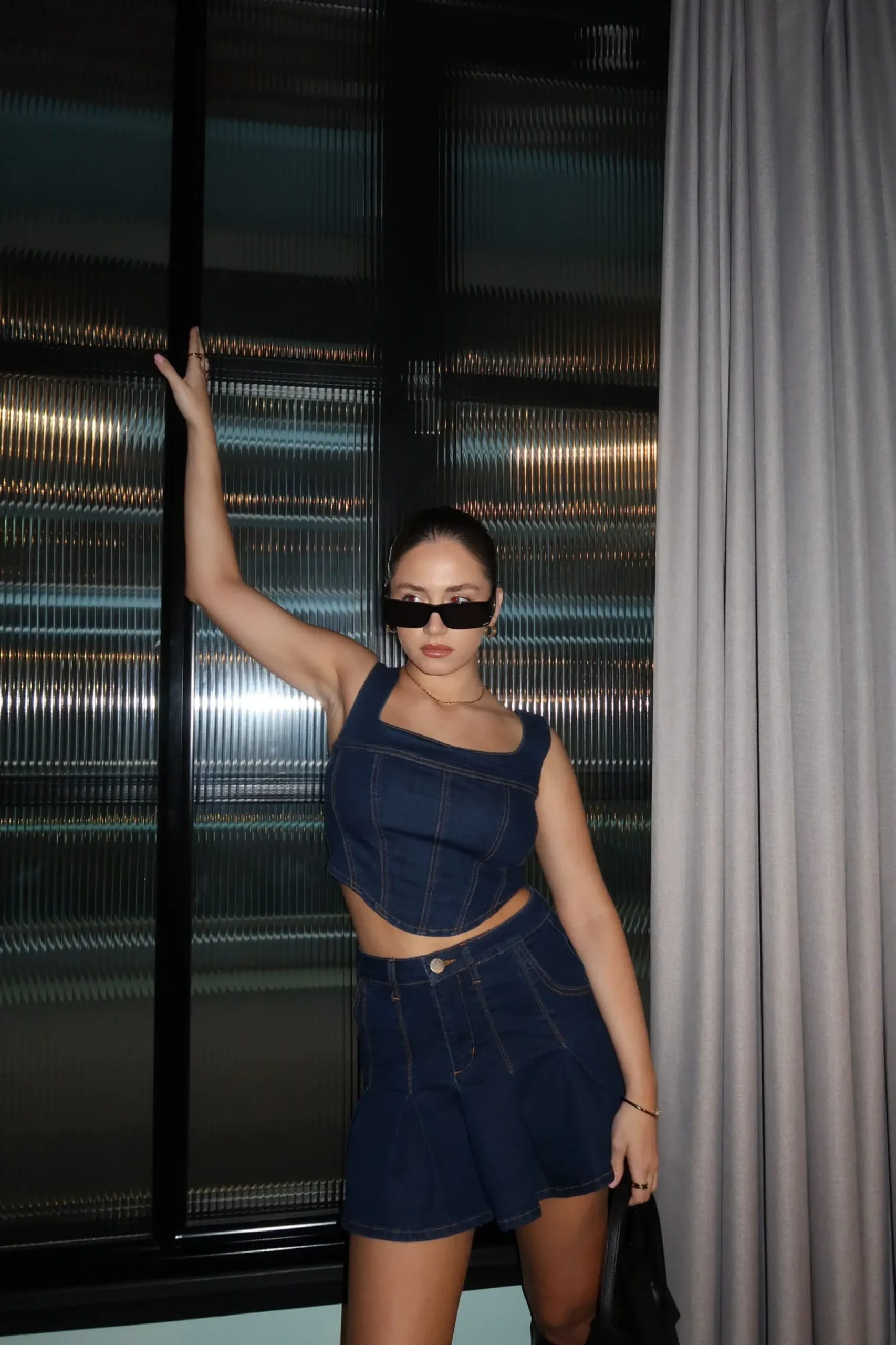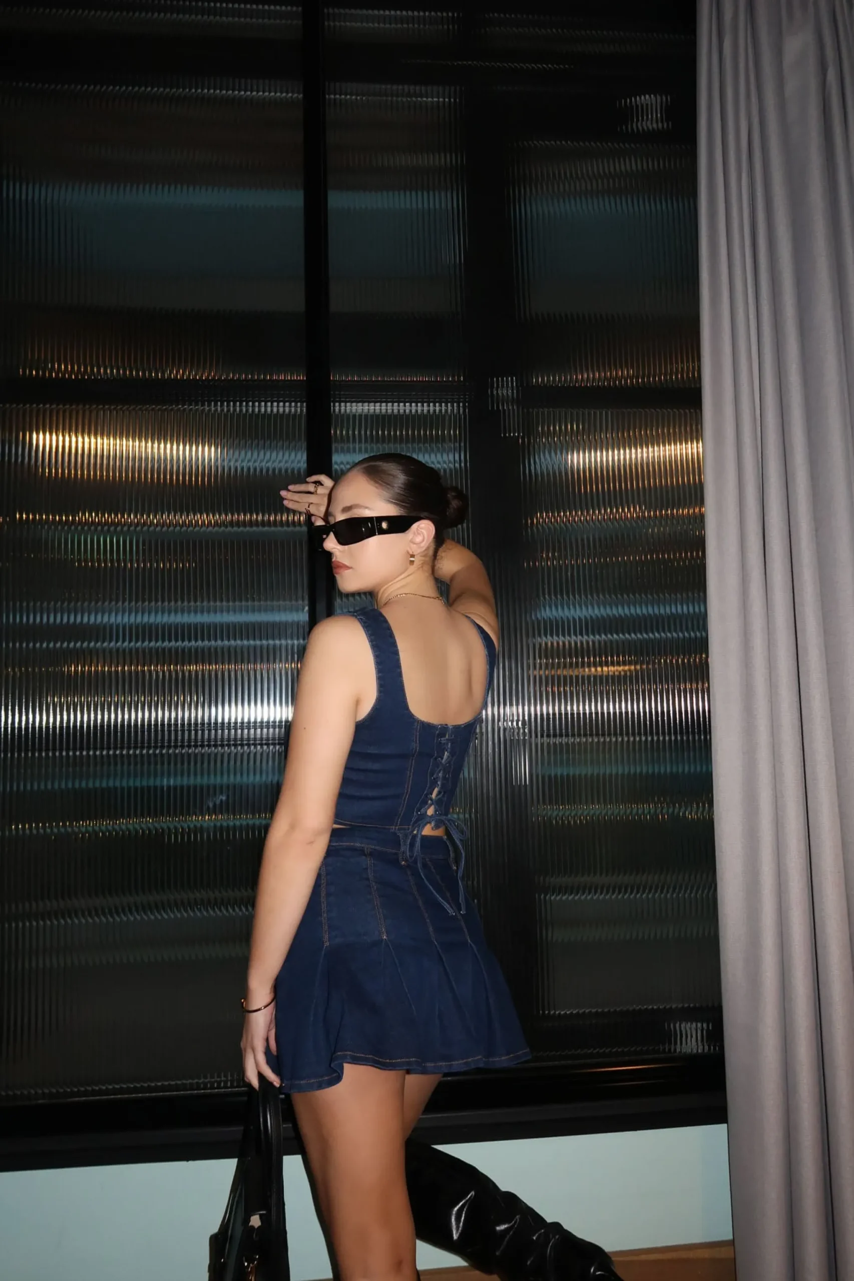 Glamorous Care Women’s Indigo Wash Lace-Up Back Corset Top. Look chic and stylish in this Lace-Up Back Corset Top! The corset structure and lace-up back give it an edgy look, while the contrast stitch details and recycled fabric make it a sustainable fashion choice. To complete your look, pair it with the matching skirt for a statement-making set.