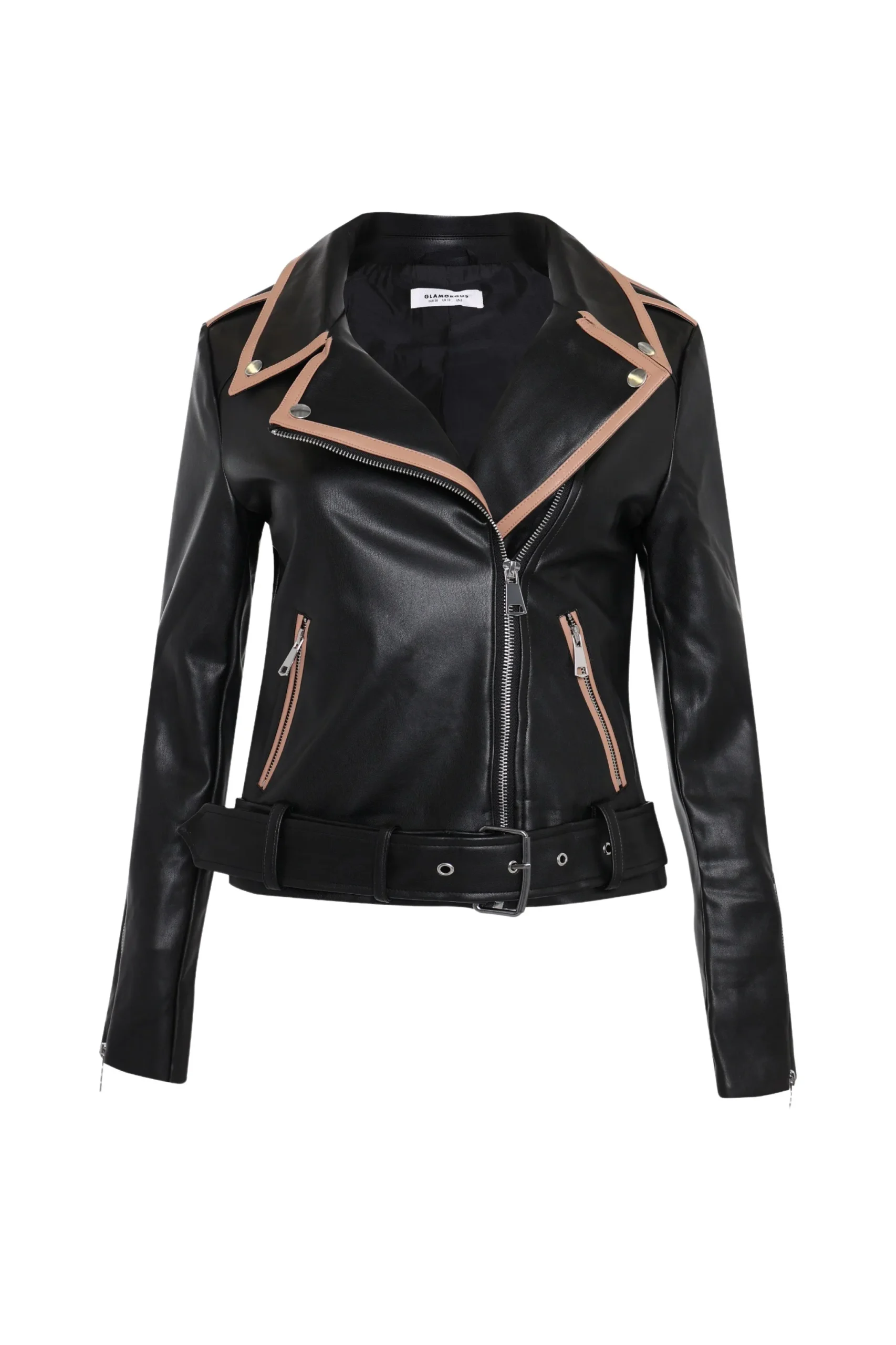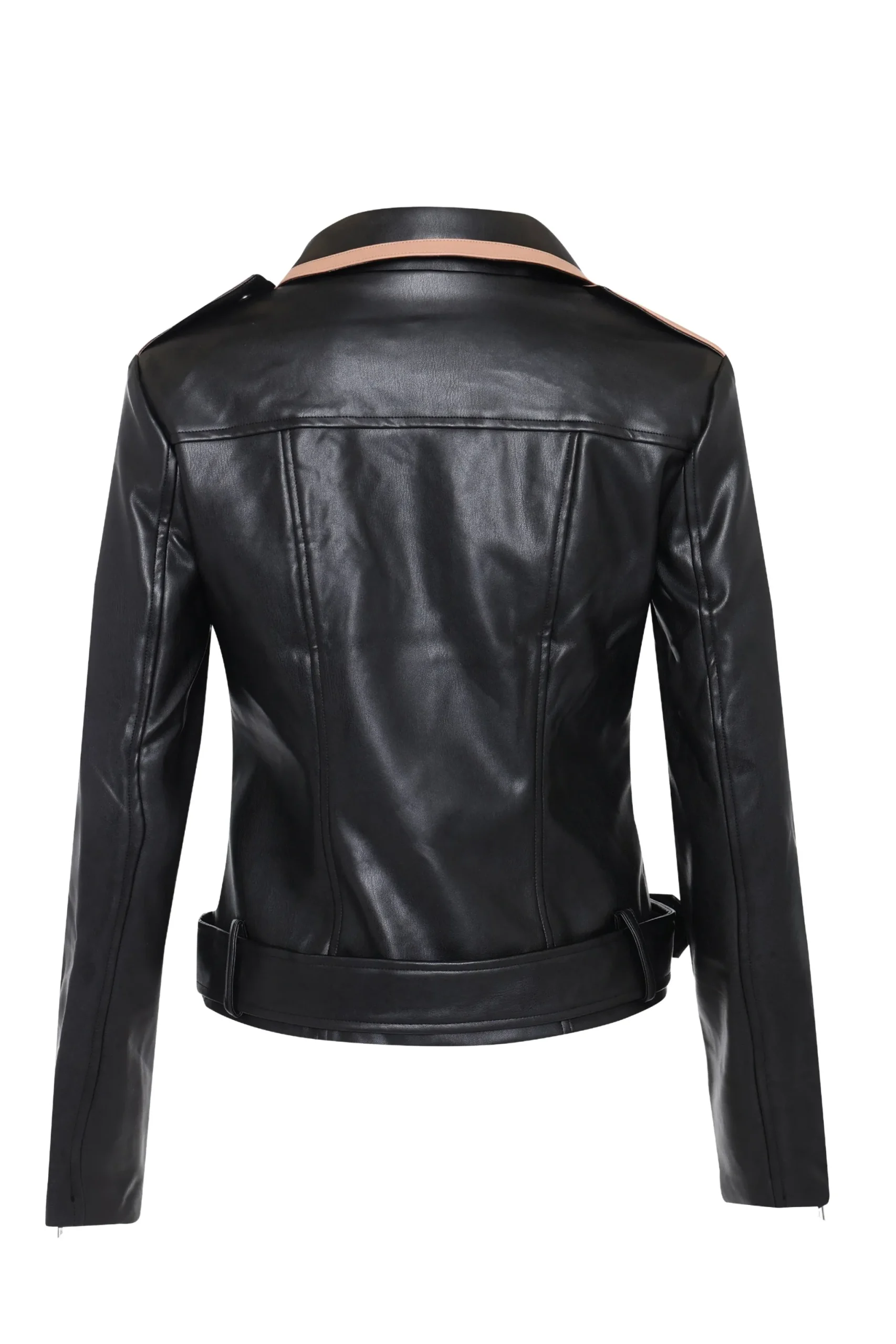 Glamorous Womens Black Tan Faux Leather Long Sleeve Jacket. This gorgeous piece is perfect for your wardrobe this season. Featuring an on trend colour and flattering cut, this jacket will not fail to impress! Style with matching faux leather mini skirt and boots for that effortless elegant look.