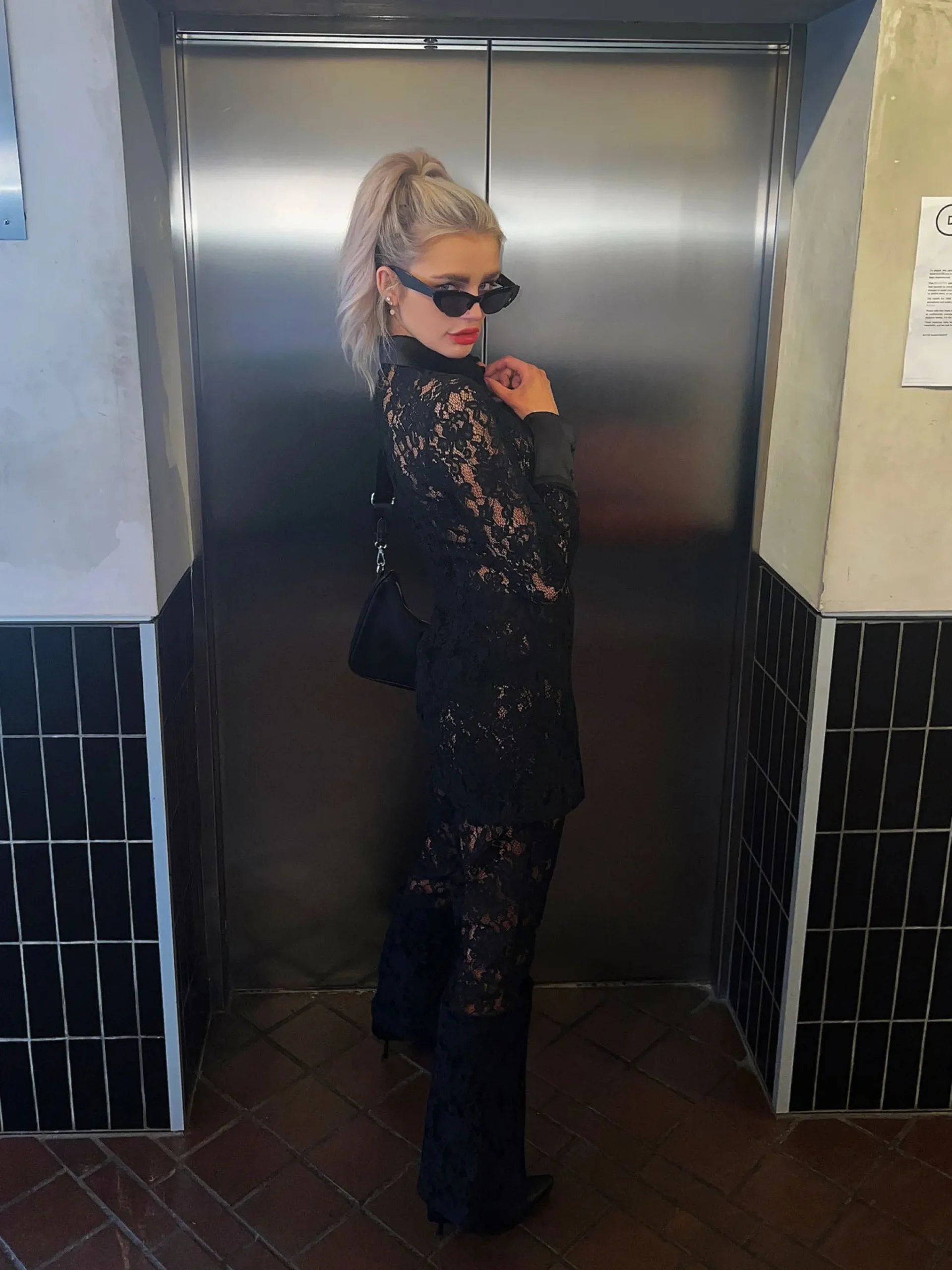 Glamorous Studio Womens Black Lace High-Waisted Flared -Trousers. Our Black Lace High-Waisted Flared Trousers are the perfect choice for your next night out! Show off your sassy side in the flaring leg and high-waisted design with the contrast waistband, and add the matching shirt for a head-turning look.