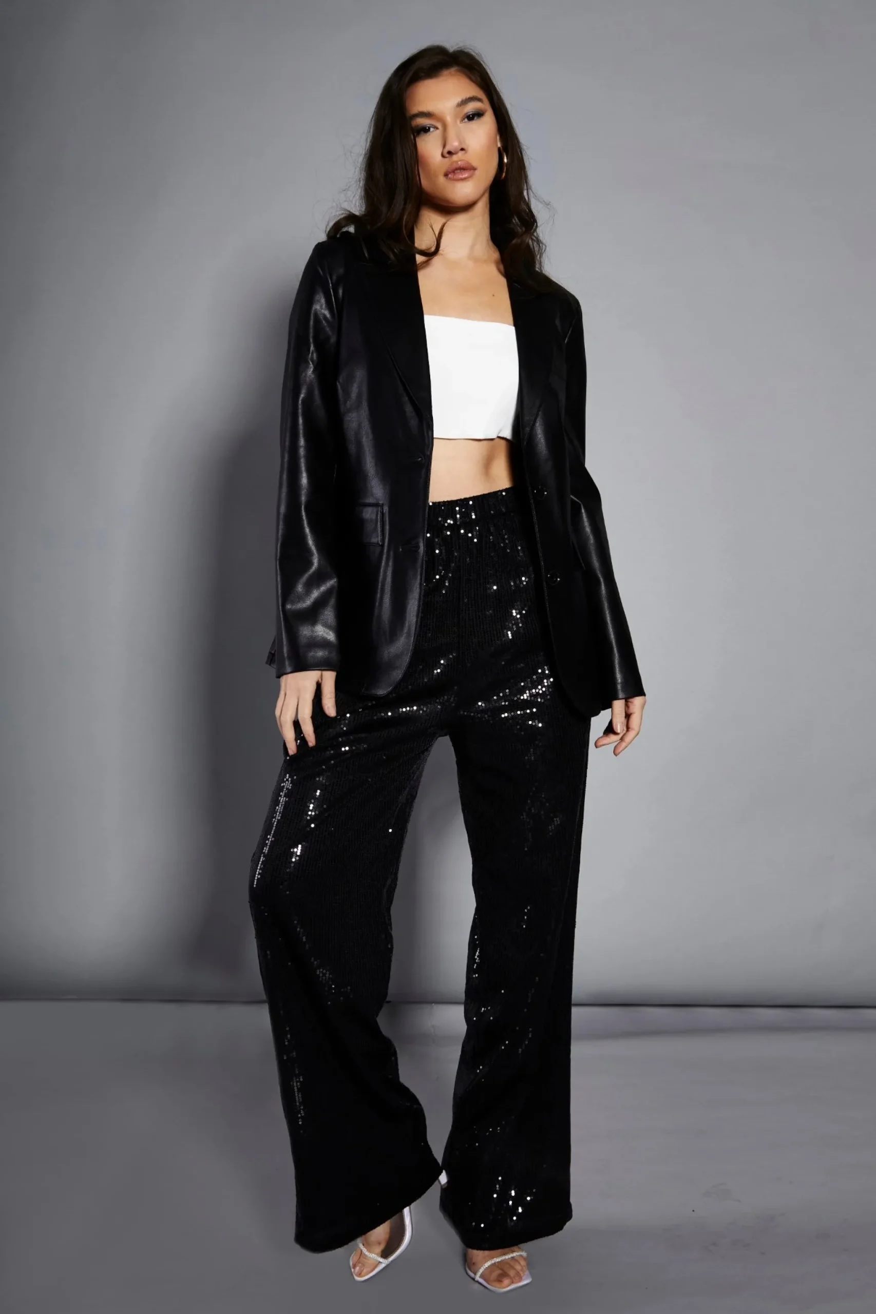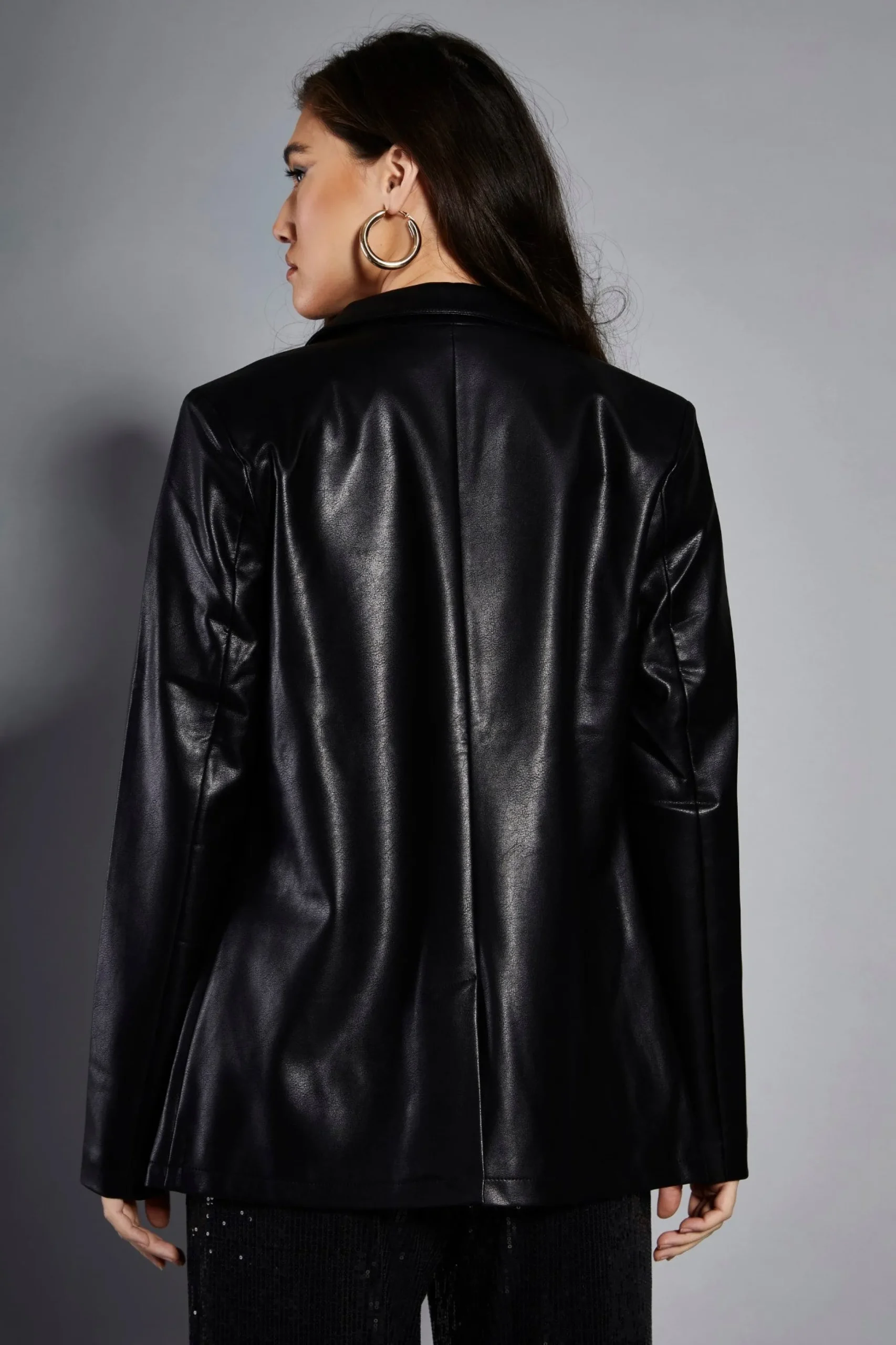 Glamorous Studio Black PU Blazer Jacket. This Blazer is the perfect layering piece this autumn. Featuring a single breasted fit, with functioning pockets. Looks great teamed with jeans and trainers or elevate the look with a mini dress some strappy heels to take it from day to night.