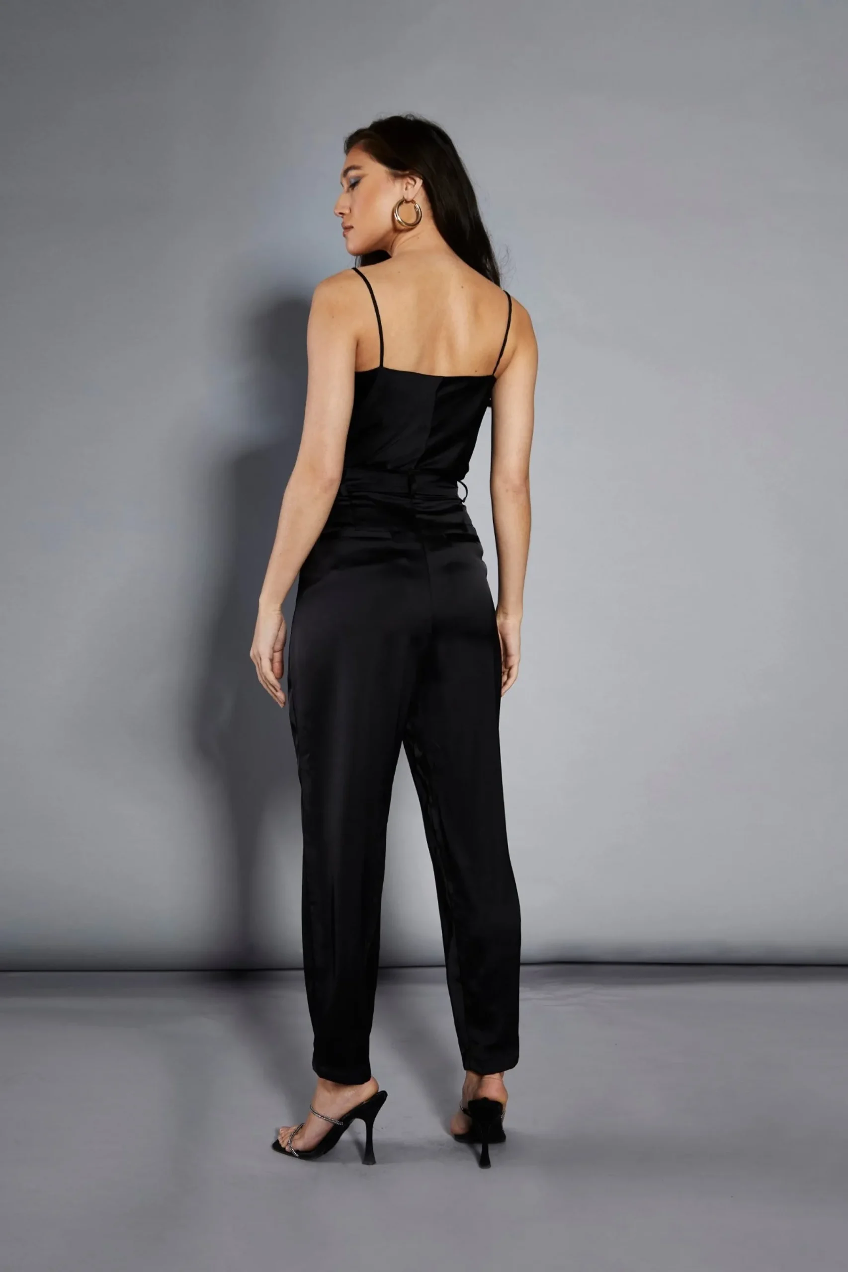 Glamorous Studio Black Satin Cropped Straight Leg Trousers. This staple piece is a must have for your autumn wardrobe. Featuring a simplistic cropped straight leg style these trousers will be versatile addition to your wardrobe. Wear with a statement top and heels for a classic evening look!