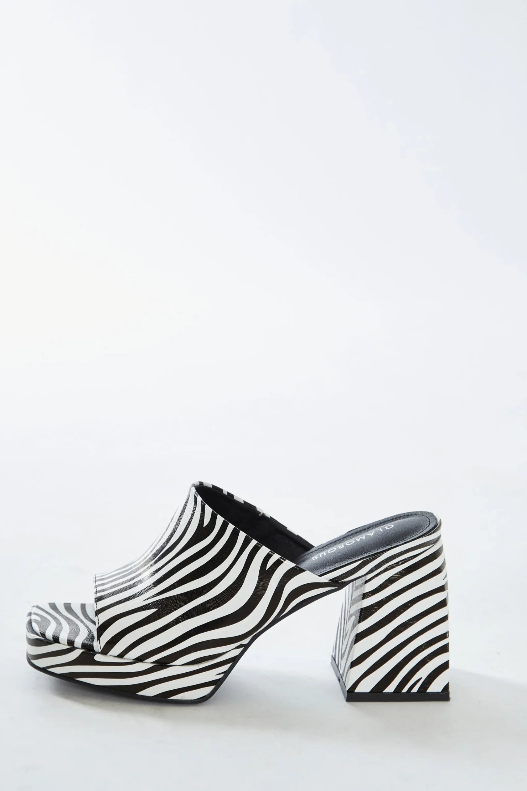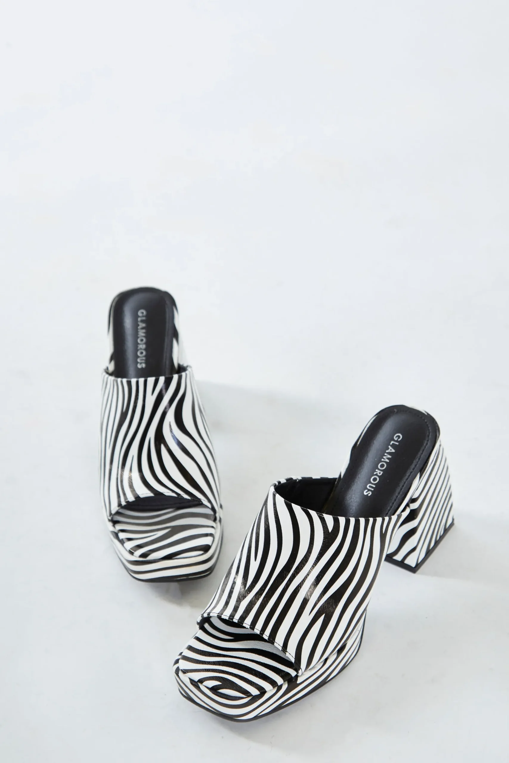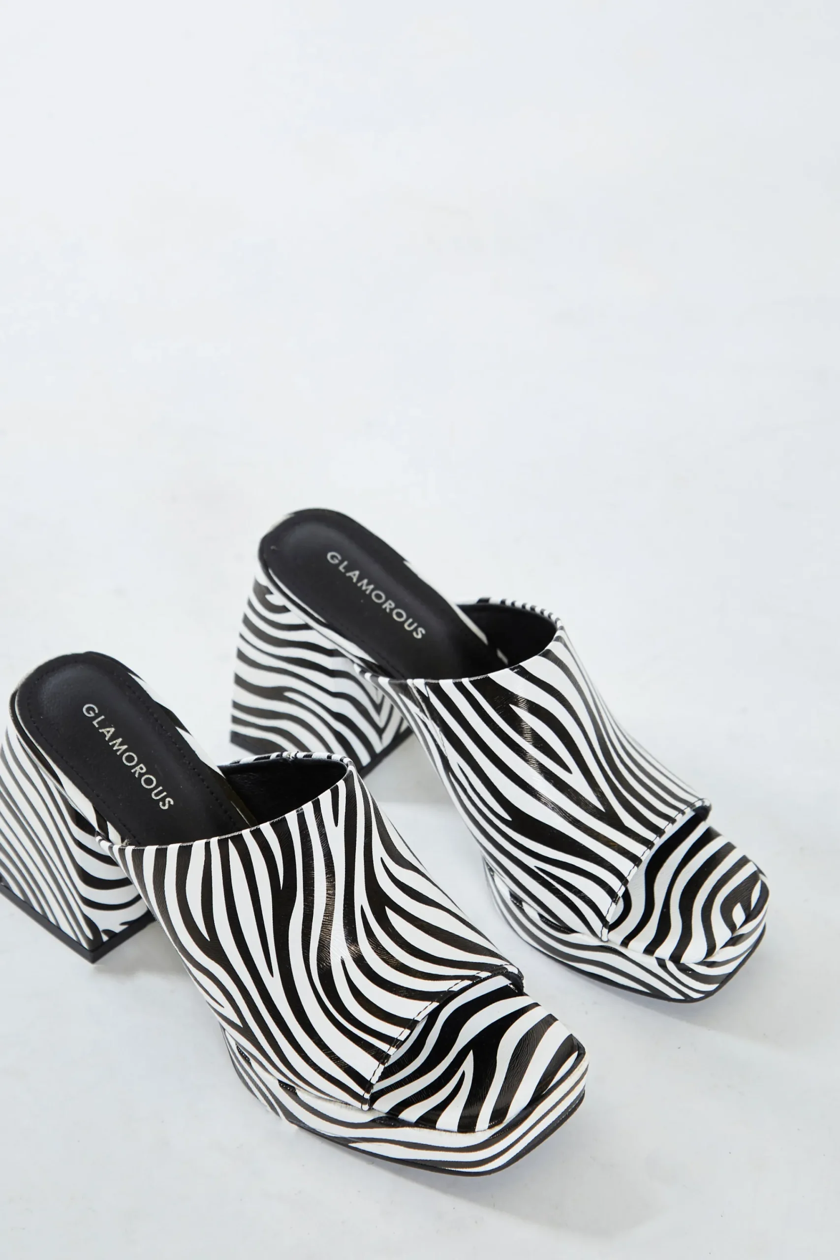 Glamorous Zebra Print Block Heel Mules. Its time to refresh your summer wardrobe with these gorgeous zebra print heels. Featuring a block heel with a slip-on mule style in a bold zebra print, theyre our new season must-have. Designed to make a statement, these heels are sure to elevate every outfit!