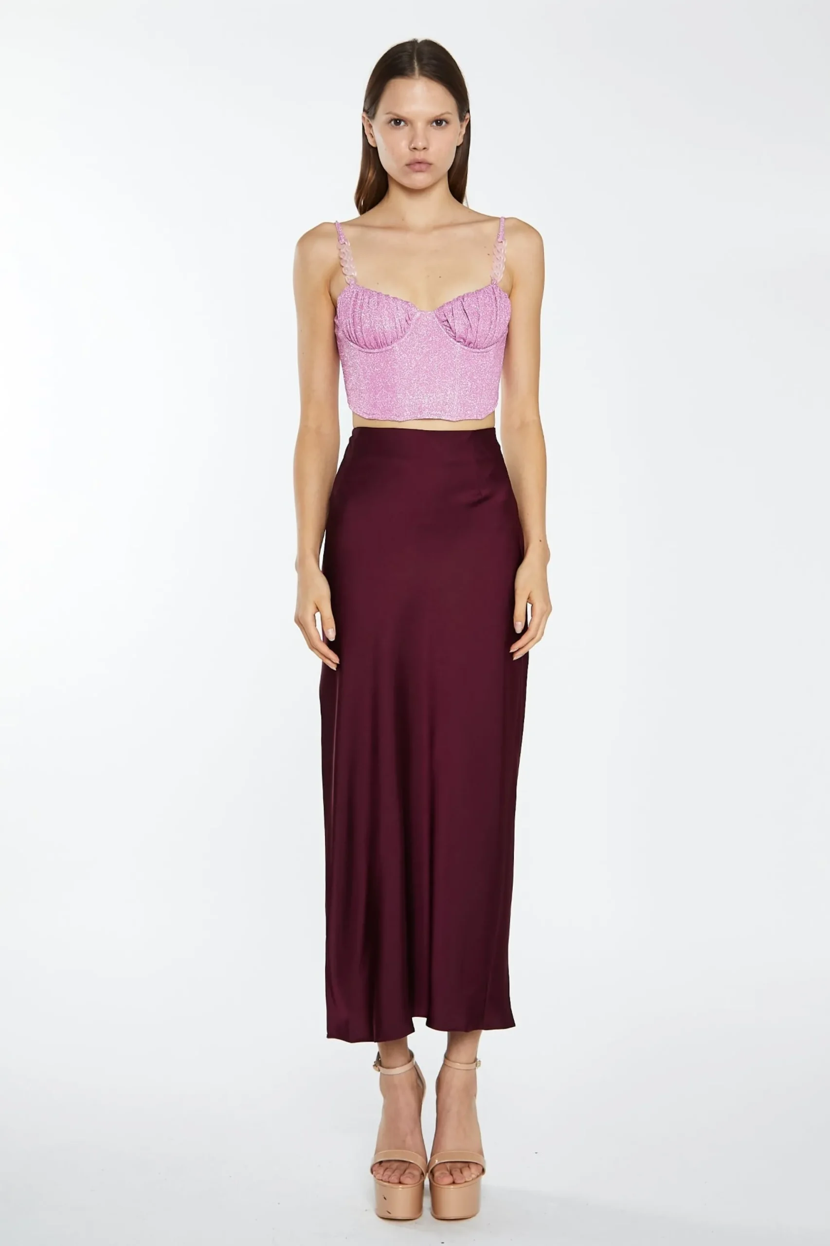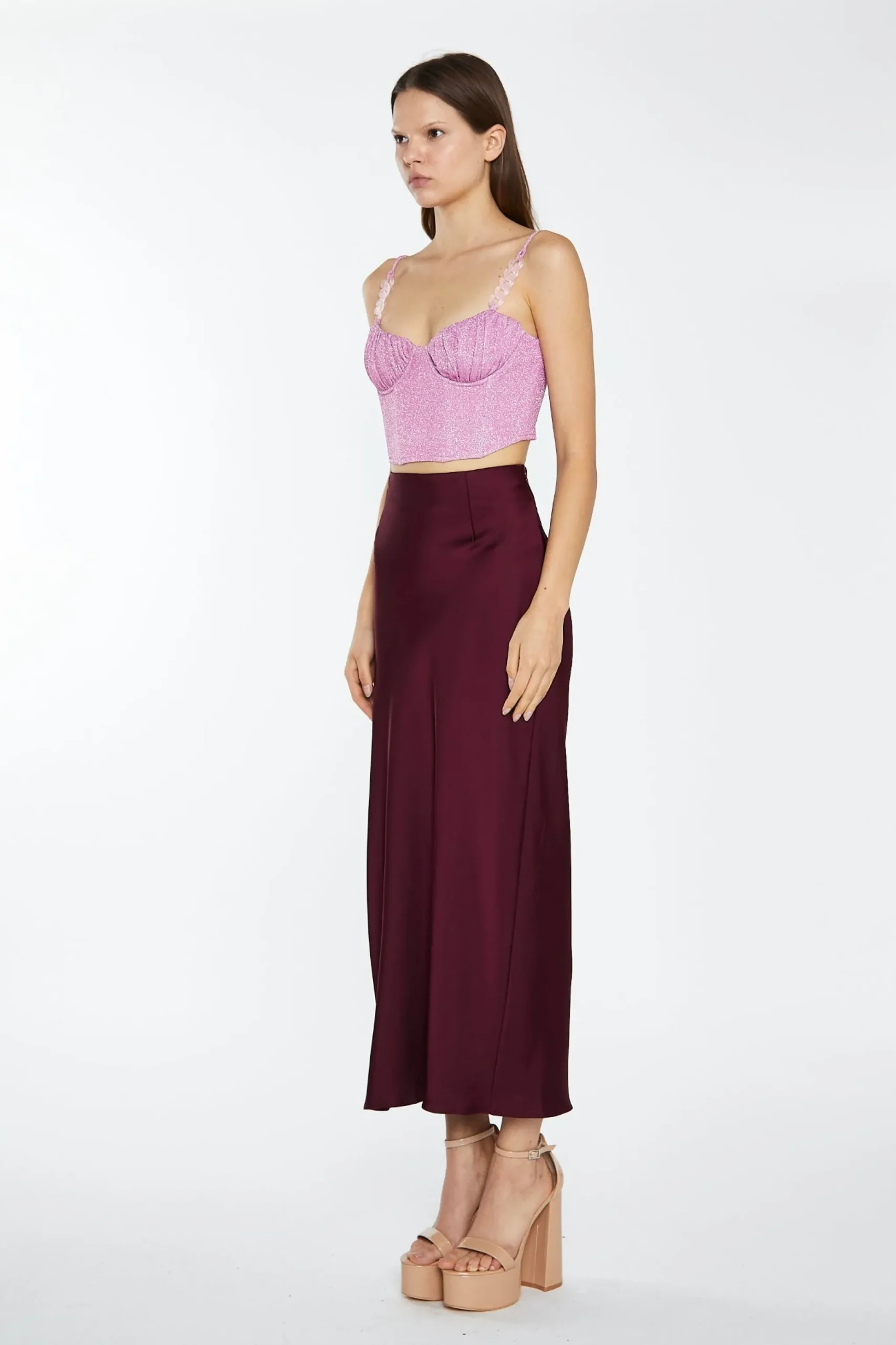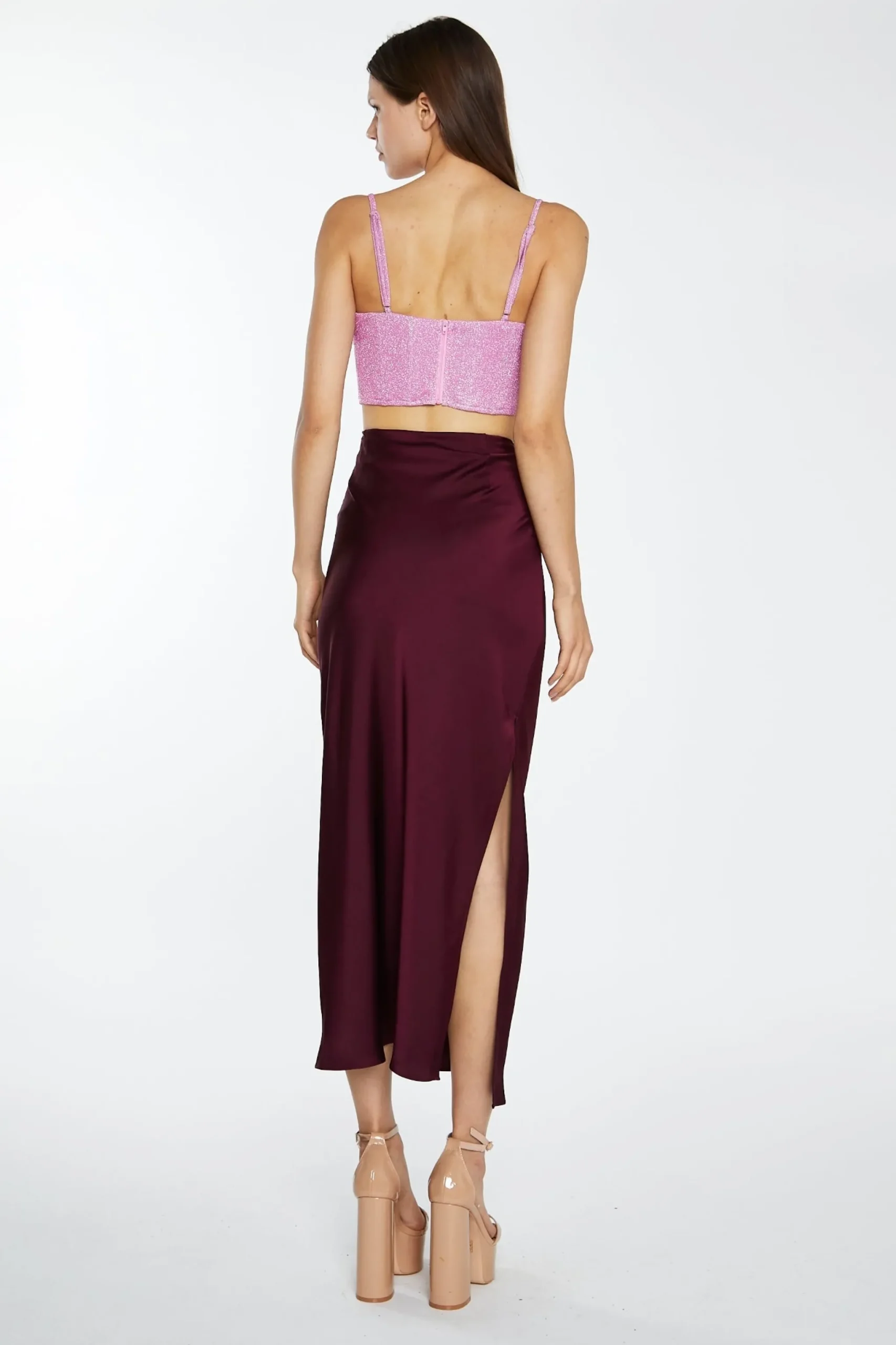 Glamorous Womens Deep-Burgundy Satin Side-Split Maxi-Skirt. This maxi skirt is such a versatile piece, you will be wearing it all the time! With a flattering low rise bias cut fit, and statement side split, pair this skirt with one of our crop tops for a sleek and stylish event outfit!
