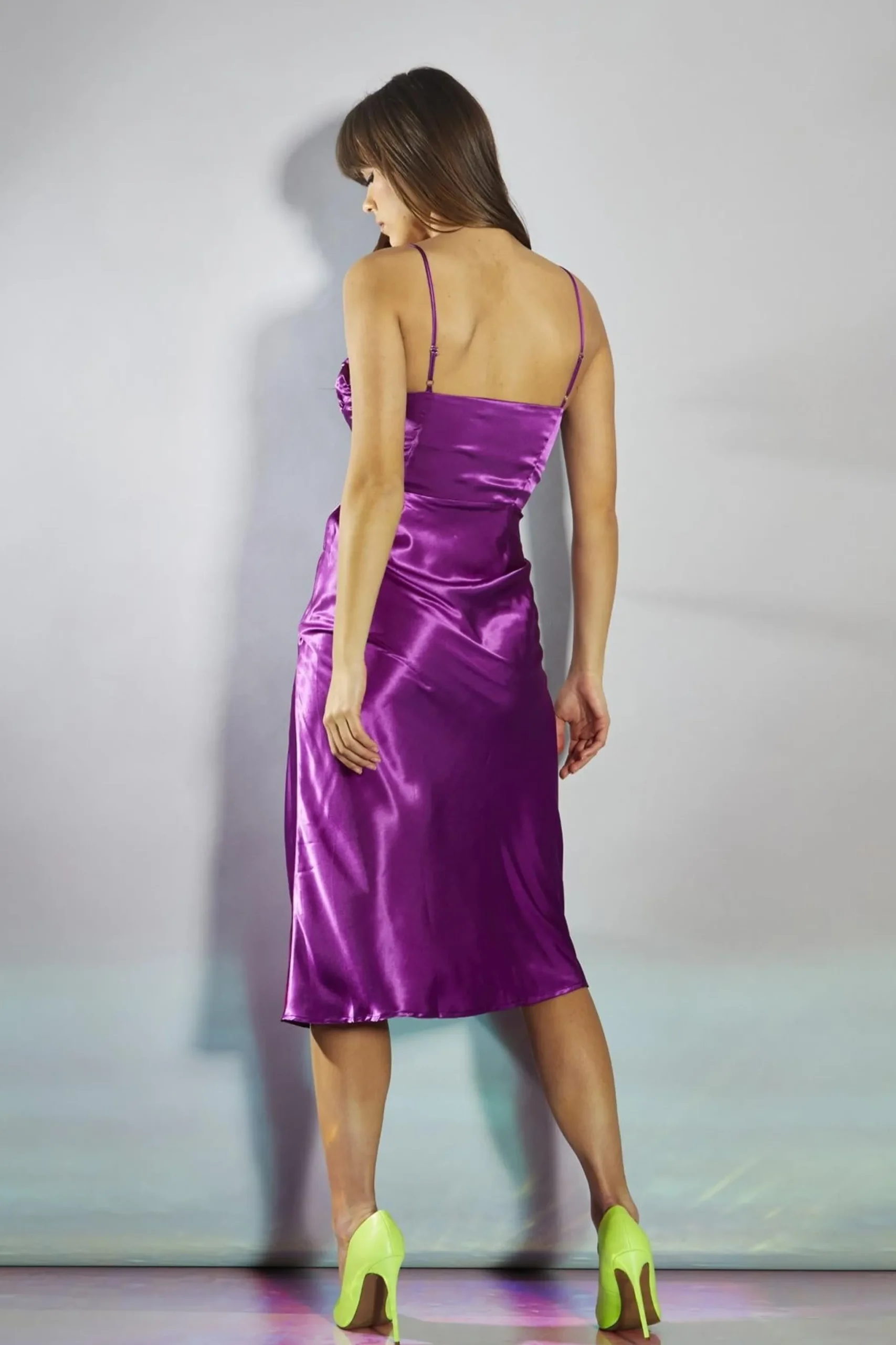 Glamorous Women’s Purple Gathered Bust-Cup Midi-Dress. This purple gathered bust-cup midi-dress is the epitome of effortless elegance. The vibrant hue is sure to make you feel confident and fabulous, while the midi length keeps things classy and chic. The gathered bust cups add a touch of drama, creating a flattering silhouette that’s sure to turn heads. The fitted waist cinches you in just right, and the front side split adds a flirty, playful vibe. One of the best features? The adjustable straps that ensure a perfect fit every time. No more worrying about slipping or gaping – this dress is designed to hug your curves in all the right places. Pair it with some strappy heels and a statement earring for a night out, or keep it casual with some sandals and a denim jacket for a relaxed weekend look. So why not embrace your inner purple princess? This midi-dress is ready to become your new go-to for feeling fabulous and effortless..