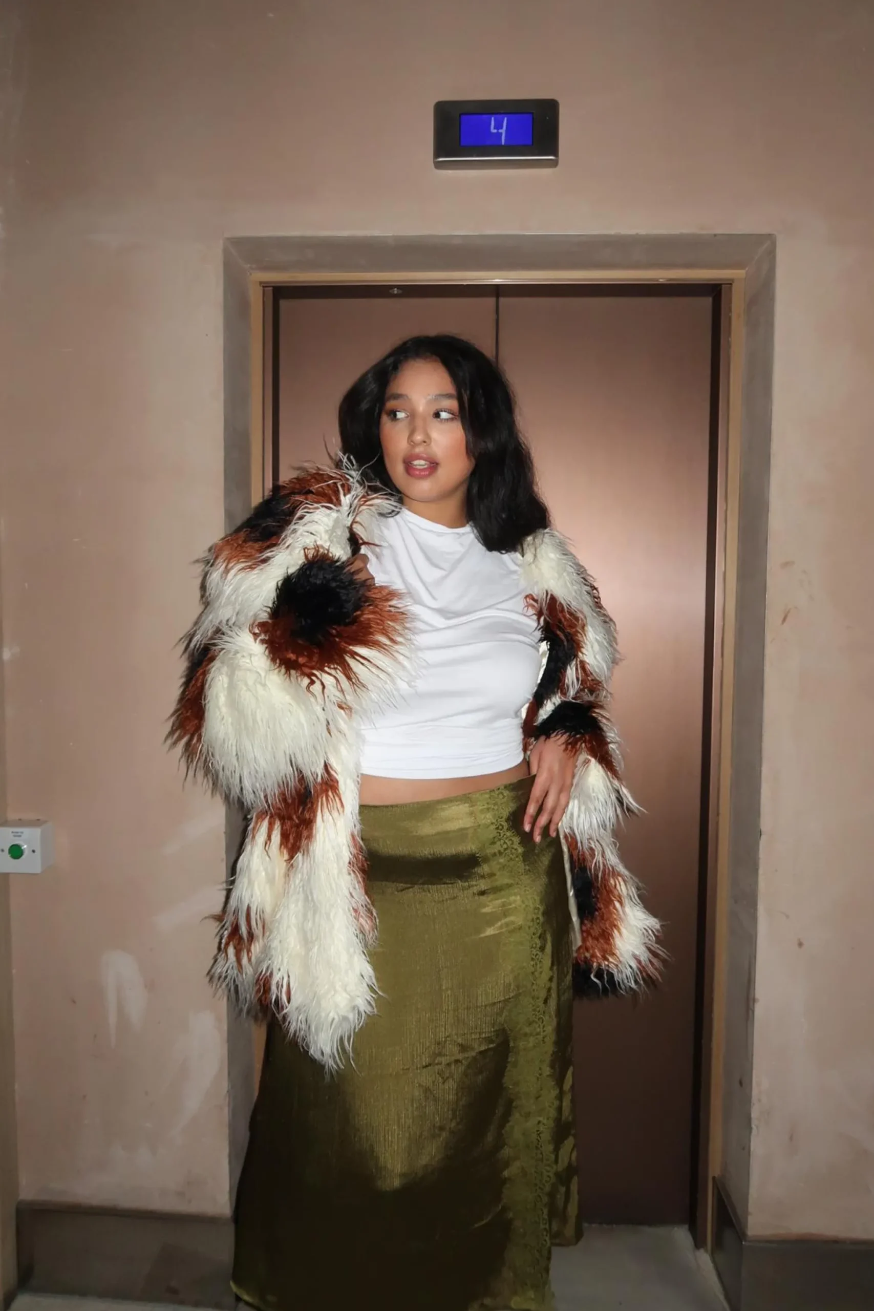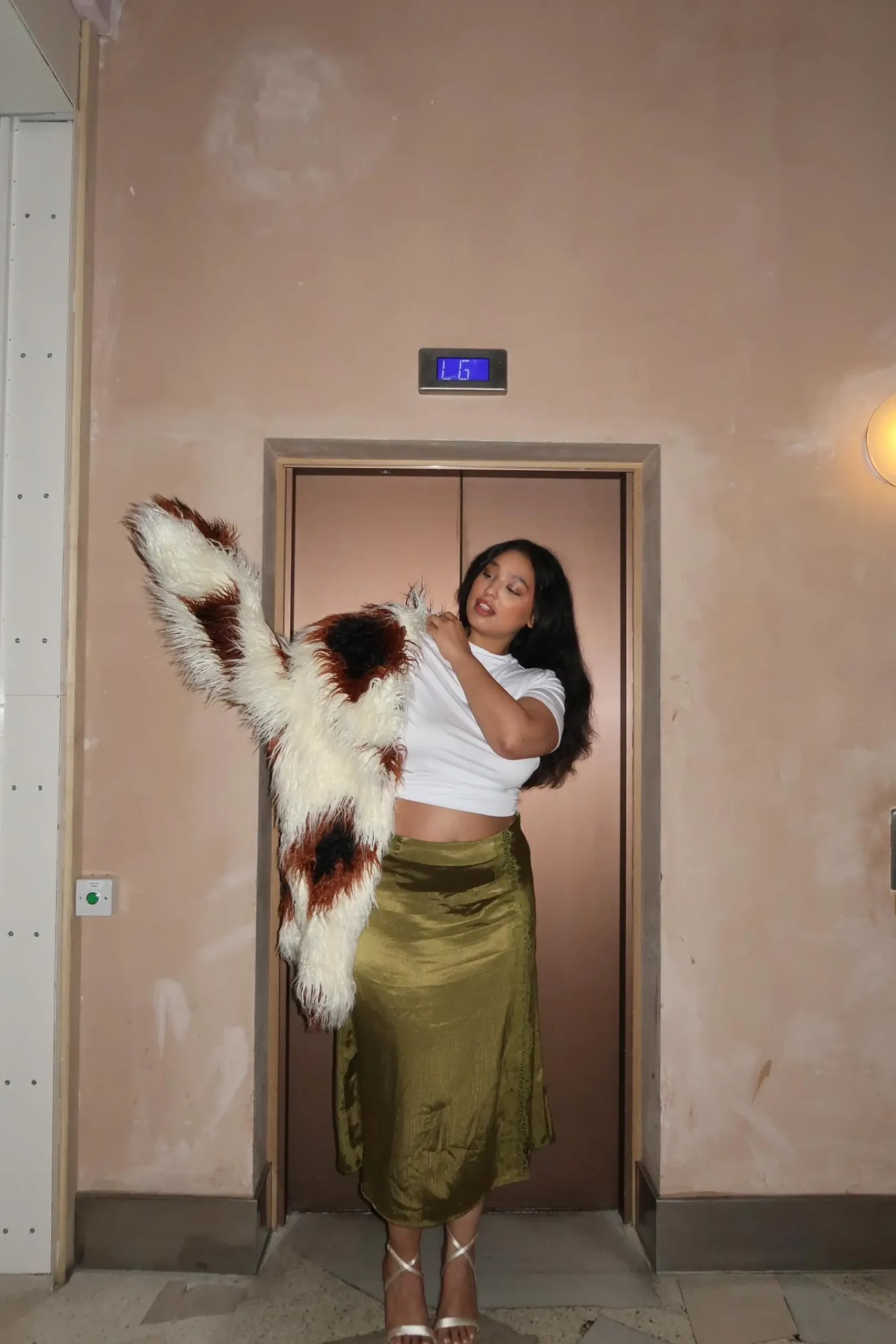 Glamorous Women’s Olive Midi-Party skirt. This olive midi-party skirt brings a touch of elegance with its luxurious satin fabric and shiny finish. The full skirt gives it a graceful flow that feels both fun and polished, making it an ideal choice for parties or special occasions. The soft sheen of the fabric catches the light just right, creating a look that’s stylish without feeling too formal. Pair it with a fitted top for a more dressed-up feel, or keep it relaxed with a simple blouse for a casual-chic look. However you style it, this skirt offers comfort and versatility, with just the right amount of shine to make you feel special.