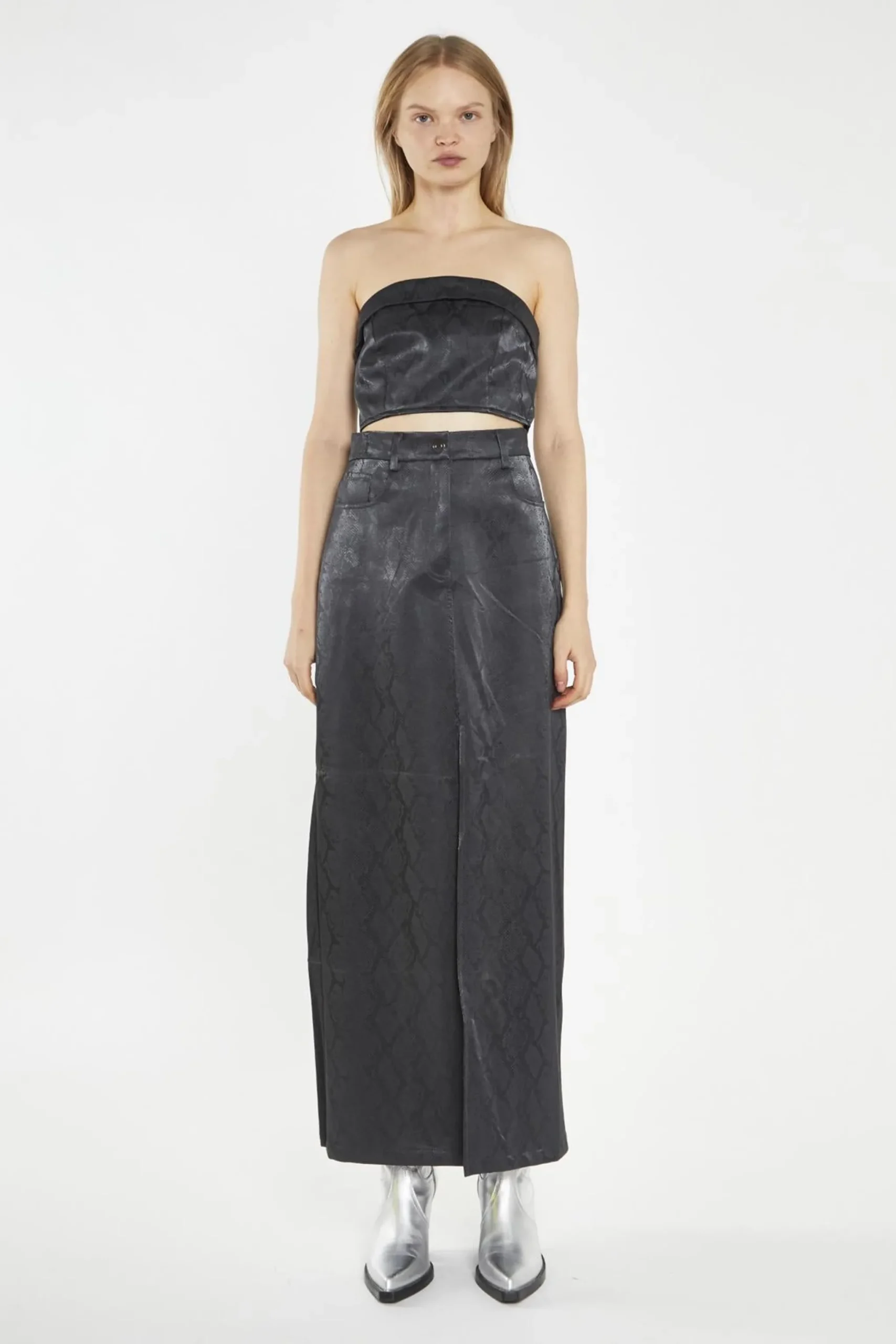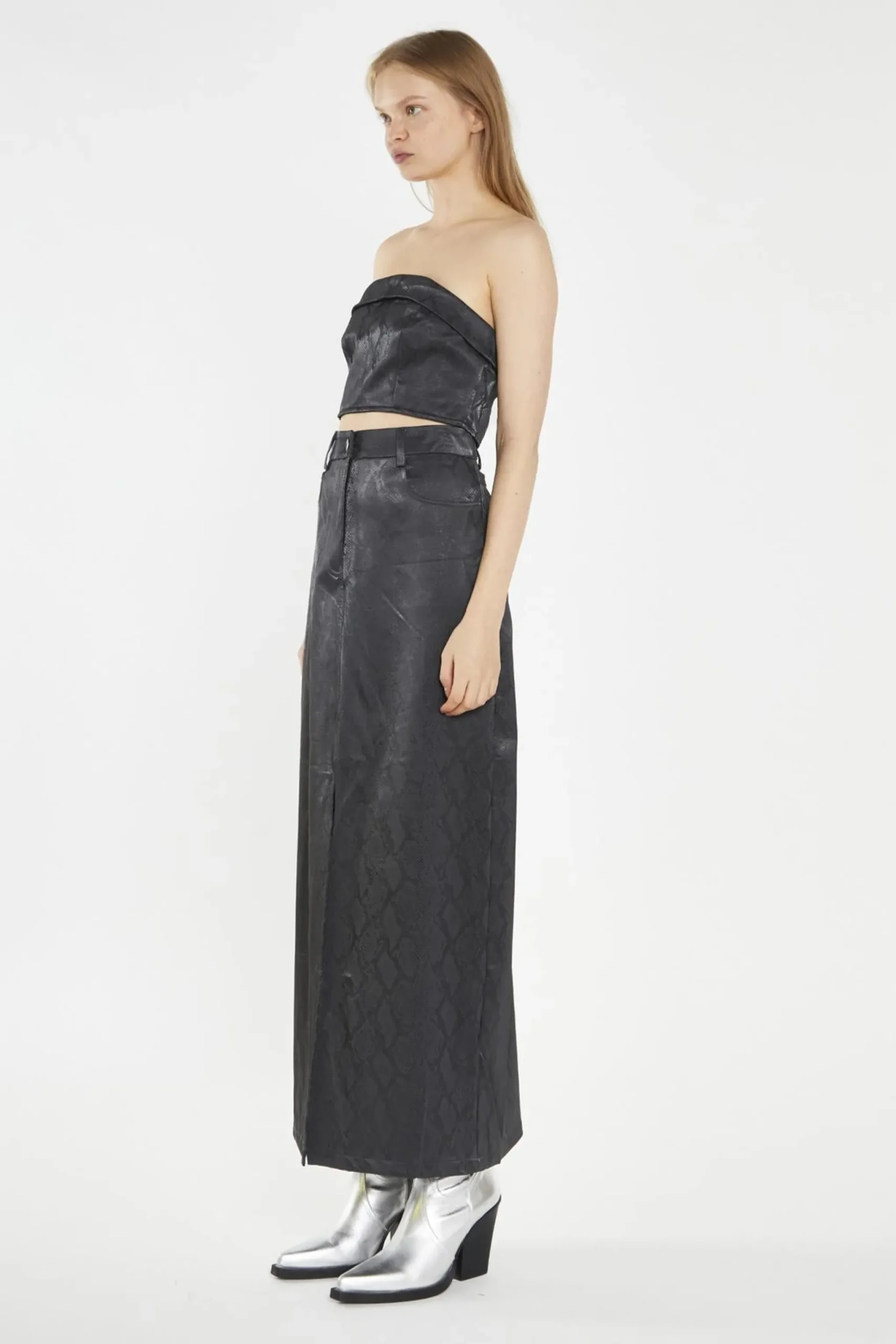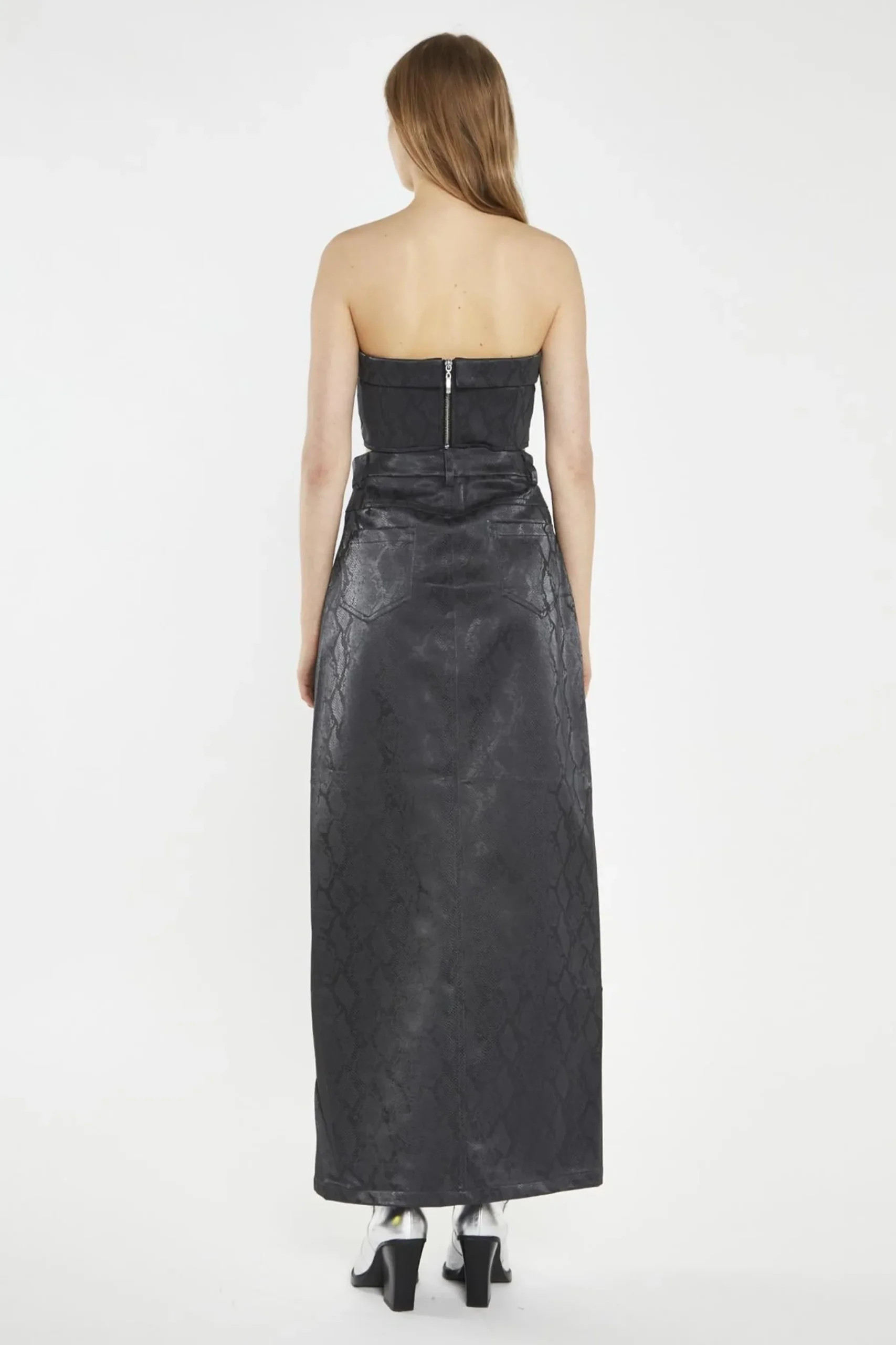 Glamorous Women’s Black-Snake Pu Bandeau Crop-Top. Elevate your style with the Black-Snake Pu Bandeau Crop-Top, a sleek and sophisticated addition to your wardrobe. Crafted from high-quality PU fabric, this cropped bandeau top offers a smooth and comfortable fit that accentuates your curves. The bandeau design provides a flattering neckline, while the cropped length adds a touch of playfulness to your look. Pair it with your favourite high-waisted jeans, or the matching skirt for a versatile and trendy outfit. Whether you’re going out with friends or attending a special event, this crop-top is sure to make you feel confident and stylish. Embrace your unique sense of fashion and let the Black-Snake Pu Bandeau Crop-Top be your new go-to piece.