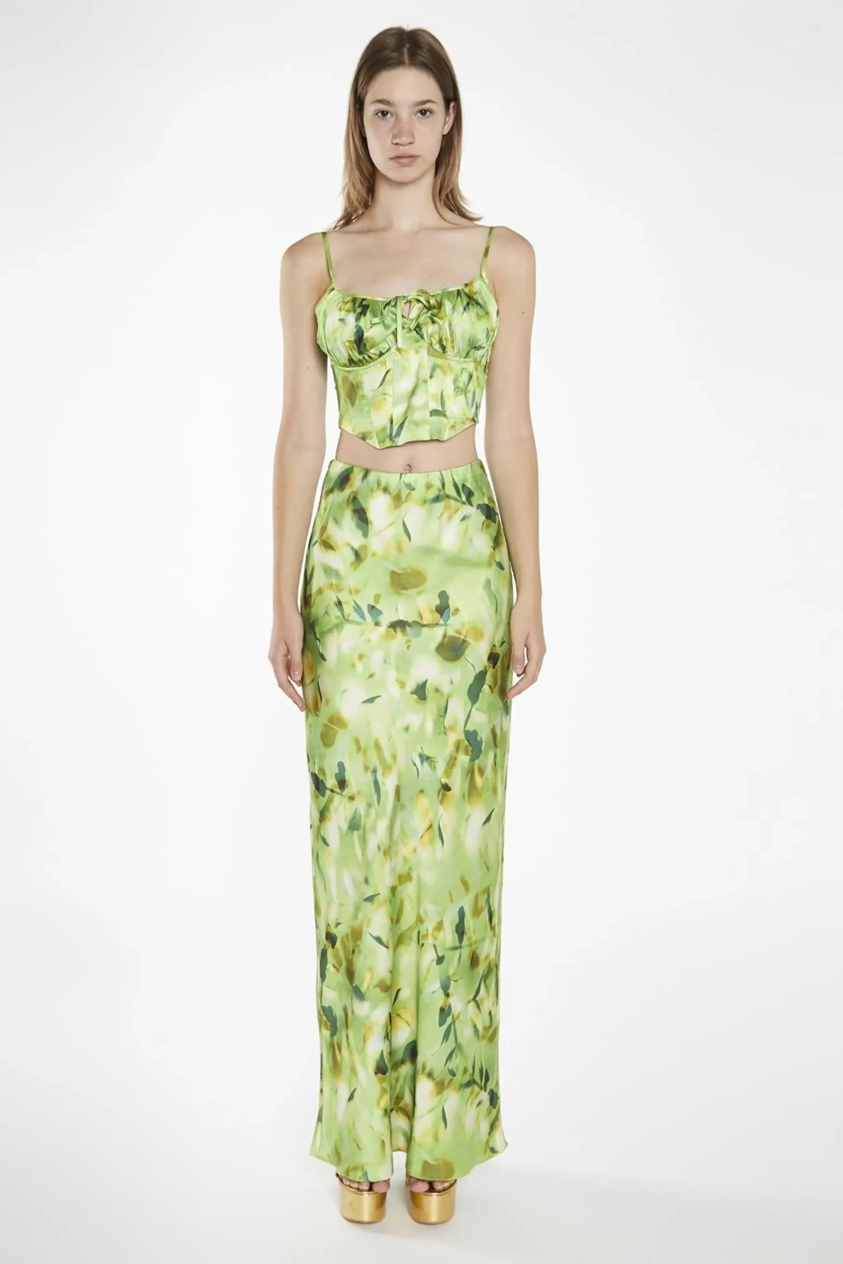 Glamorous Women’s Green Multi-Blur Tie-Front Corset-Top. This tie-front corset top is a flattering addition to your wardrobe, designed to accentuate your figure with a structured bodice and curved waist detail. The fully lined interior and adjustable spaghetti straps provide a comfortable and customizable fit, while the fun green hue adds a playful touch. With a concealed zip fastening and draw cord tie front, this top is practical without sacrificing style. Bonus: complete the look with the matching skirt and trousers!