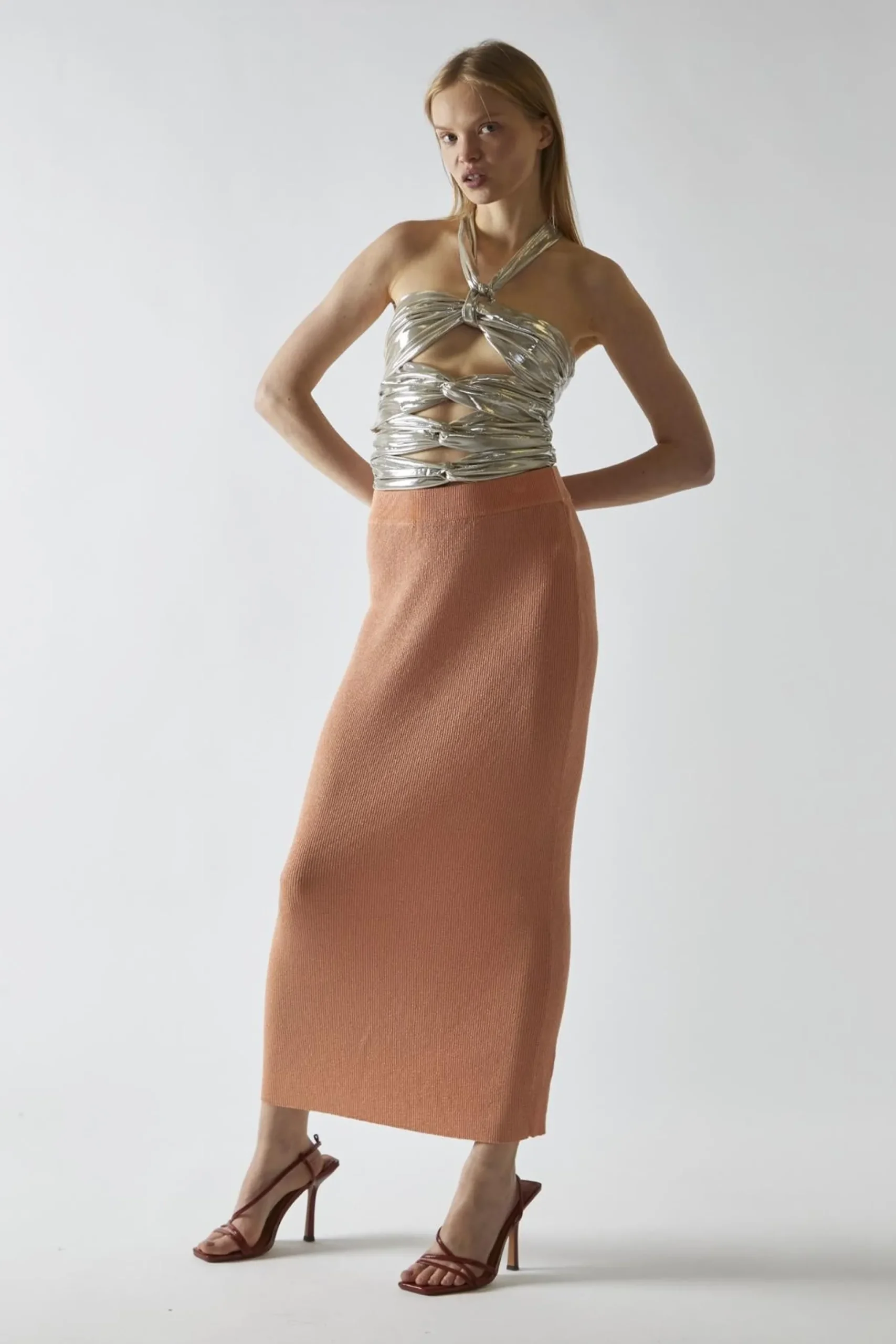 Glamorous Women’s Champagne-Lame Twist-Front Cut-Out Halterneck-Top. Shine bright in this eye-catching champagne-lame twist-front cut-out halterneck top, perfect for making a statement at any event. The shimmering lame fabric catches the light beautifully, ensuring all eyes will be on you. The twisted front detail adds a stylish twist, while the halterneck design provides support and showcases your shoulders. The playful cut-out design adds a touch of allure, making it a great choice for a night out or a special celebration. With a bodycon fit, this top hugs your curves in all the right places, creating a flattering silhouette. Pair it with high-waisted trousers or a sleek pencil skirt for a chic look, or go for a more relaxed vibe with your favourite denim. This versatile piece is sure to become a favourite in your wardrobe, allowing you to express your unique style while feeling confident and fabulous. Get ready to turn heads wherever you go!.
