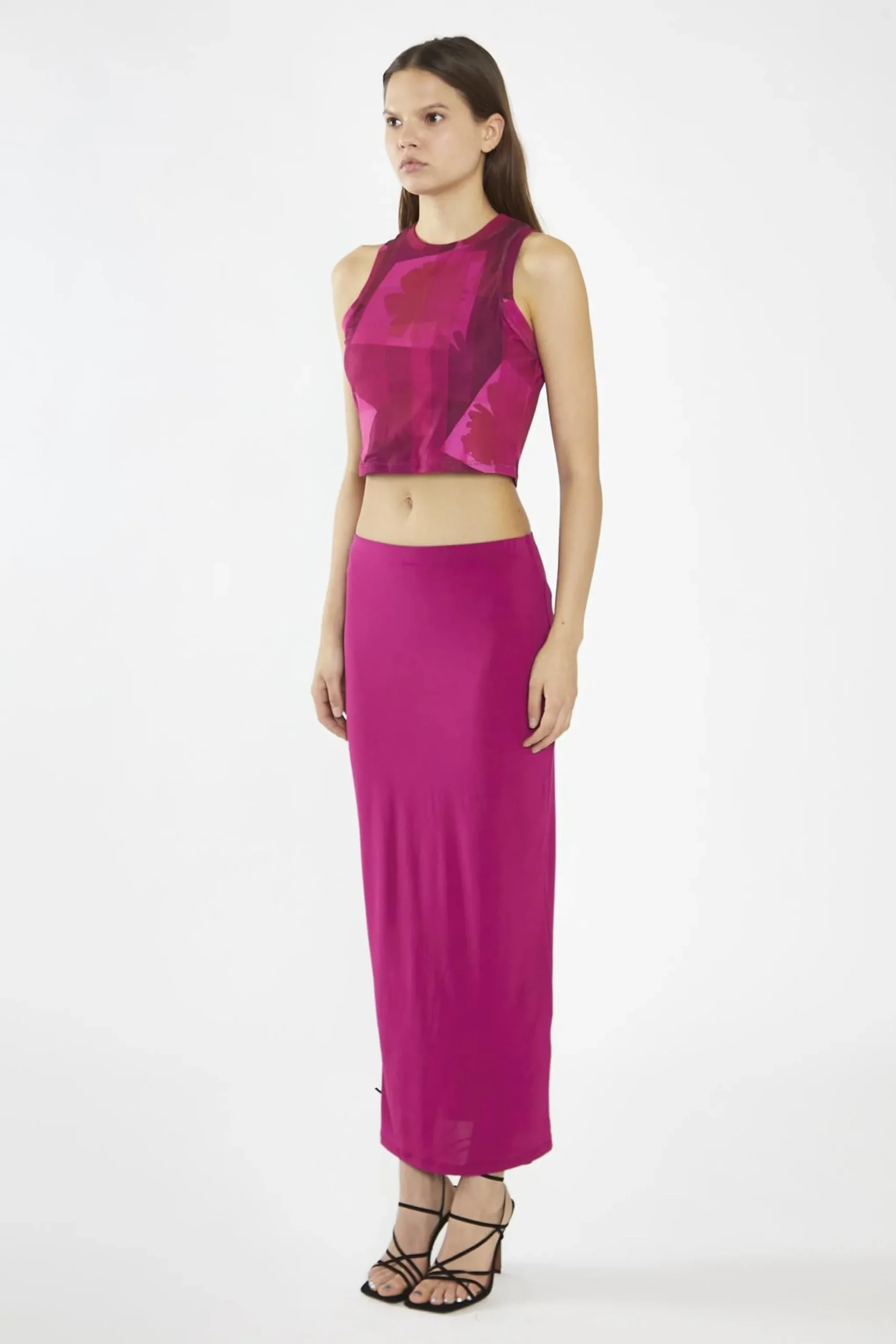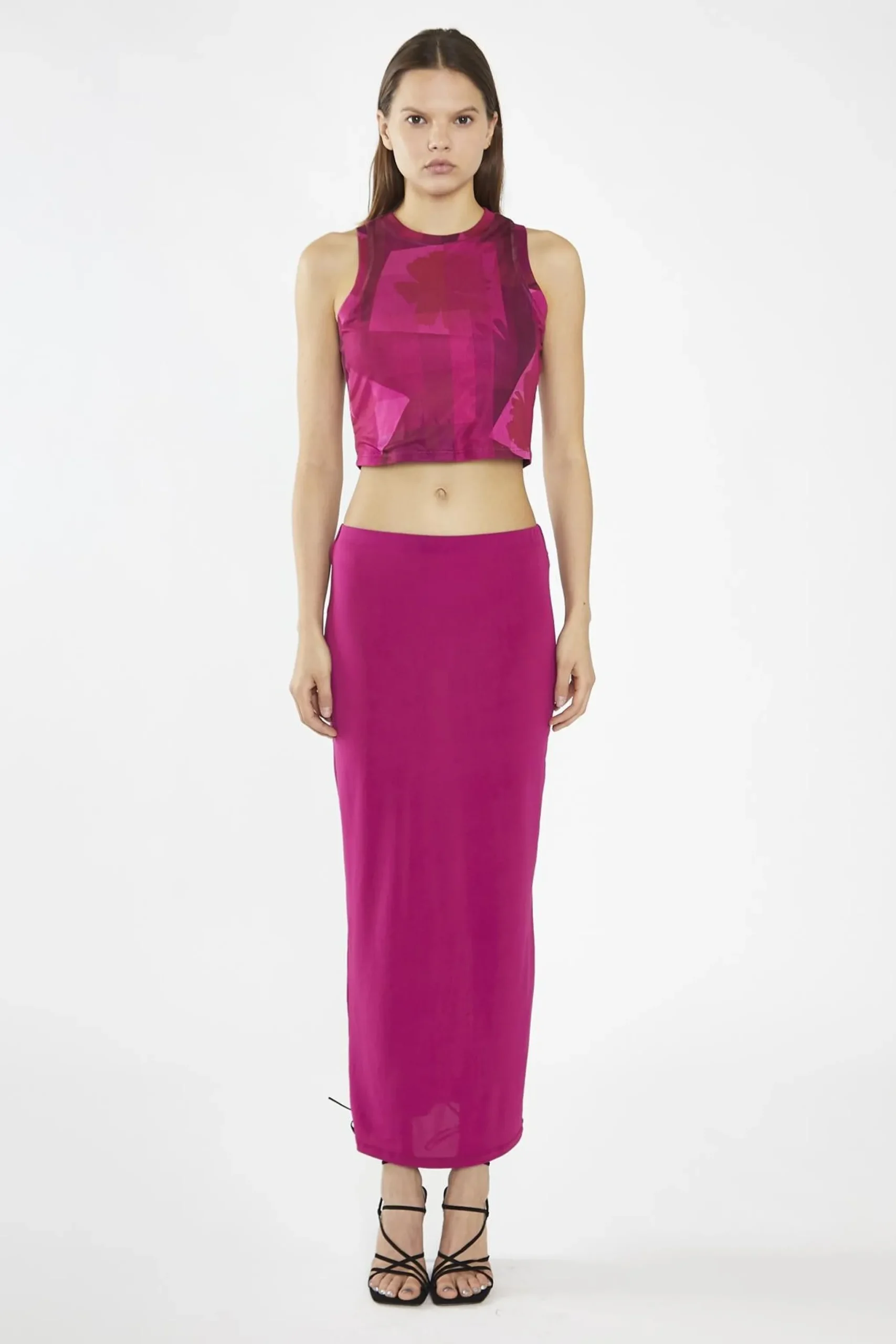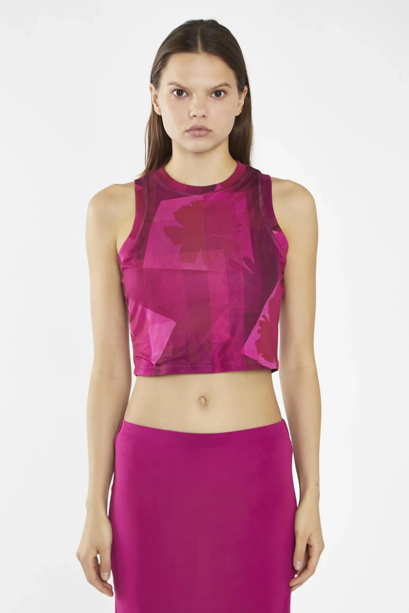 Glamorous Women’s Pink-Block Mesh Racerback Crop-Top. Unleash your bold and fearless side with our Pink-Block Mesh Racerback Crop Top. Crafted from a printed mesh fabric that exudes confidence, this top features a cropped length that adds a touch of edge to your look. The crew neckline and racerback design create a flattering silhouette, while the vibrant pink hue demands attention. Pair it with high-waisted cargo’s for a sporty-chic vibe or with a bodycon midi skirt for a sleeker ensemble. Embrace your daring side and let this top be the star of your outfit.