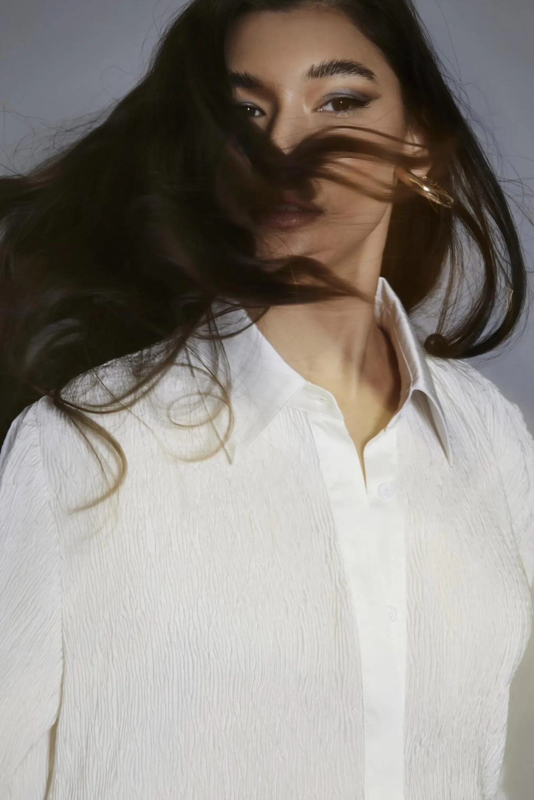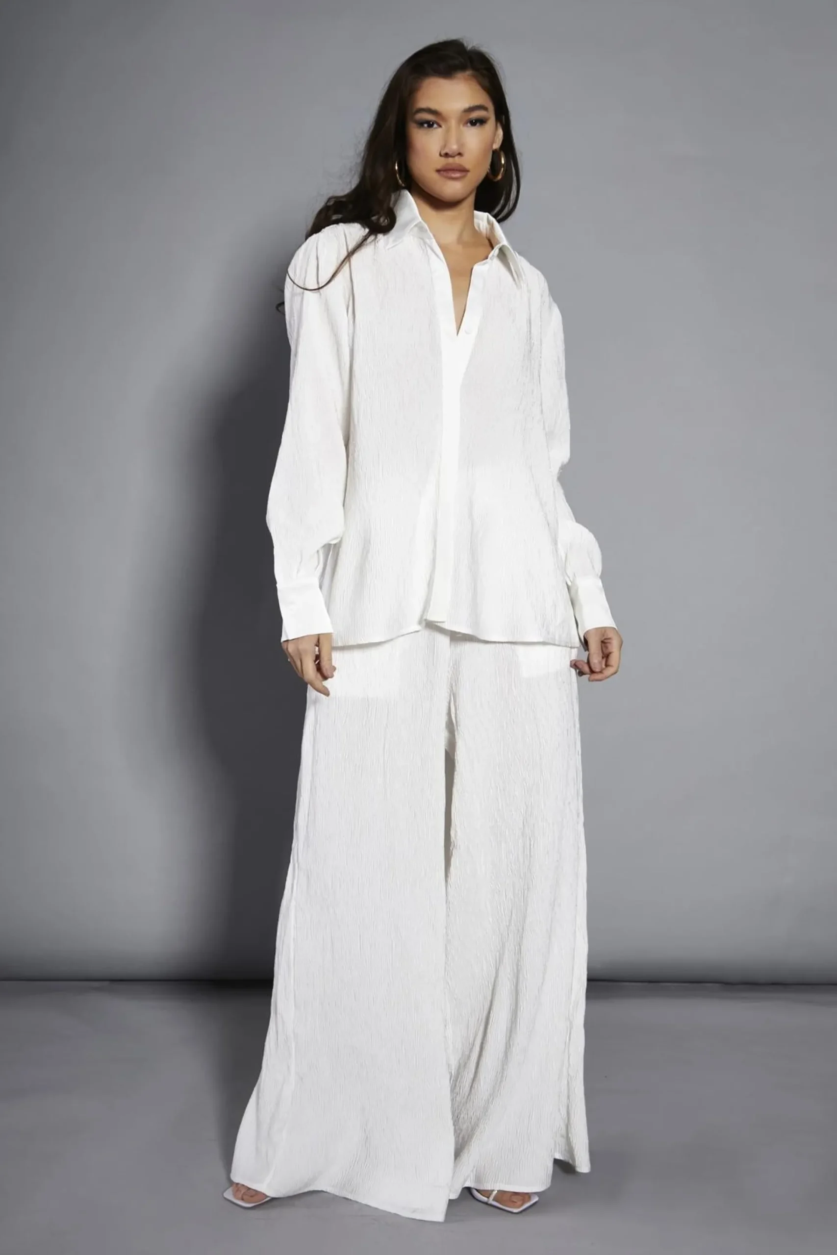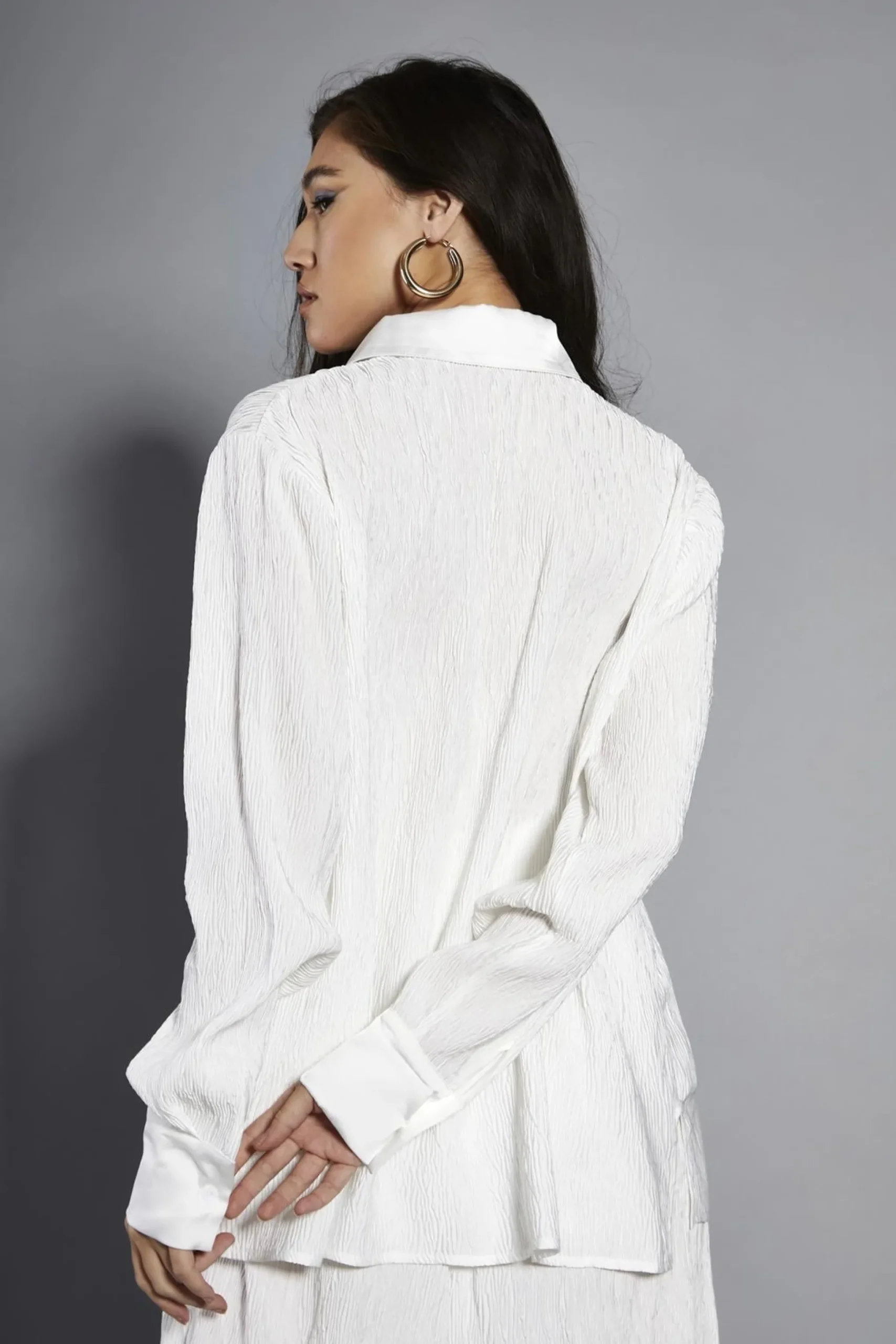 Glamorous Studio Women’s White-Plisse Oversized-Shirt. This white plisse collared shirt is a refreshing addition to your wardrobe that combines elegance with everyday comfort. Made from lightweight linen, it feels soft against your skin and is perfect for those warm days when you want to stay cool yet stylish. The long sleeves offer a touch of sophistication, while the collared design adds a classic element that makes it versatile for various occasions. The gentle pleating creates a lovely texture that elevates the overall look without being overly fussy. Pair this blouse with the matching bottom for a coordinated outfit that’s great for brunch or casual meetings, or wear it with your favourite jeans for a relaxed yet polished vibe. The crisp white colour makes it easy to accessorize; add a statement necklace or colourful scarf to personalize your style. This blouse is not just a piece of clothing; it’s an easy way to feel put-together and confident every time you wear it.