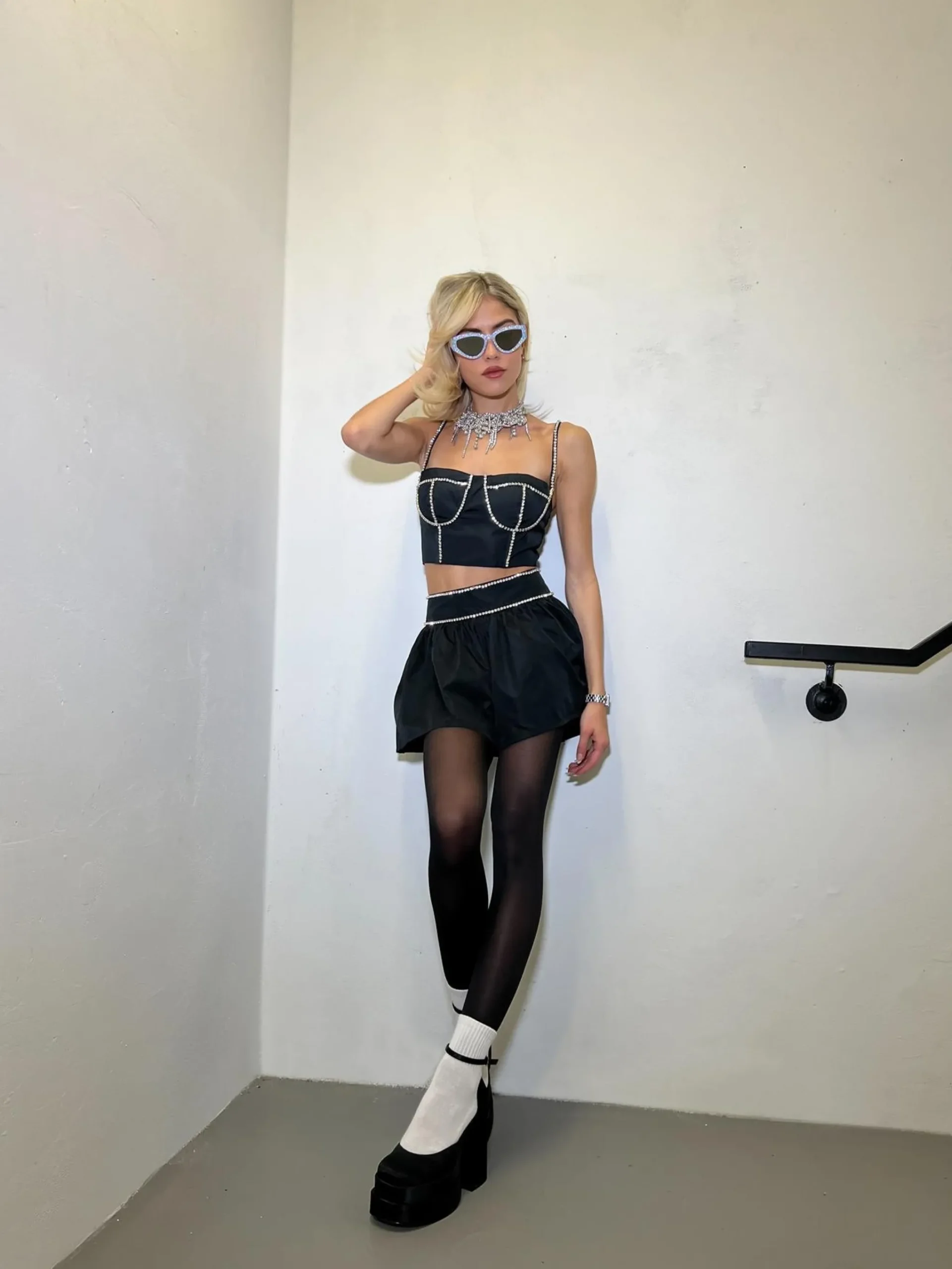 Glamorous Collection Women’s Black Diamante Trim Crop-Top. Get ready to shine in this eye-catching black crop-top that’s perfect for your next night out. The sparkling diamante trim adds a touch of glamour, making you feel like a star on and off the dance floor. With lightly padded bust cups, you’ll feel comfortable and supported all evening long. The concealed zip fastening at the back ensures a smooth silhouette, while the full lining provides extra comfort against your skin. The dazzling diamante straps are the cherry on top, catching the light with every move you make. This versatile piece can be dressed up or down – pair it with high-waisted jeans for a casual look or match it with a sleek skirt for a more formal occasion. No matter how you style it, this crop-top is sure to become a favourite in your wardrobe.