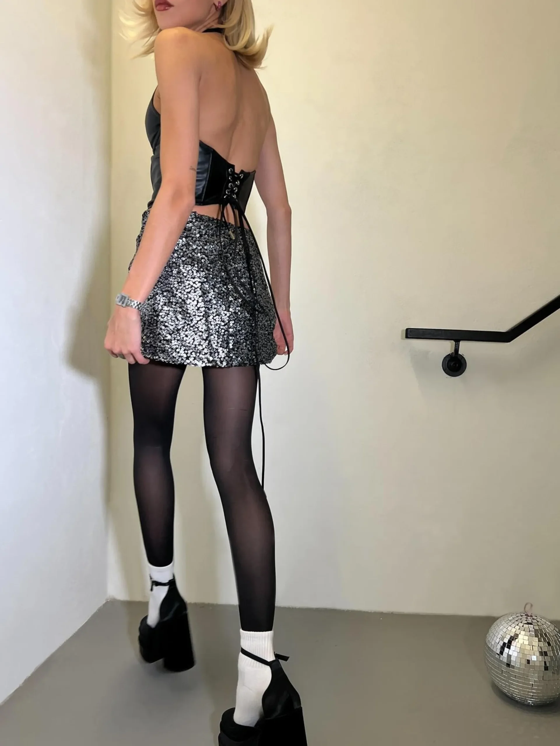 Glamorous Collection Women’s Black-PU Halterneck Corset Crop-Top. Introducing the edgy and alluring black PU corset crop-top. This eye-catching piece features a sleek, structured design that hugs your curves in all the right places. The lace-up back adds a touch of sultry charm, allowing you to adjust the fit to your liking. For easy wear, there’s also a convenient snap fastening at the back. The cropped length is perfect for showing off a bit of skin while keeping things tasteful. This versatile top can be dressed up or down – pair it with high-waisted jeans for a night out, or layer it under a blazer for a daring twist on office wear. The faux leather look gives it a cool, rebellious vibe that’s sure to make you feel confident and stylish. It’s a statement piece that’ll quickly become a go-to in your wardrobe for those times when you want to feel bold and beautiful.