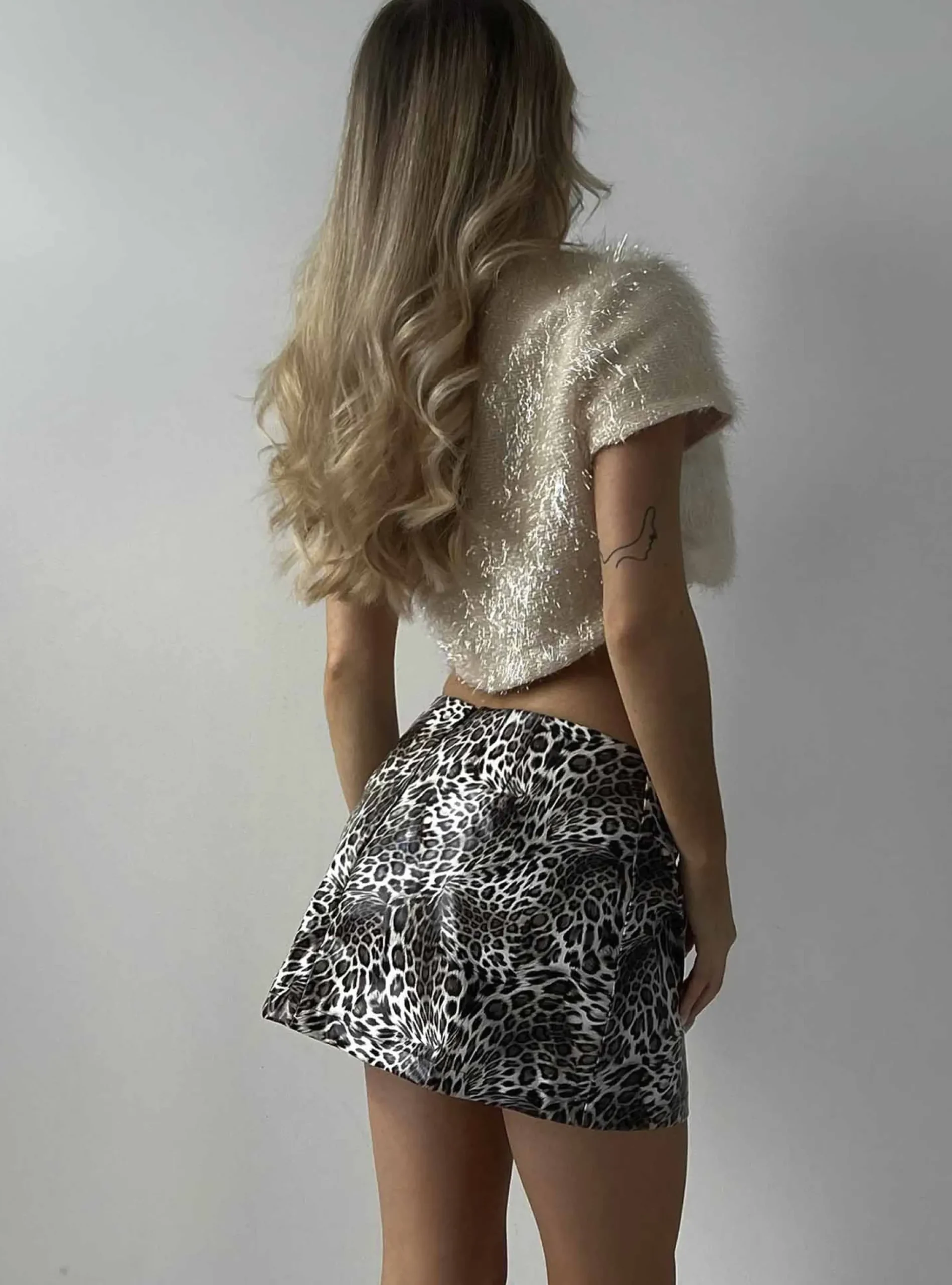 Glamorous Cream Tinsel Chain Detail Open Front Crop Top. This glam crop top is the perfect addition to your wardrobe. Featuring on-trend chain detail and an open front in a luxe tinsel finish, this piece will look great on you! Style with a mini skirt for the ultimate party look this season.