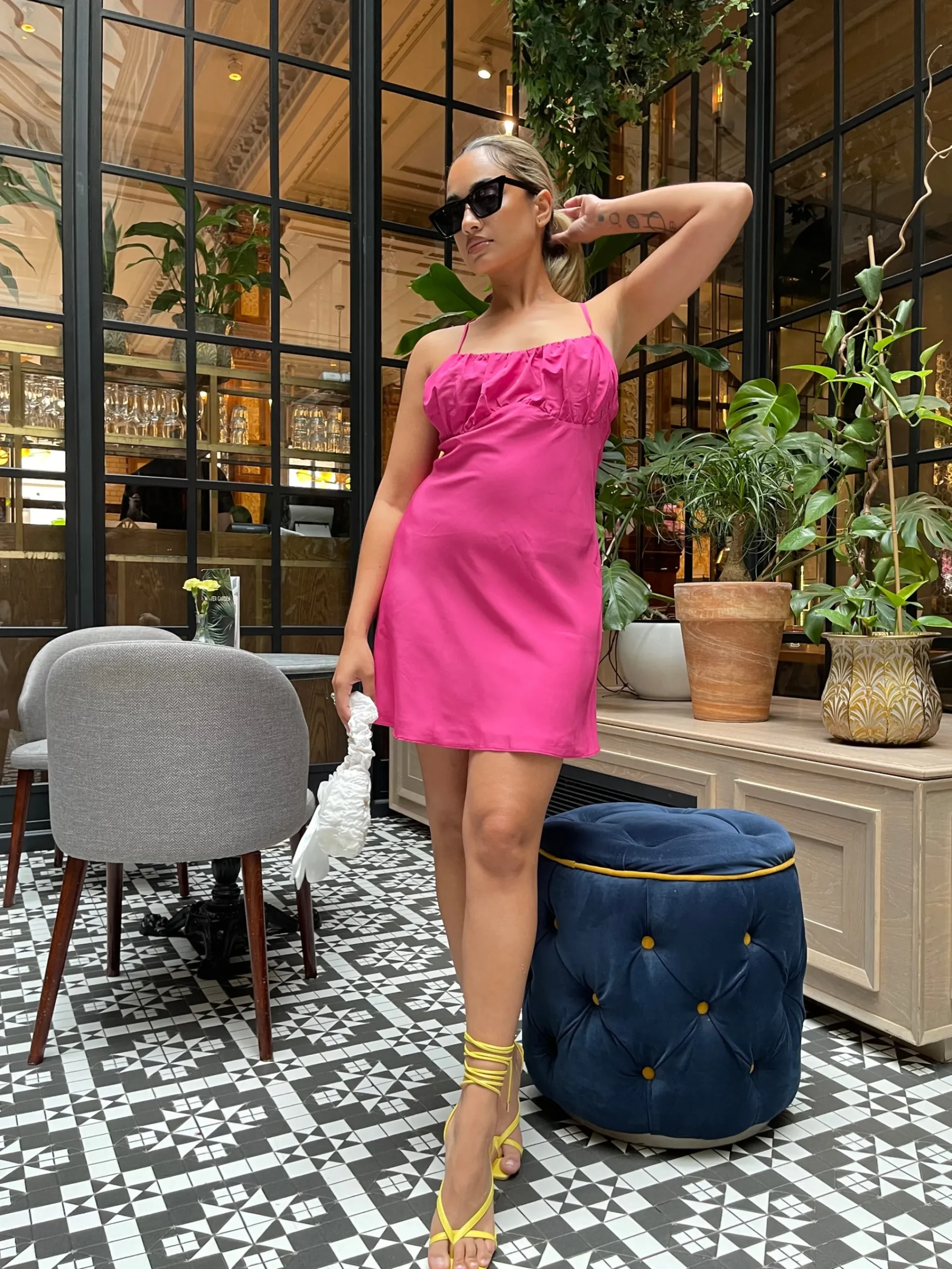 Glamorous Care Women’s Bright-Pink Gathered-Bust Mini-Dress. Dare to stand out with the Bright-Pink Gathered-Bust Mini-Dress! Our unique and flattering design, featuring a gathered bust and criss-cross back strap detailing, will surely turn heads. Plus, with adjustable spaghetti straps and a mini length, this dress is perfect for any occasion. But that’s not all – you can also feel good about your fashion choices with our Glamorous Care Sustainable Range. Make a statement while reducing your carbon footprint!
