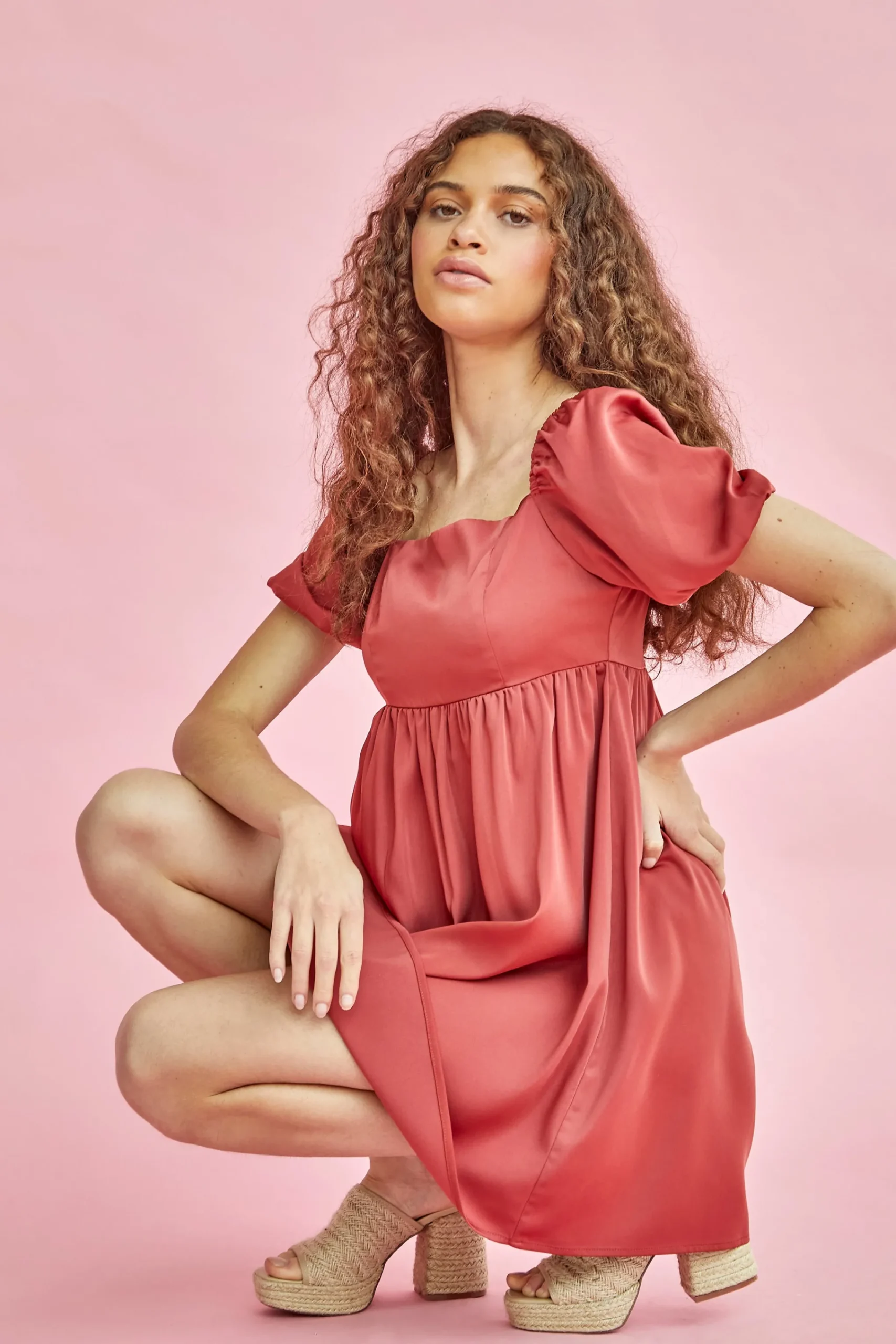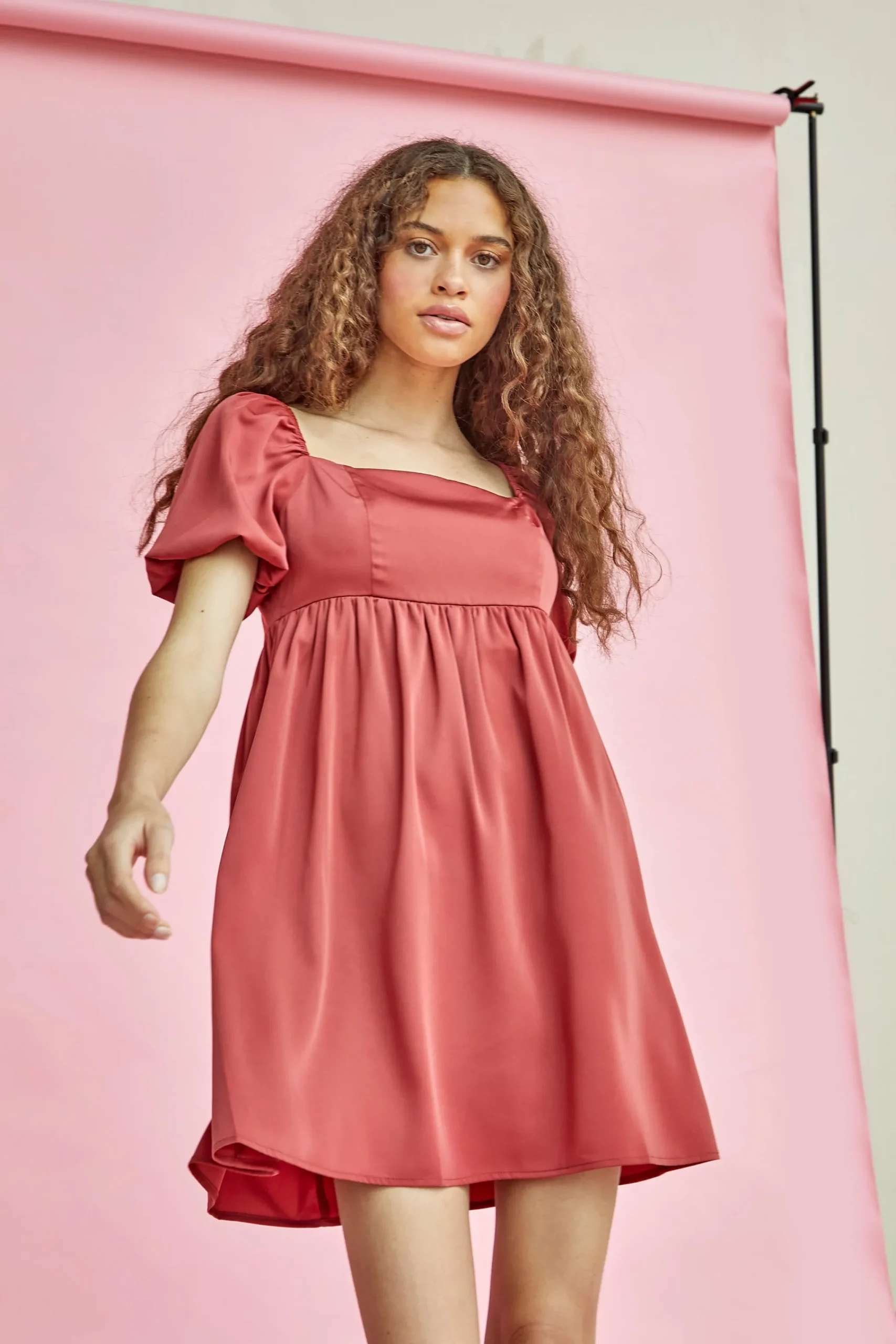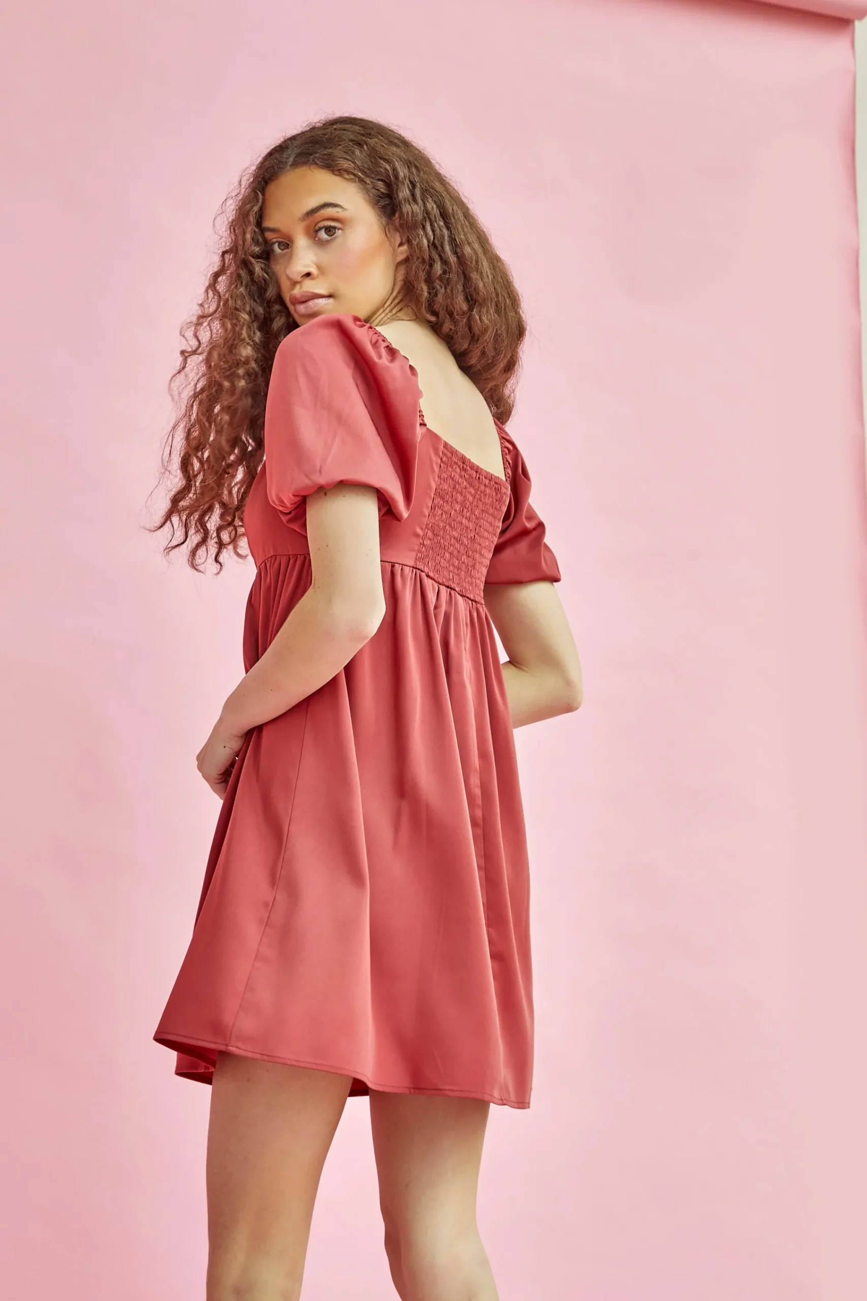 Glamorous Dark Rose Square Neck Empire Mini Dress. This mini dress will look great on you this season. Featuring an empire line fit, square neck, puff sleeves and smocked back panel, this dress will be your go to for every occasion this summer. Dress this gorgeous piece up or down with trainers or heels, its a must have for your Summer wardrobe.