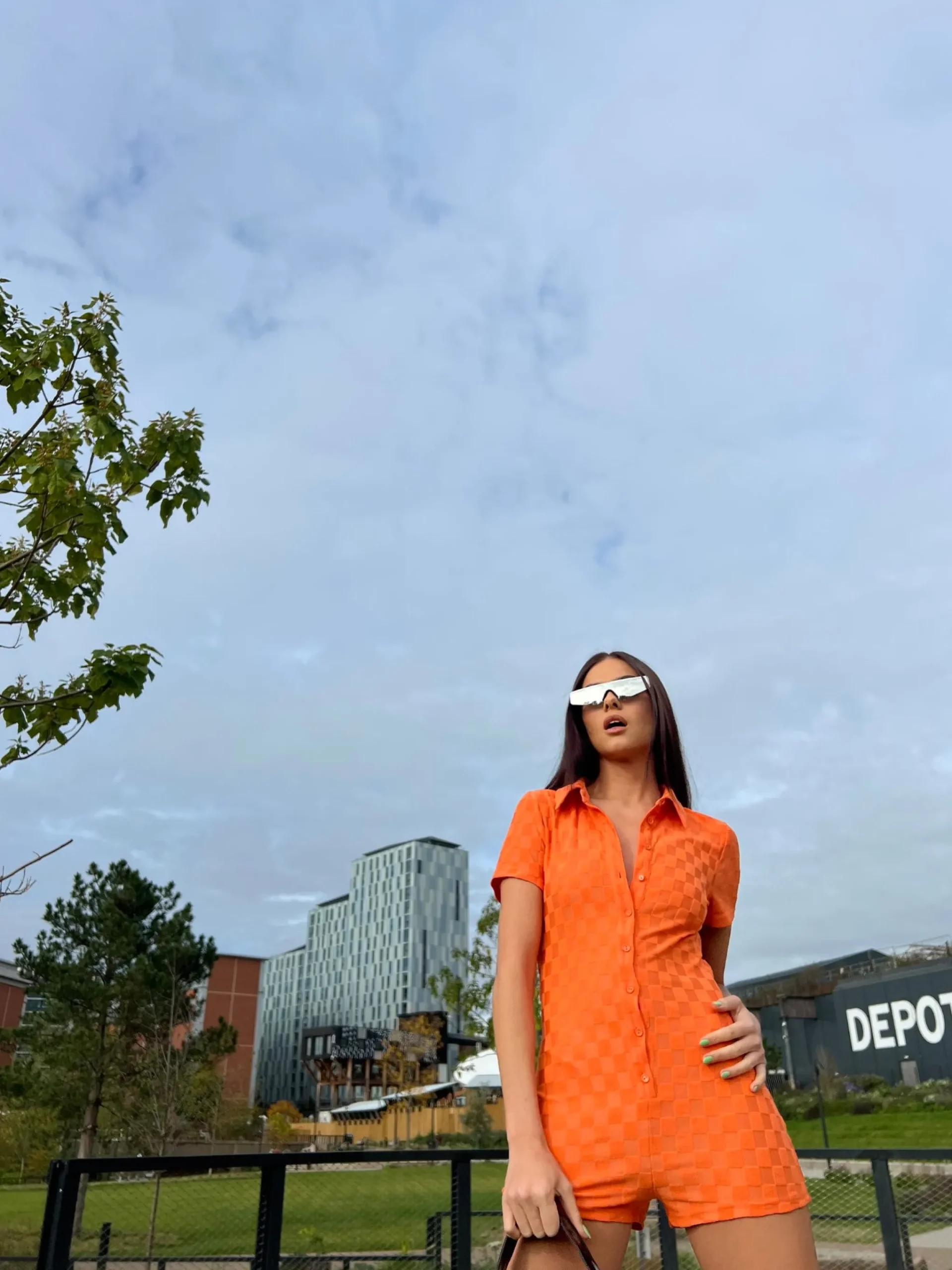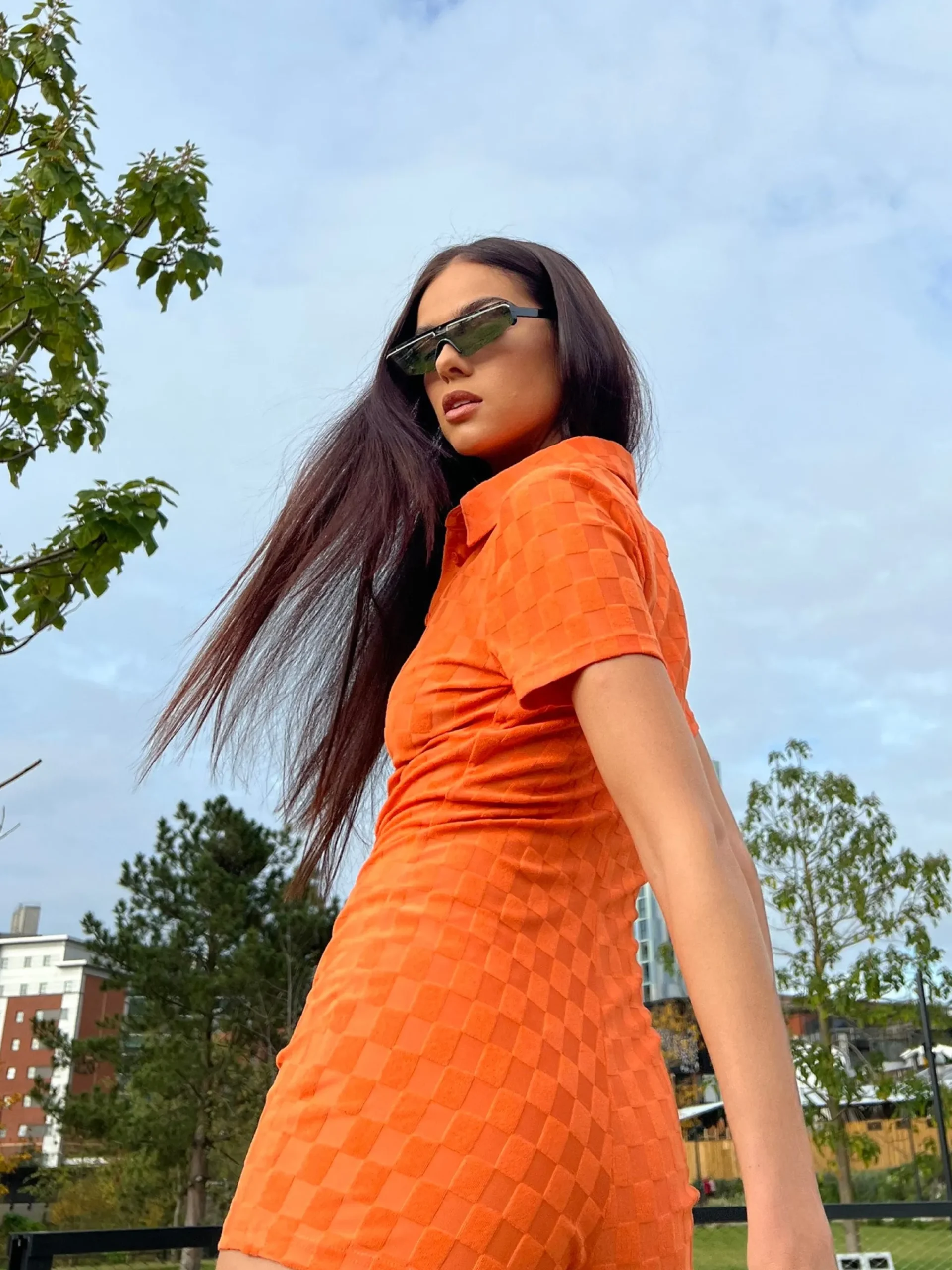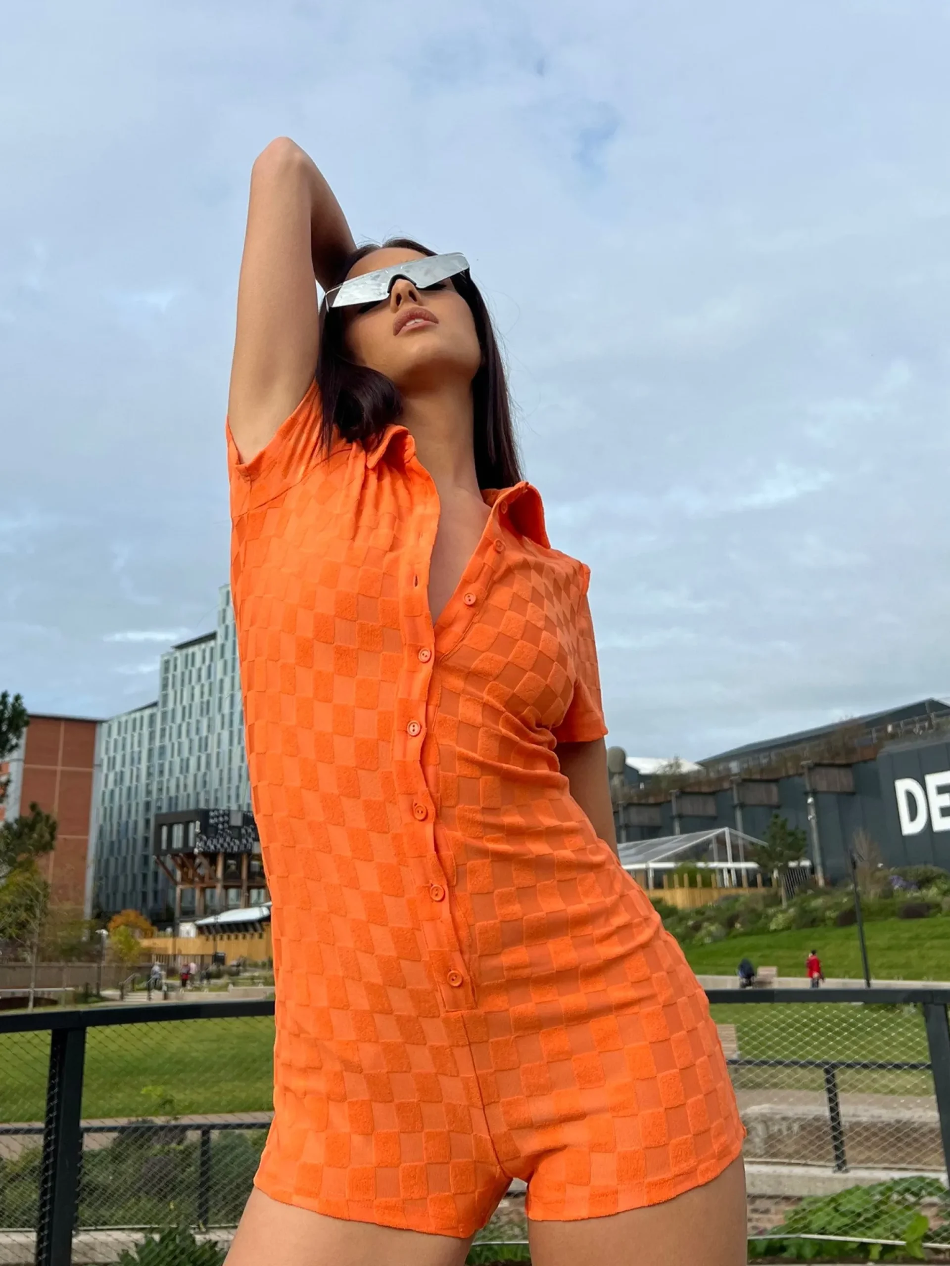 Glamorous Womens Orange Checkerboard Button Through Romper. This statement romper is for the colour lovers! Made from an orange checkerboard fabric and with a body-hugging fit, this one-piece is a guaranteed head turner.