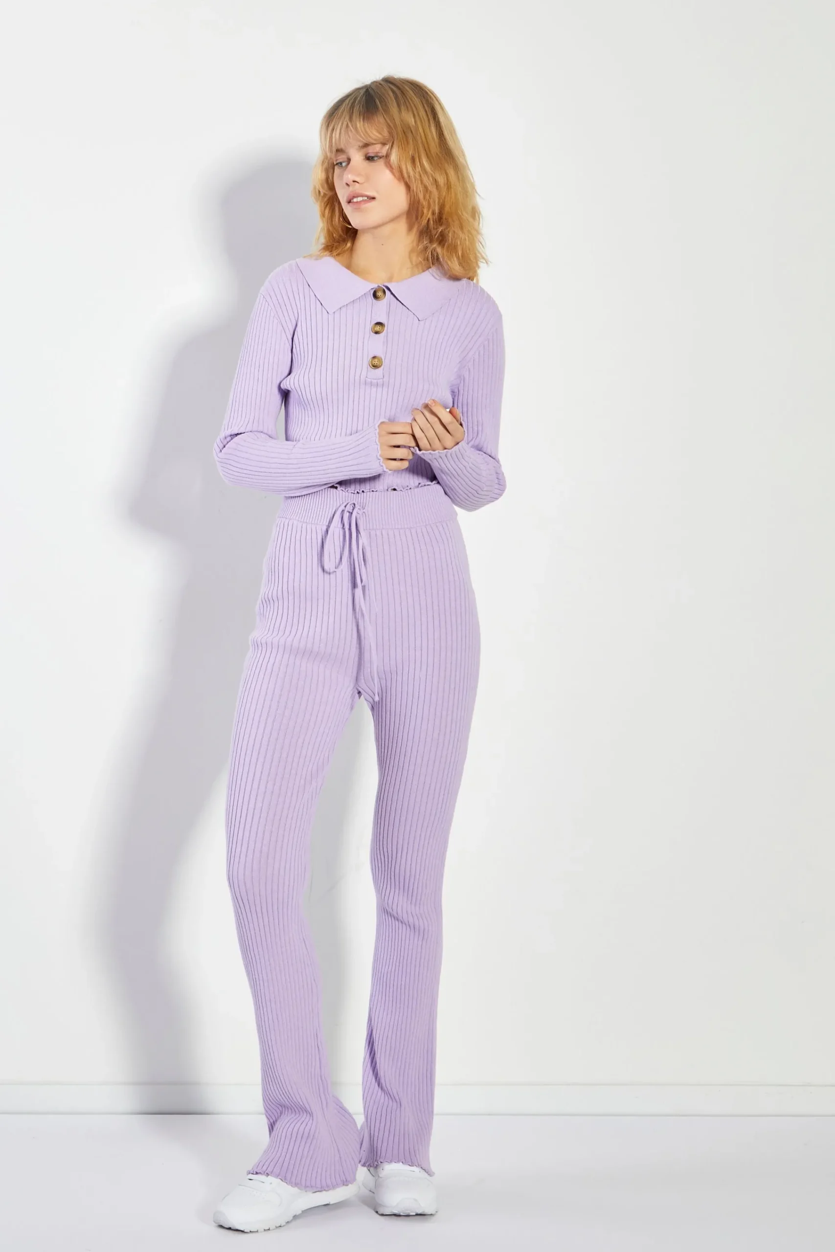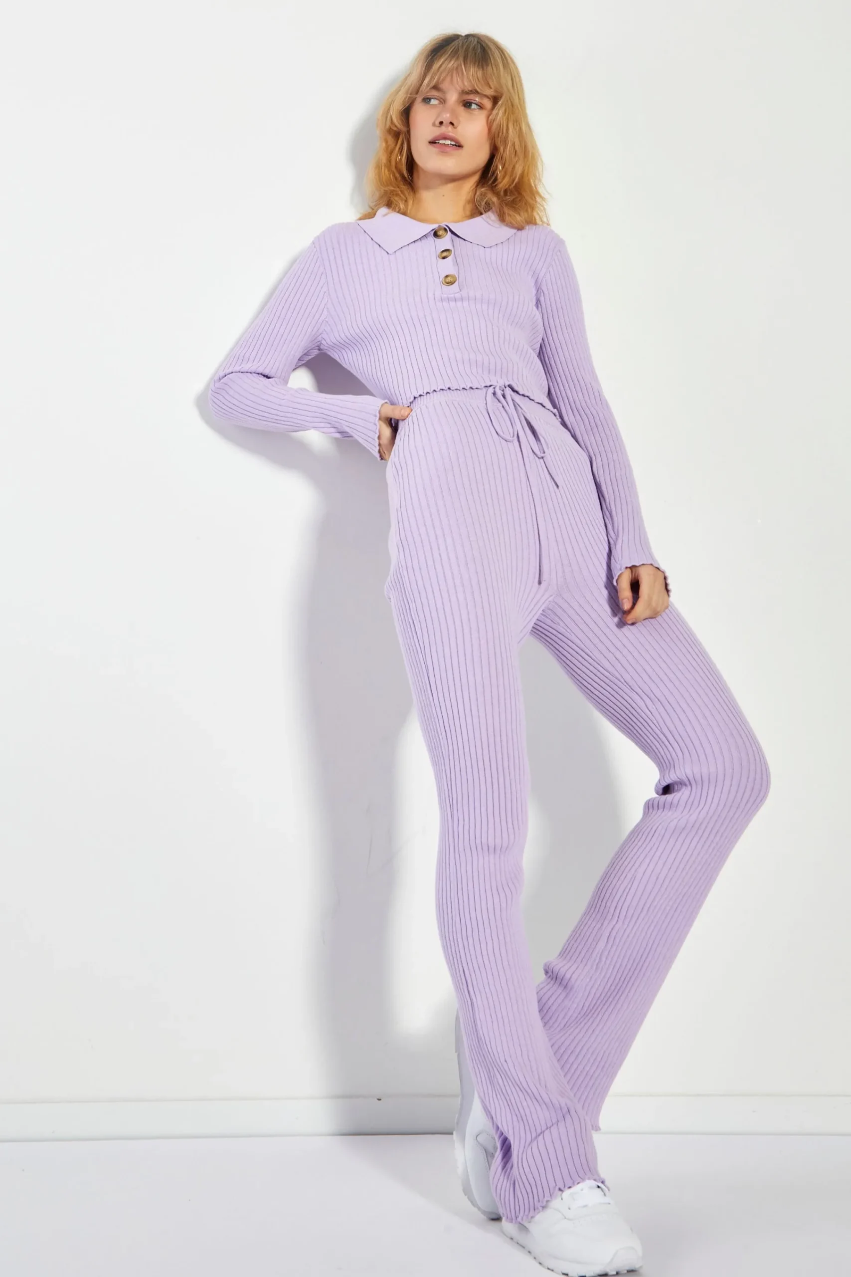Glamorous Womens Lilac Marl Rib High Waisted Trousers. This piece is providing you with all you could want this season. Featuring a ribbed finish and on trend colour, you wont fail to impress in this flattering piece. Pair with matching lilac top and trainers for an on trend look this season.