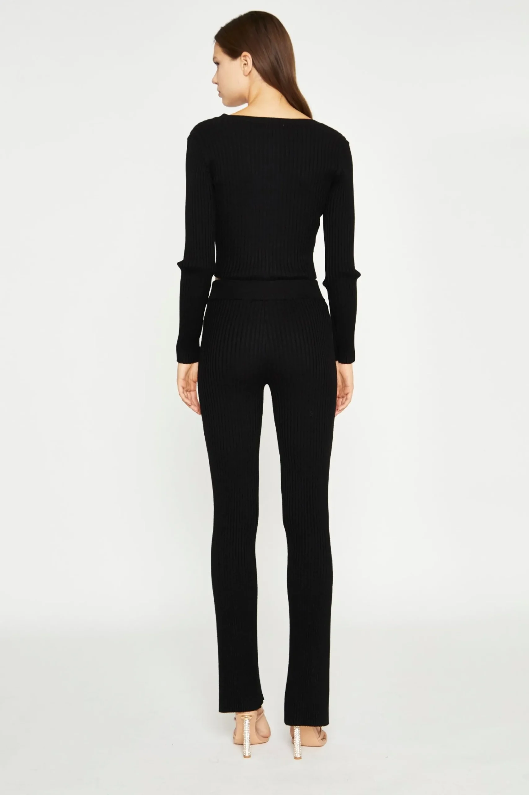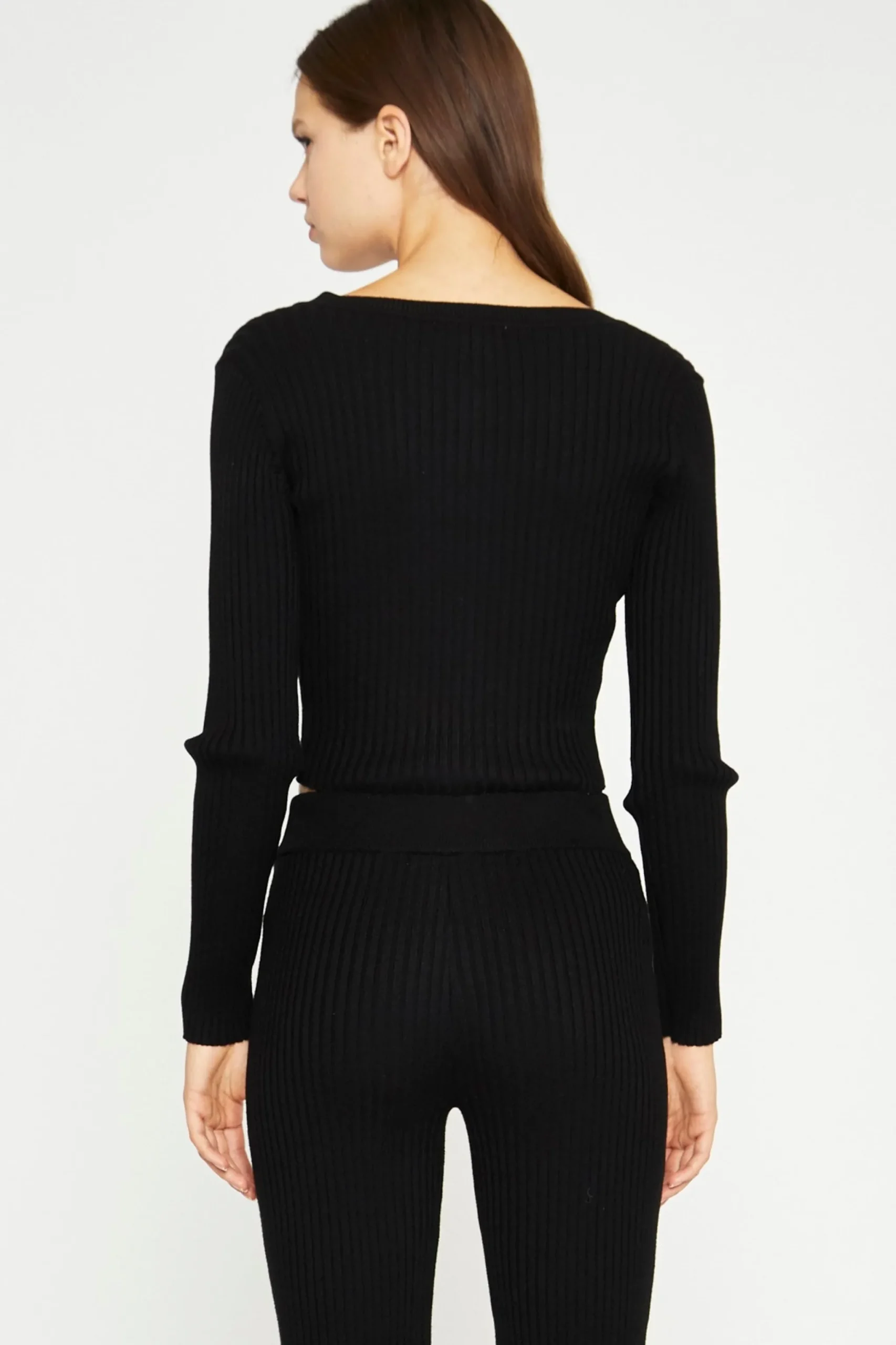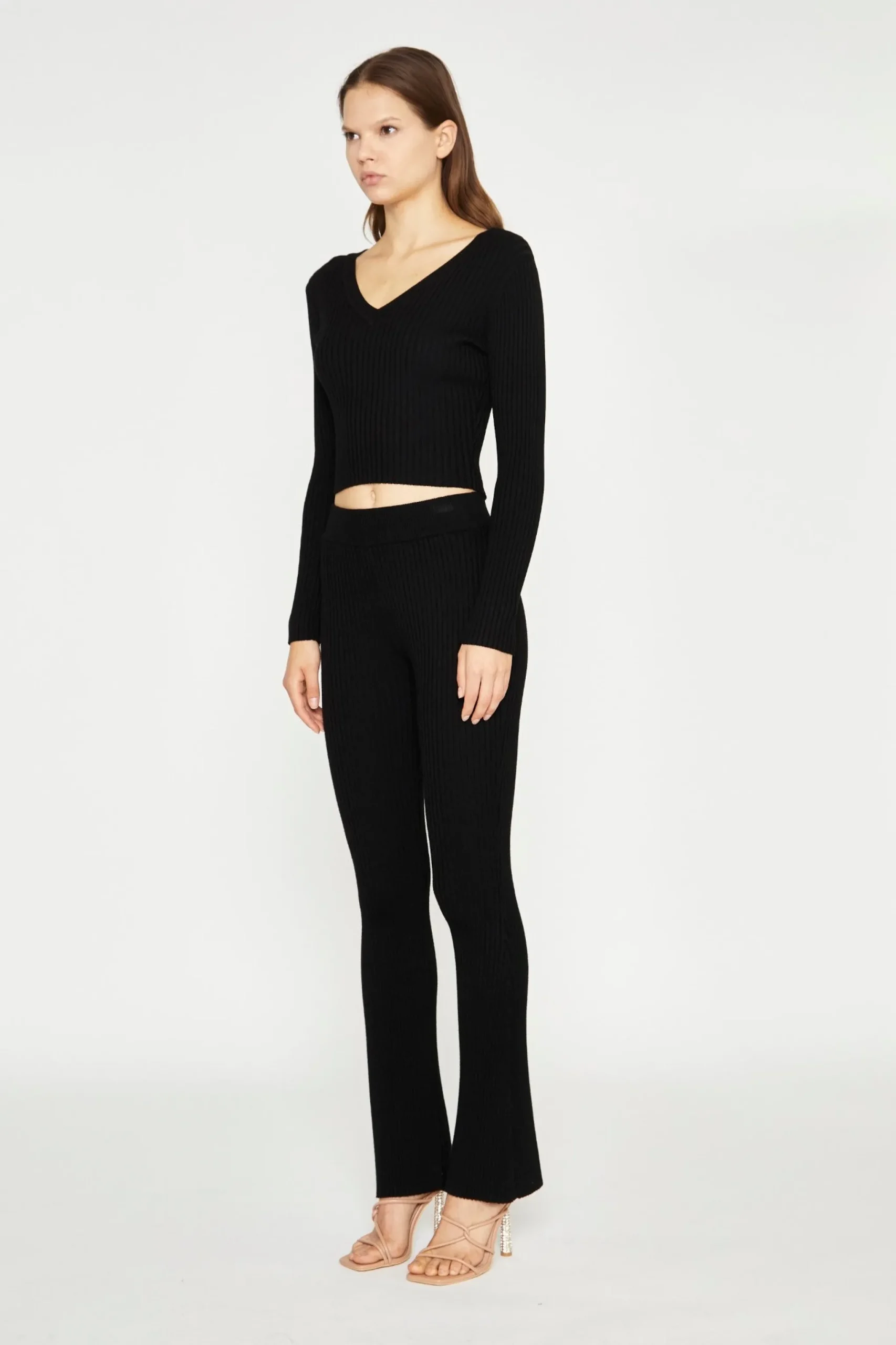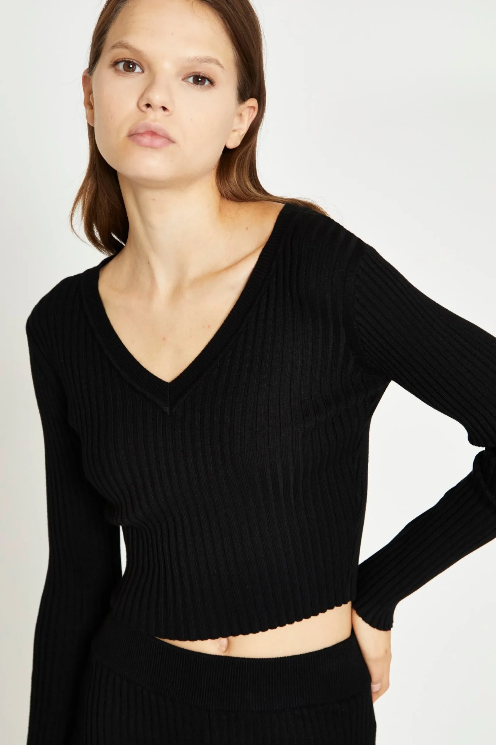 Glamorous Womens Black Knitted V-Neck Crop-Top. This basic black knit crop top is the classic versatile piece you need! With its v-neckline and long sleeves, you can wear this number pretty much all year round! Style with the matching trousers or jeans for a relaxed but stylish look!
