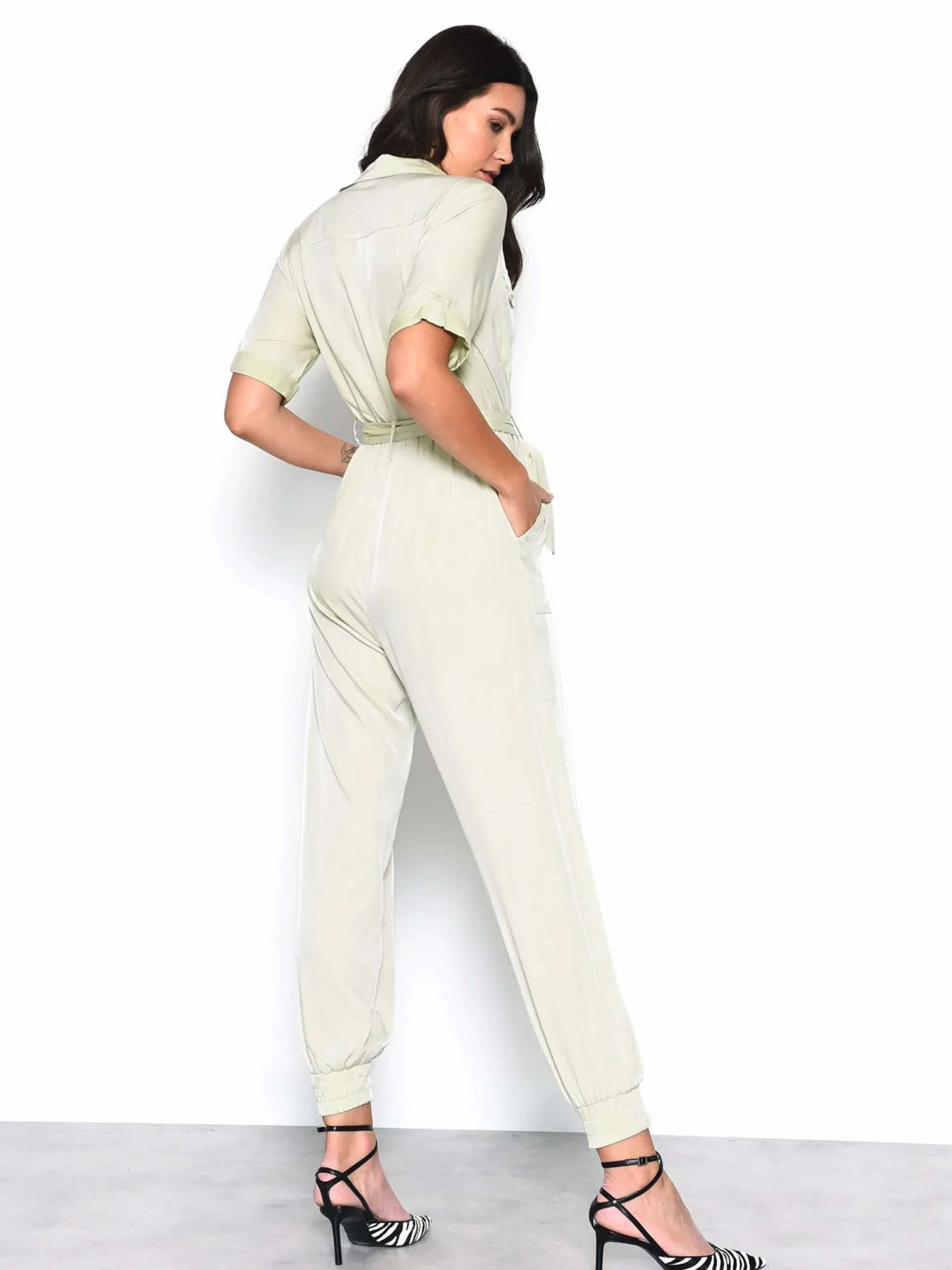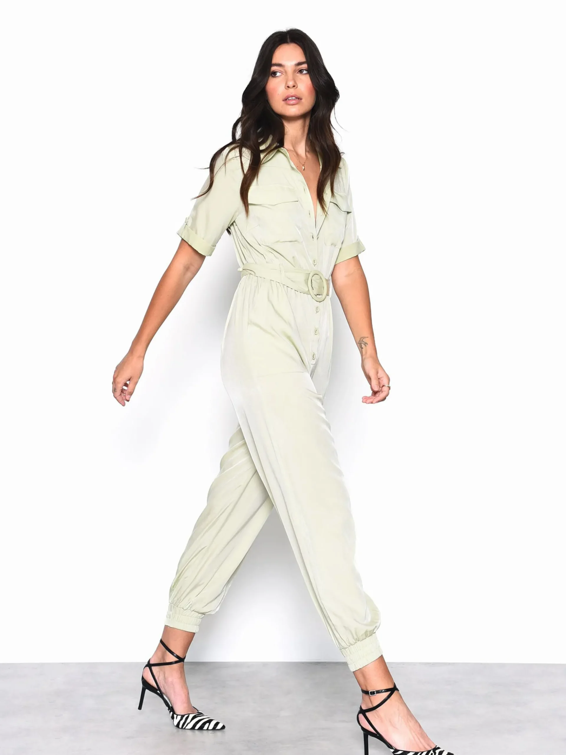 Glamorous Womens Mint Belted Jumpsuit. This piece is perfect for your summer wardrobe this season. Featuring belt detail and flattering fit this will look great on you ! Pair with trainers for a daytime look. Take the outfit from day to night with some mule sandals and a ruched shoulder bag.