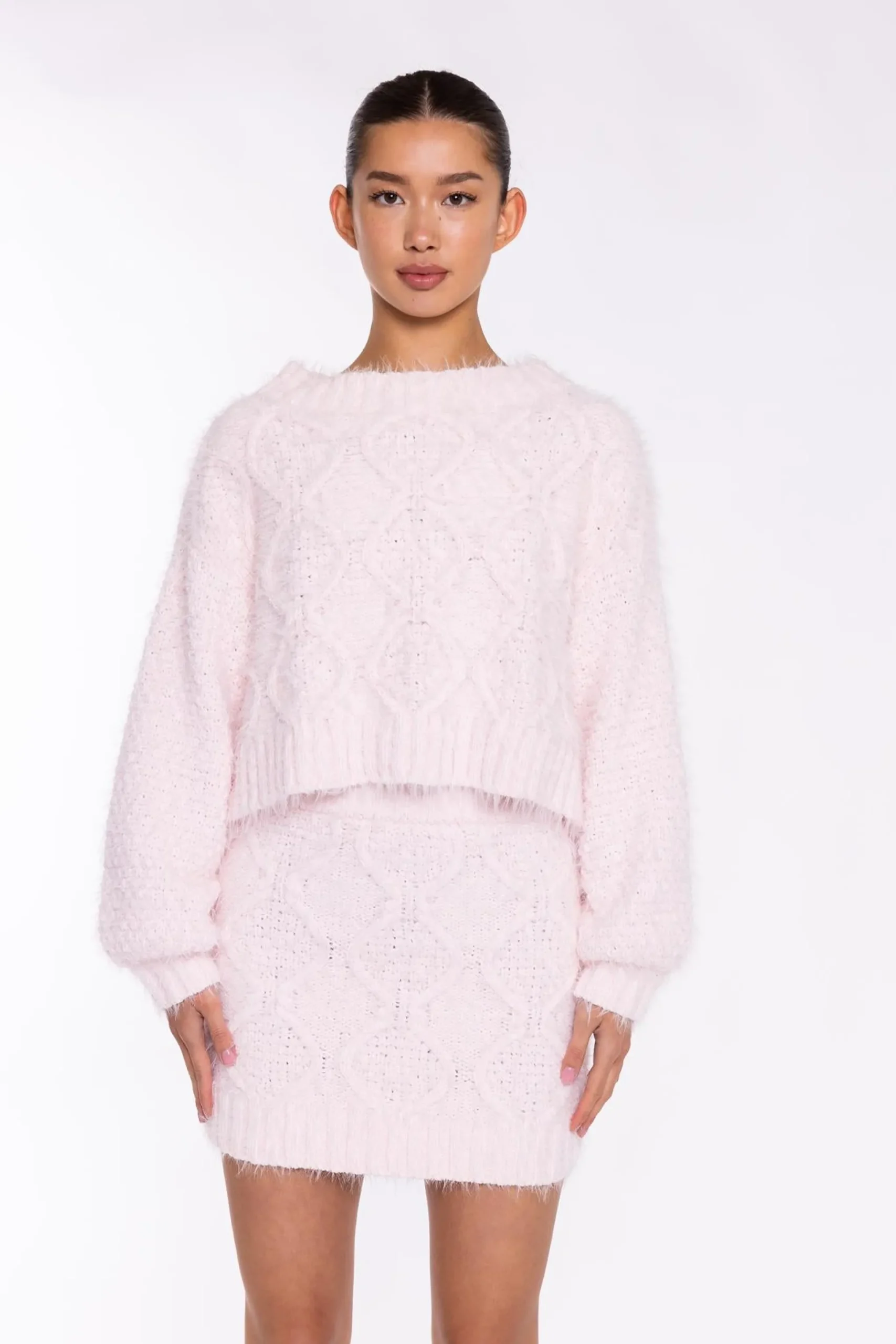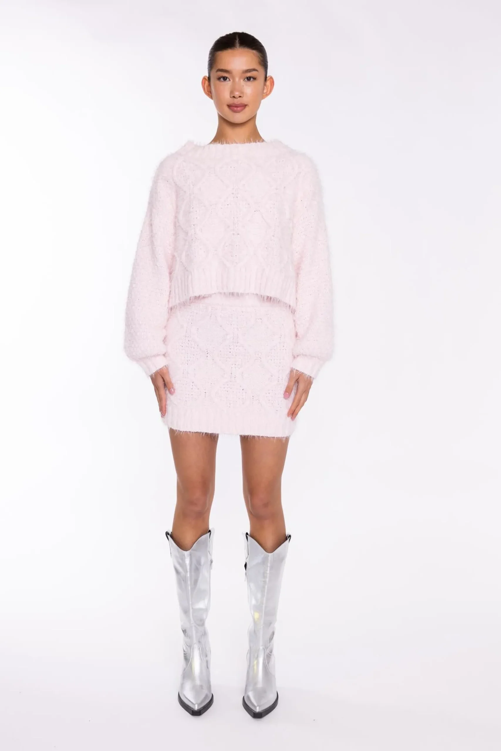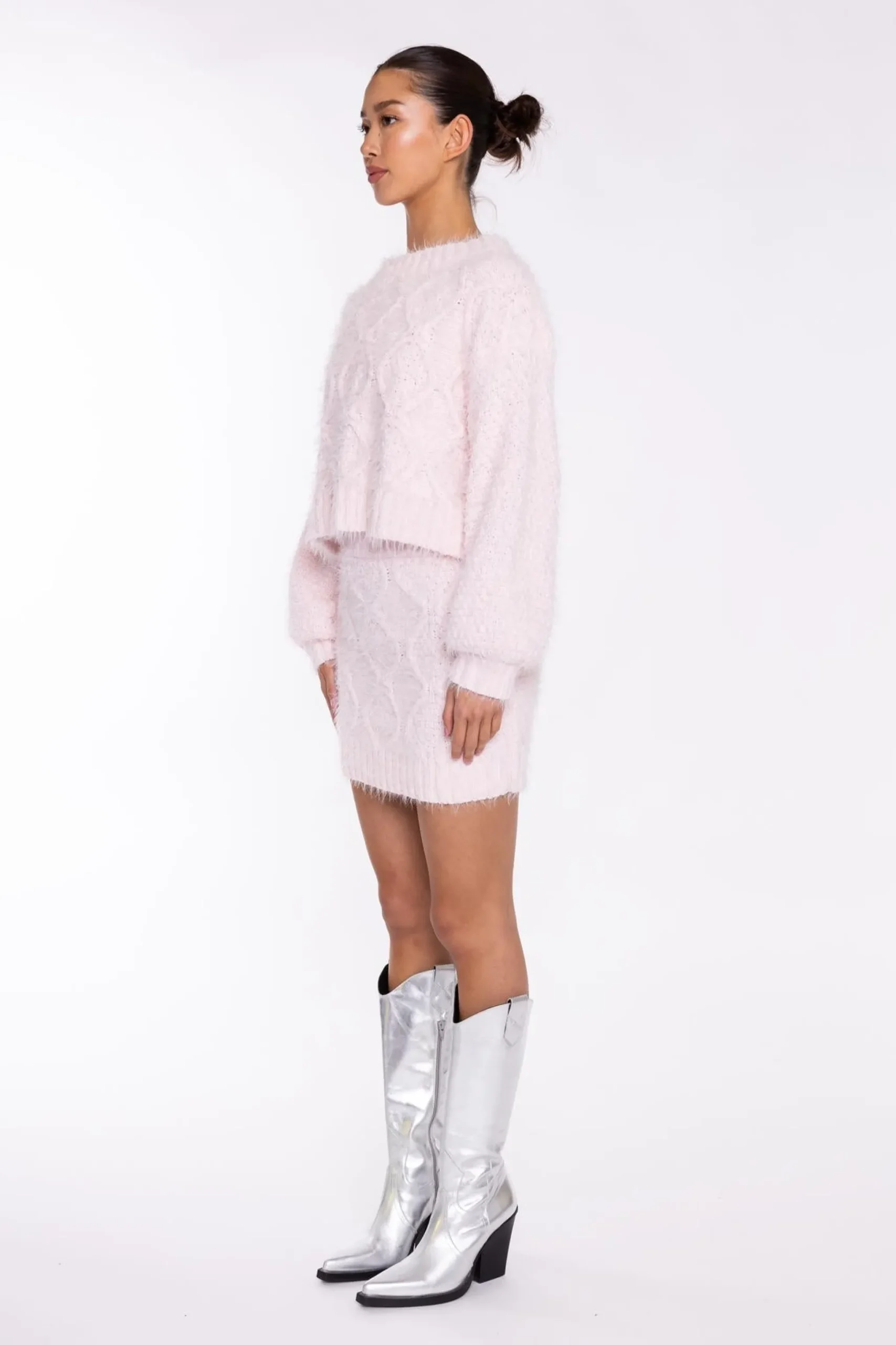 Glamorous Women’s Icy-Pink Cable-Knit -Jumper. Wrap yourself in the cozy comfort of our icy-pink cable-knit jumper, a delightful addition to your winter wardrobe. This charming piece features a classic crew neck and intricate cable-knit pattern that adds both warmth and visual interest. The fluffy knit texture is irresistibly soft to the touch, making it perfect for snuggling up on chilly days. Available in multiple colours, you can choose the shade that best suits your style. For a coordinated look, pair it with the matching skirt to create a sweet and stylish ensemble. The versatility of this jumper shines through its ability to be dressed up or down – throw it on with jeans for a casual day out, or team it with a skirt and boots for a more polished appearance. This jumper isn’t just clothing; it’s a hug in fabric form, ready to keep you snug and fashionable throughout the cooler months..