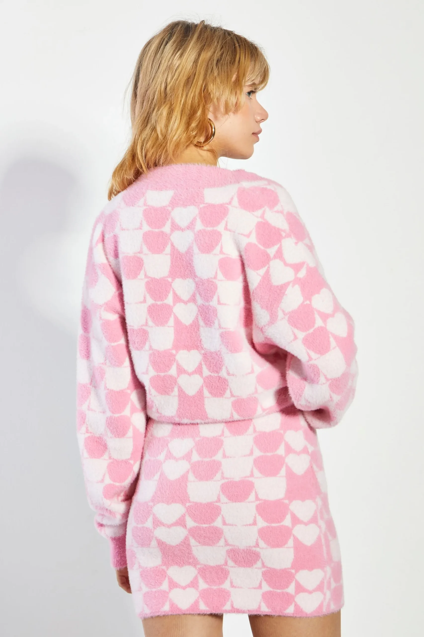 Glamorous womens Pink Multi Heart Mini Skirt. This mini skirt is perfect for your wardrobe this season. Featuring an on trend pattern, flattering fit and luxe finish this mini skirt is the perfect fashion forward fit for you. Pair with matching co ord cardigan and white boots for the perfect on trend look.