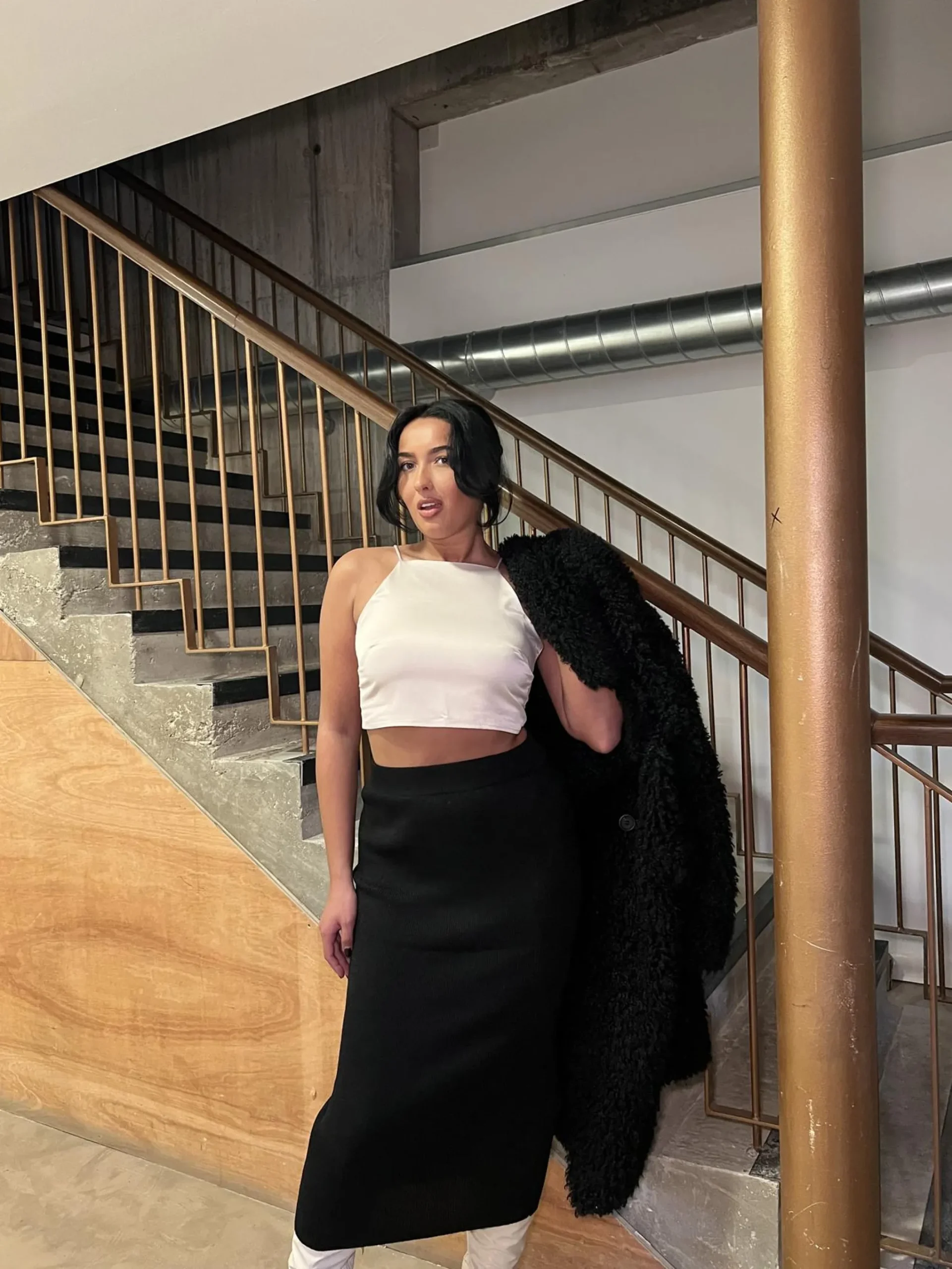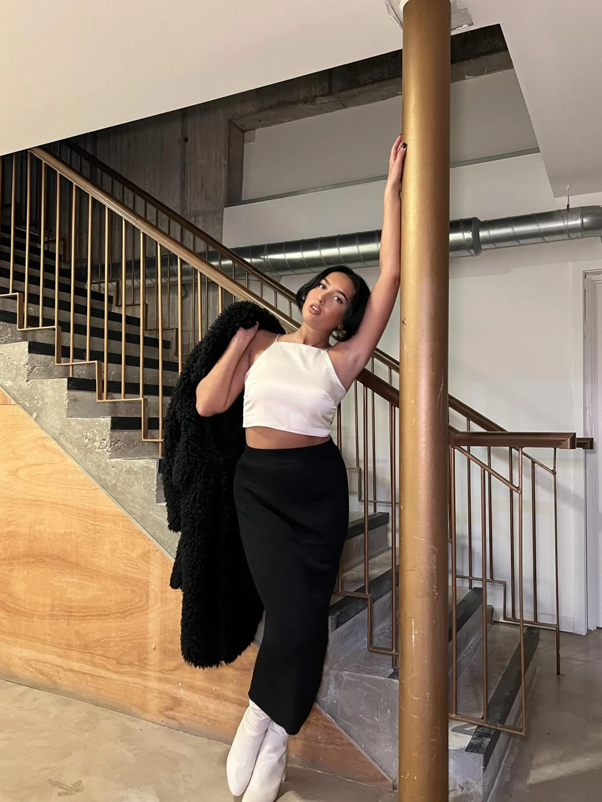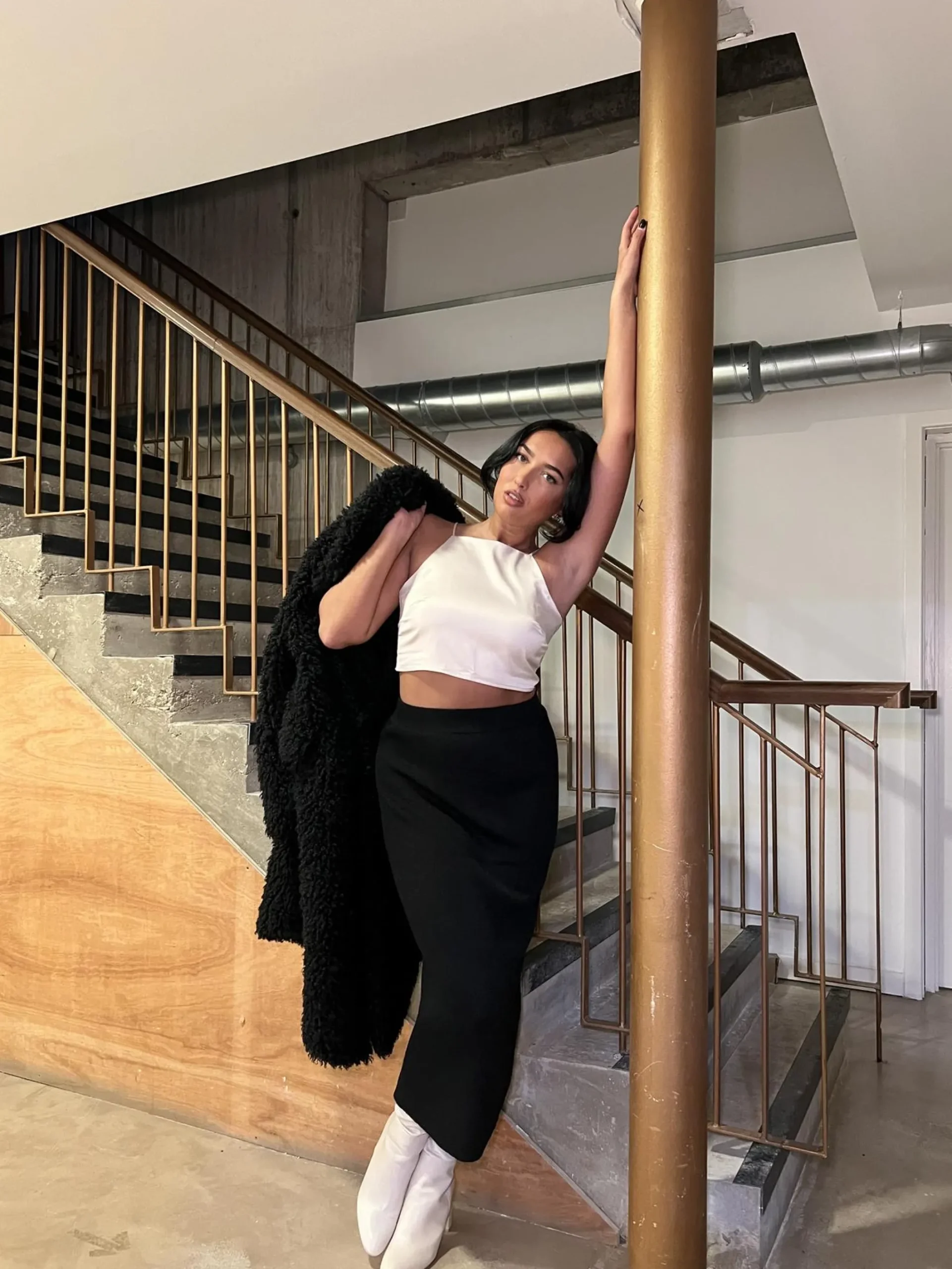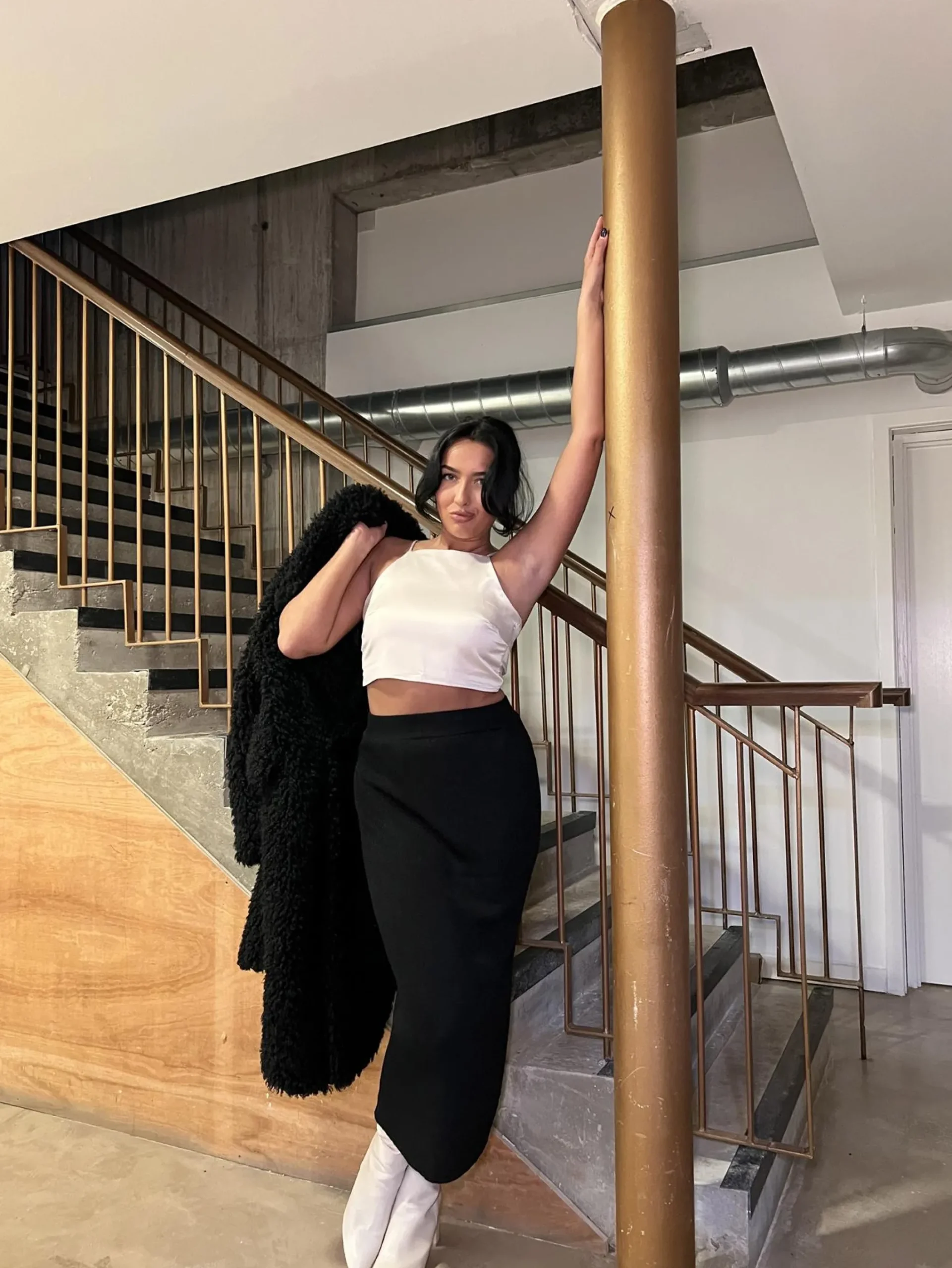 Glamorous Women’s Black-Glitter Knitted Bodycon Midaxi-Skirt. Say hello to our Glitter Knitted Bodycon Midaxi-Skirt, a dazzling blend of comfort and glamour. This skirt hugs your curves in all the right places, thanks to its figure-flattering bodycon fit. The midaxi length strikes the perfect balance between flirty and elegant, hitting just below the calf for a modern silhouette. We’ve crafted it from a glitter rib-knit fabric that catches the light with every move, adding a subtle sparkle to your day or night look. The elasticated waistband ensures a snug, comfy fit that moves with you. It’s like wearing a hug that also happens to make you shine. Pair it with a simple crop top for a night out, or dress it down with a cozy sweater for a touch of everyday magic. This skirt is your secret weapon for feeling fabulous without sacrificing comfort.