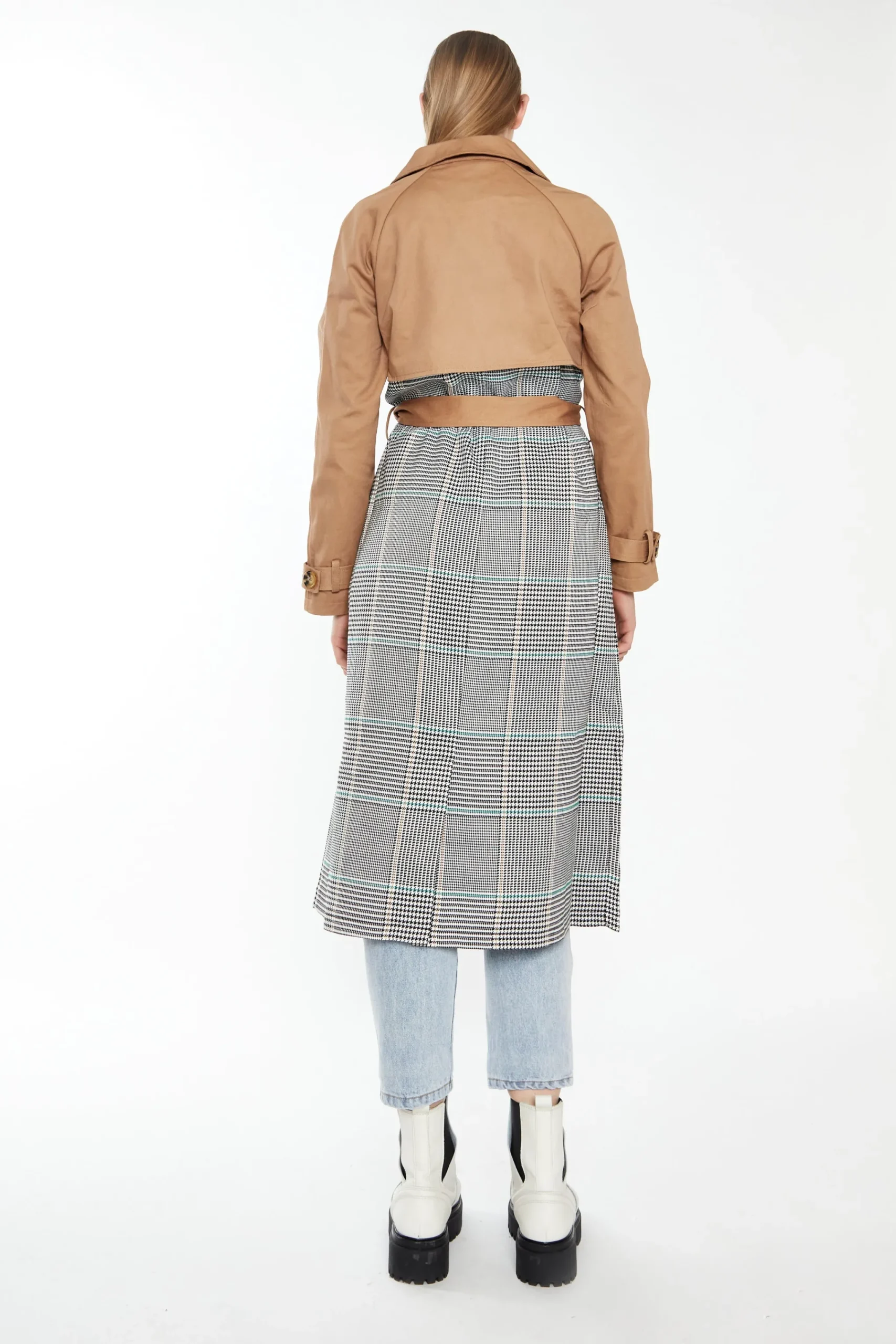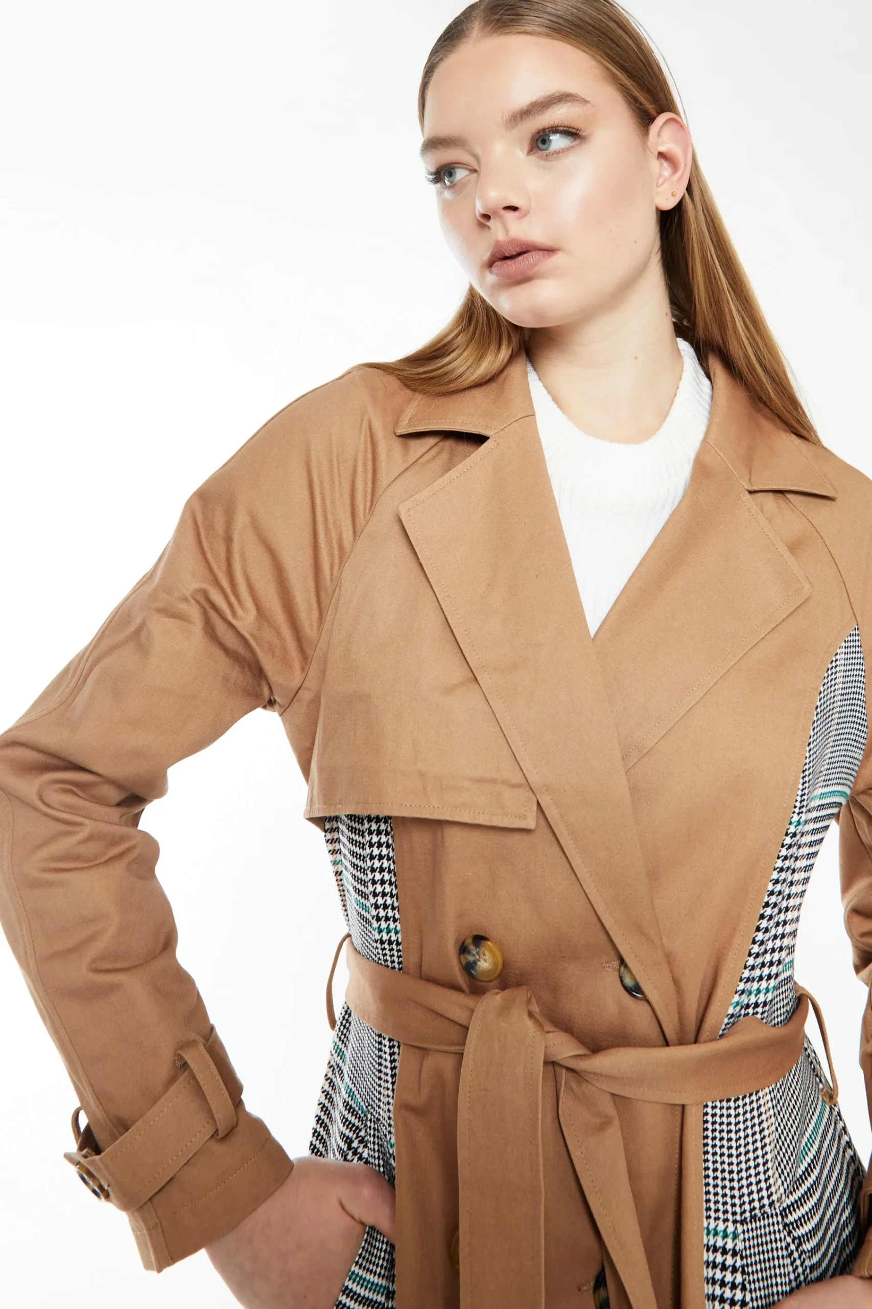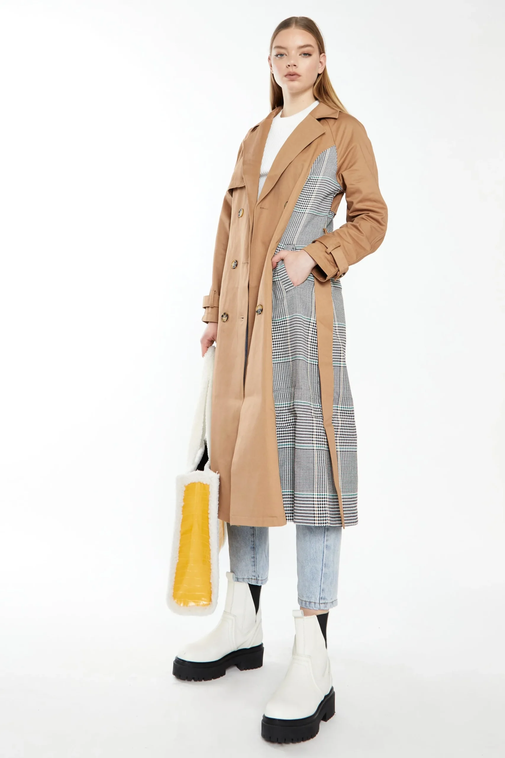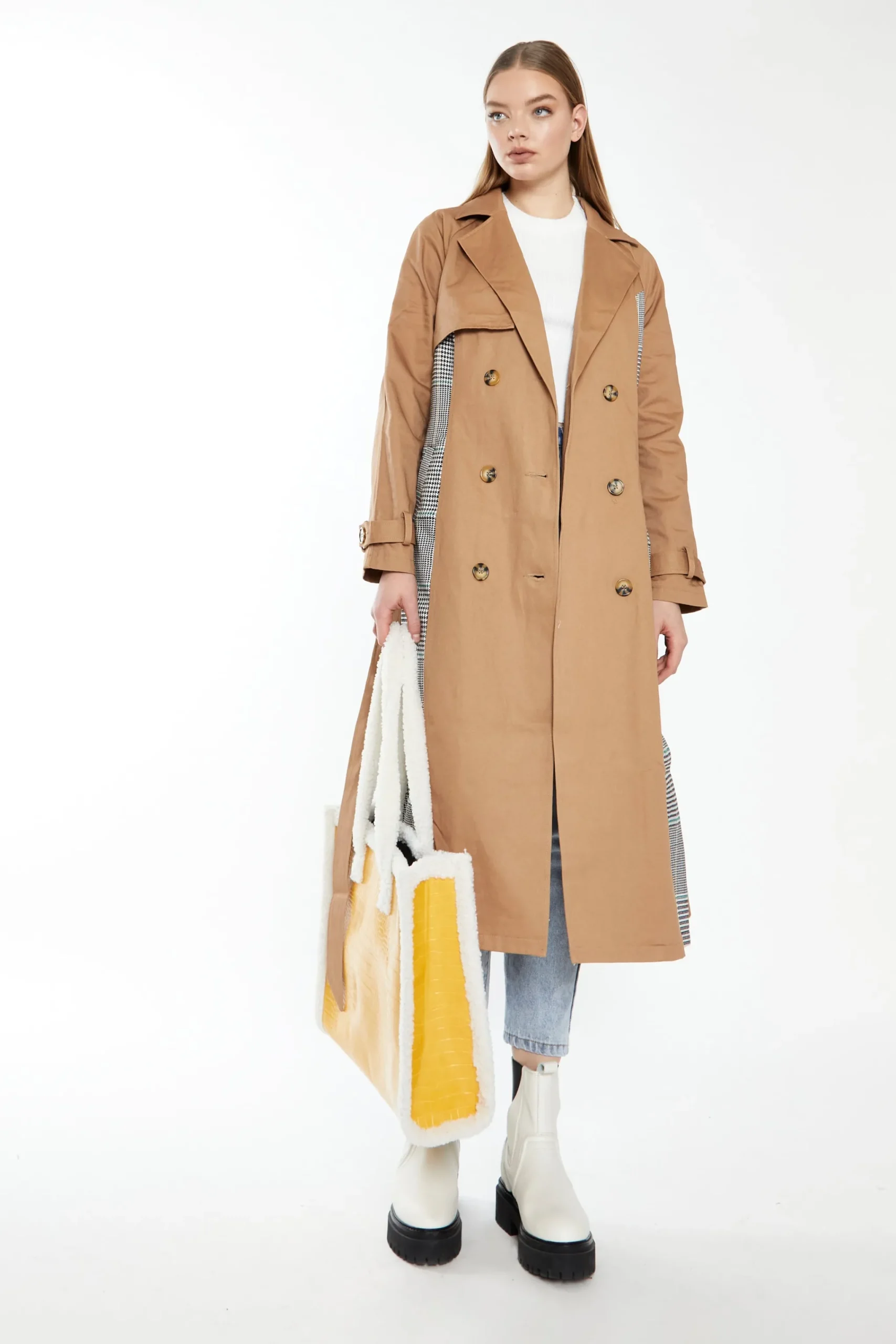 Glamorous Womens Stone Check Trench Coat. Forever on-trend, this classic longline trench coat with on-trend check print, belt detail and button front is a wardrobe essential. Perfect for elevating every outfit, looks great simply styled with a classic tee and jeans.