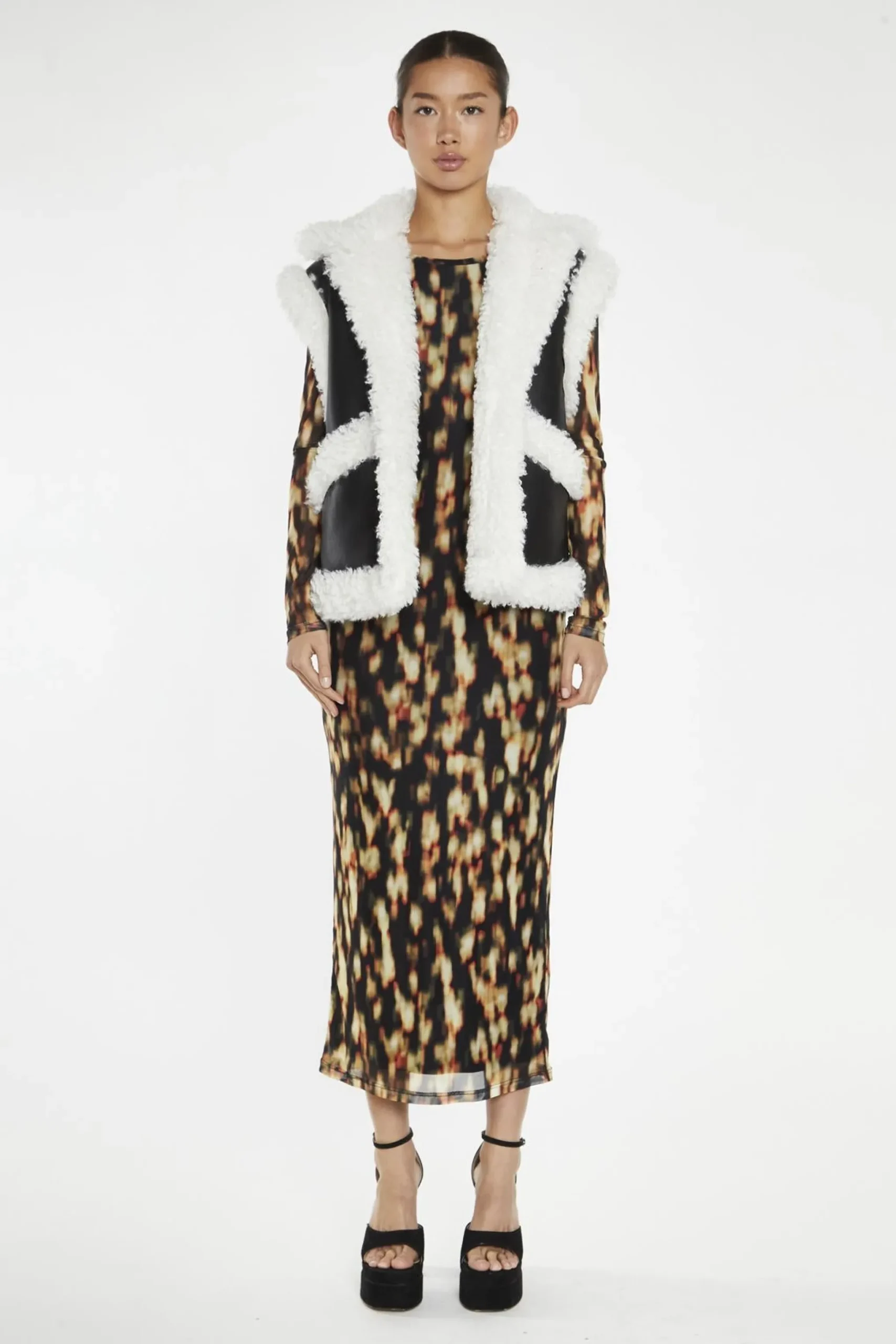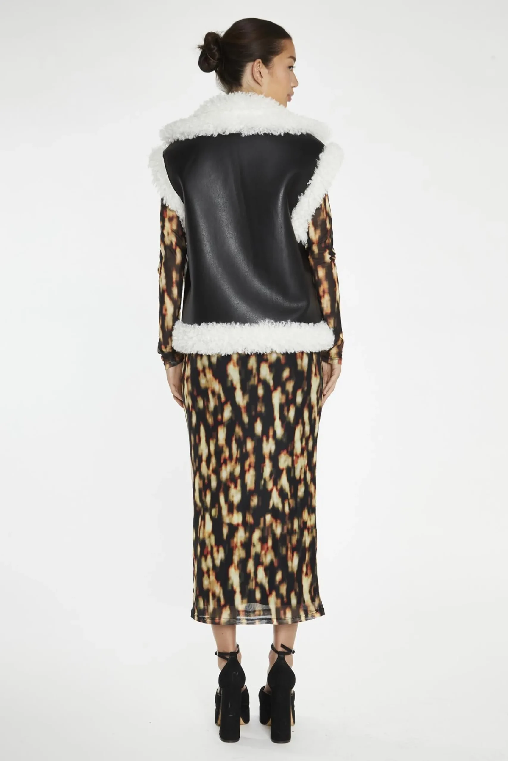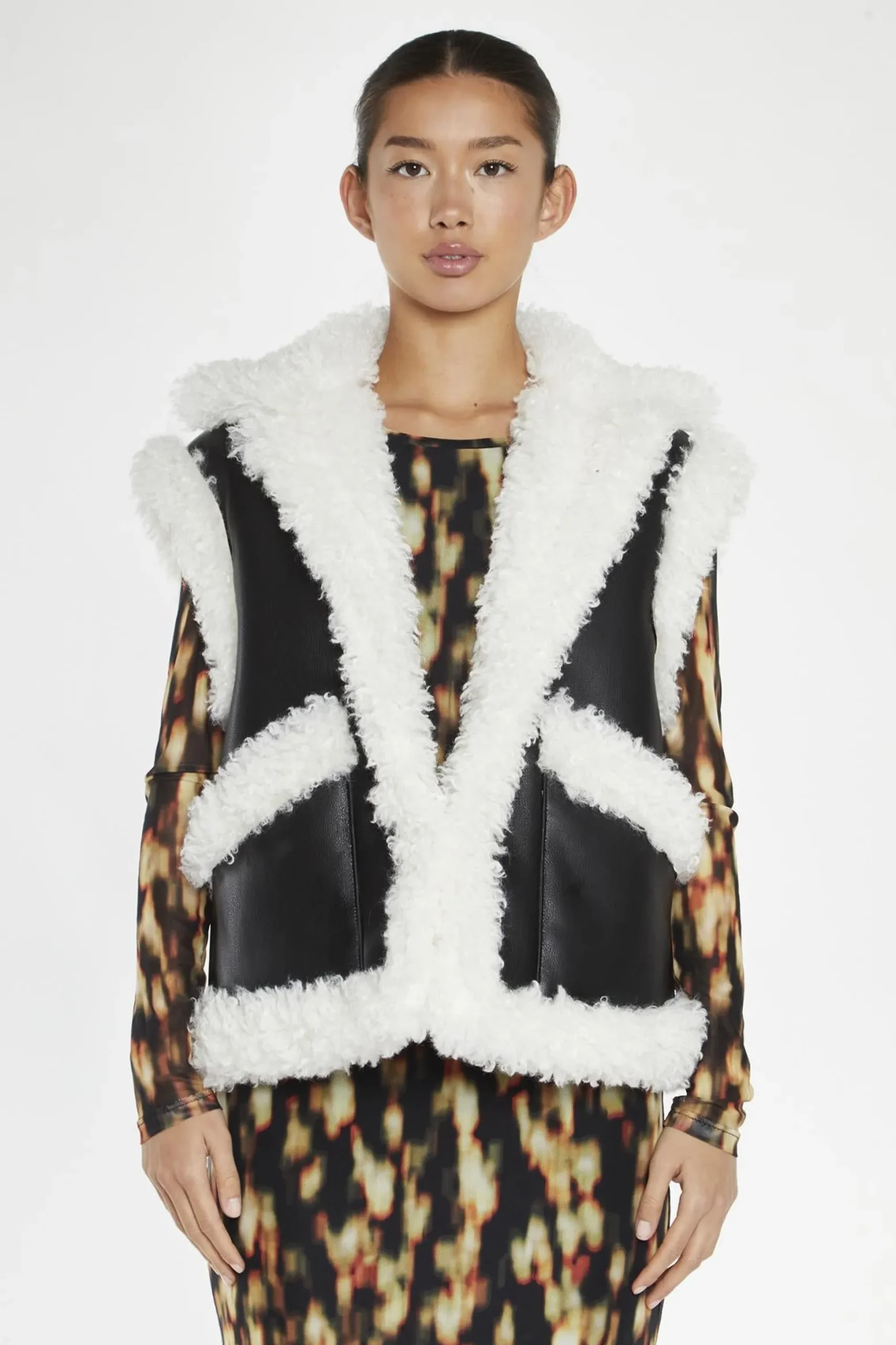 Glamorous Women’s Black-White Faux-Shearling Trim Oversized-Gilet. Wrap yourself in comfort with this stylish black-and-white faux-shearling trim oversized gilet. Designed for a relaxed fit, it drapes effortlessly over any outfit, making it a versatile addition to your wardrobe. The soft shearling trim adds a cozy touch, perfect for chilly days or layering up during transitional seasons. Its classic gilet shape provides a timeless look that pairs beautifully with everything from casual tees to chic turtlenecks. For a complete ensemble, consider wearing it with your favourite high-waisted jeans or a simple dress. This gilet is not just a piece of clothing; it’s a go-to layer that brings warmth and style to your everyday looks..