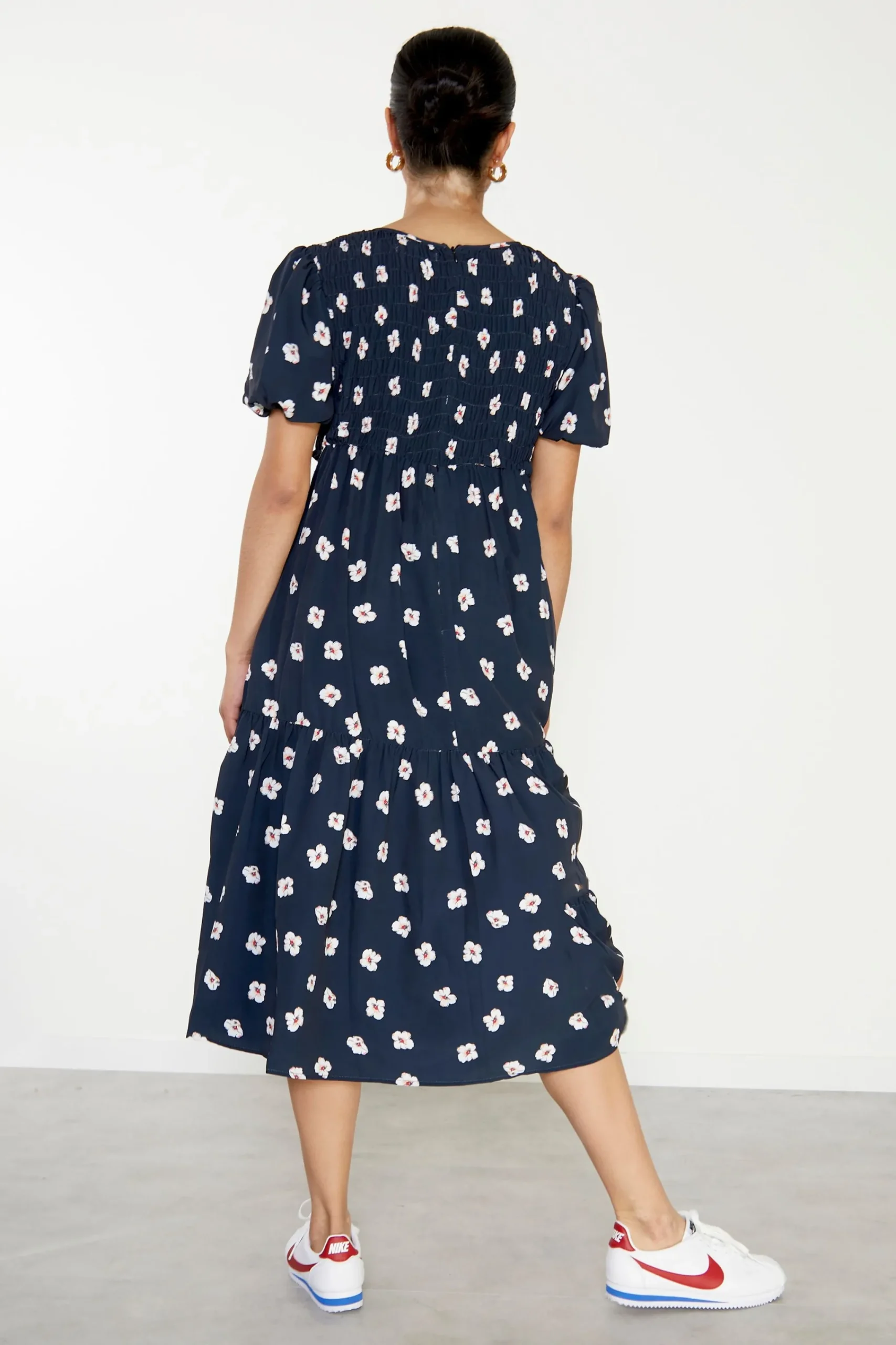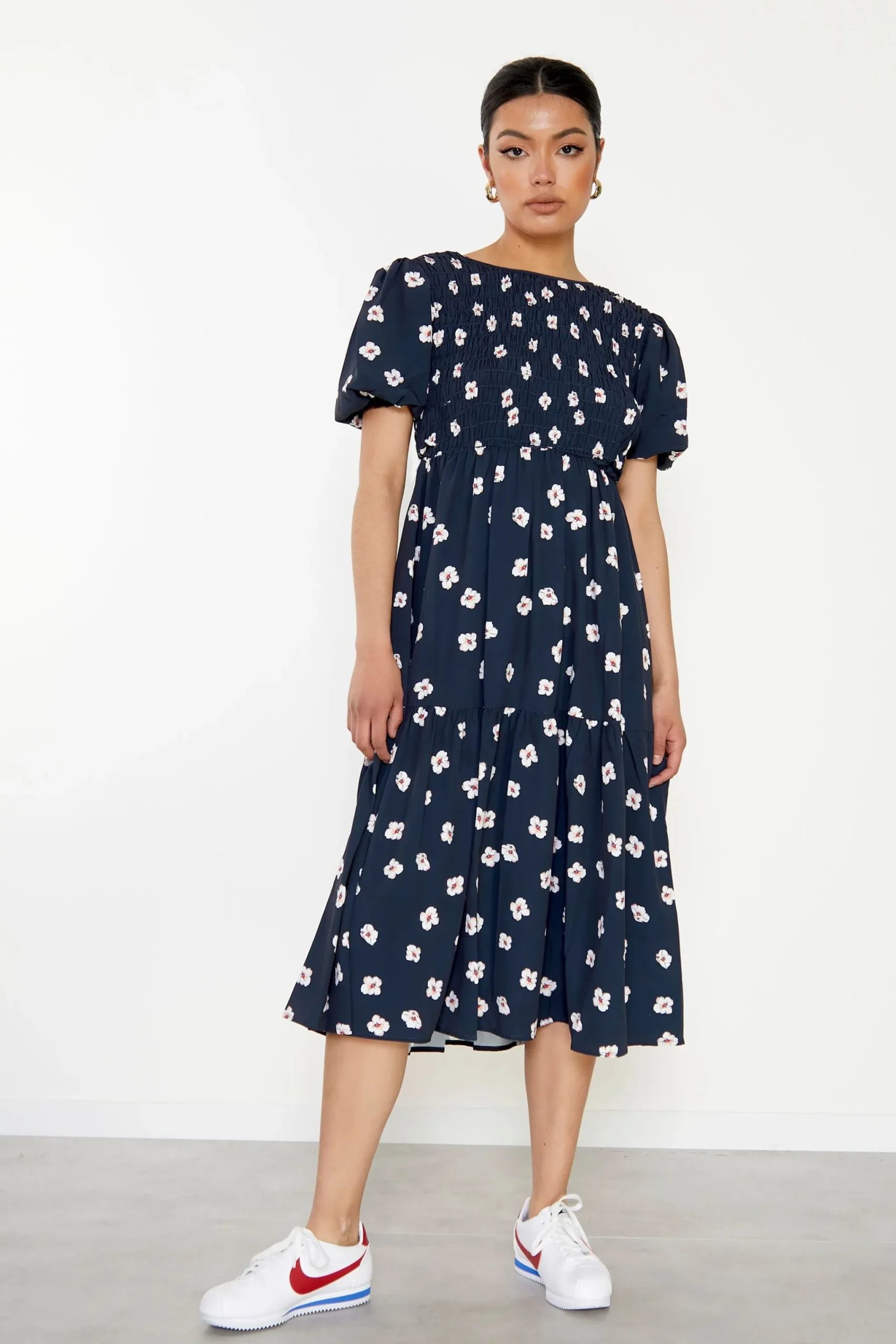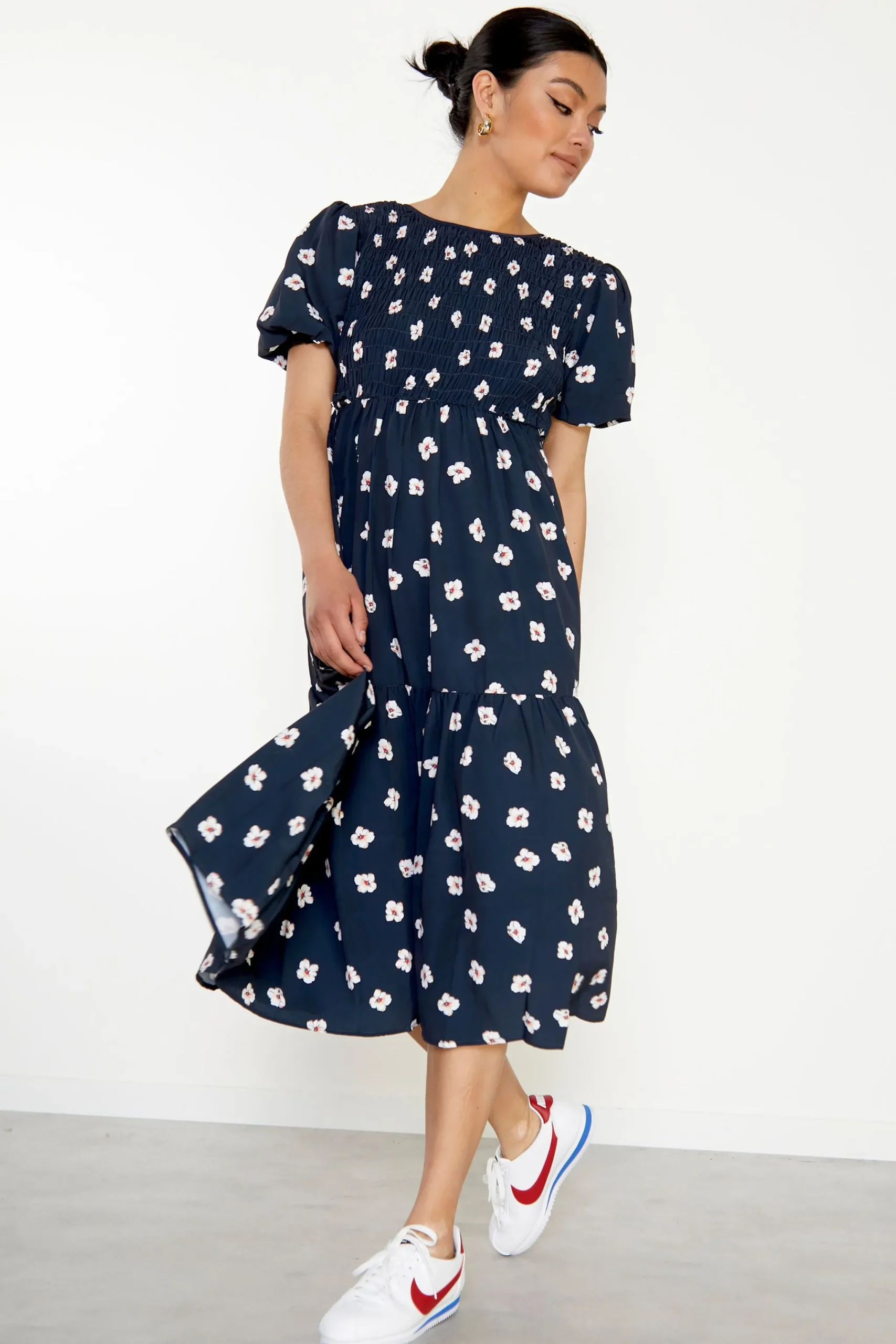 Glamorous Womens Glamorous Navy Hibiscus Short Sleeve Midi Dress. This dress is a perfect addition to your wardrobe this season. Featuring a super flattering an on trend floral pattern, short sleeves, the perfect staple piece you need in your wardrobe this season. Style with chunky boots for the perfect daytime look.