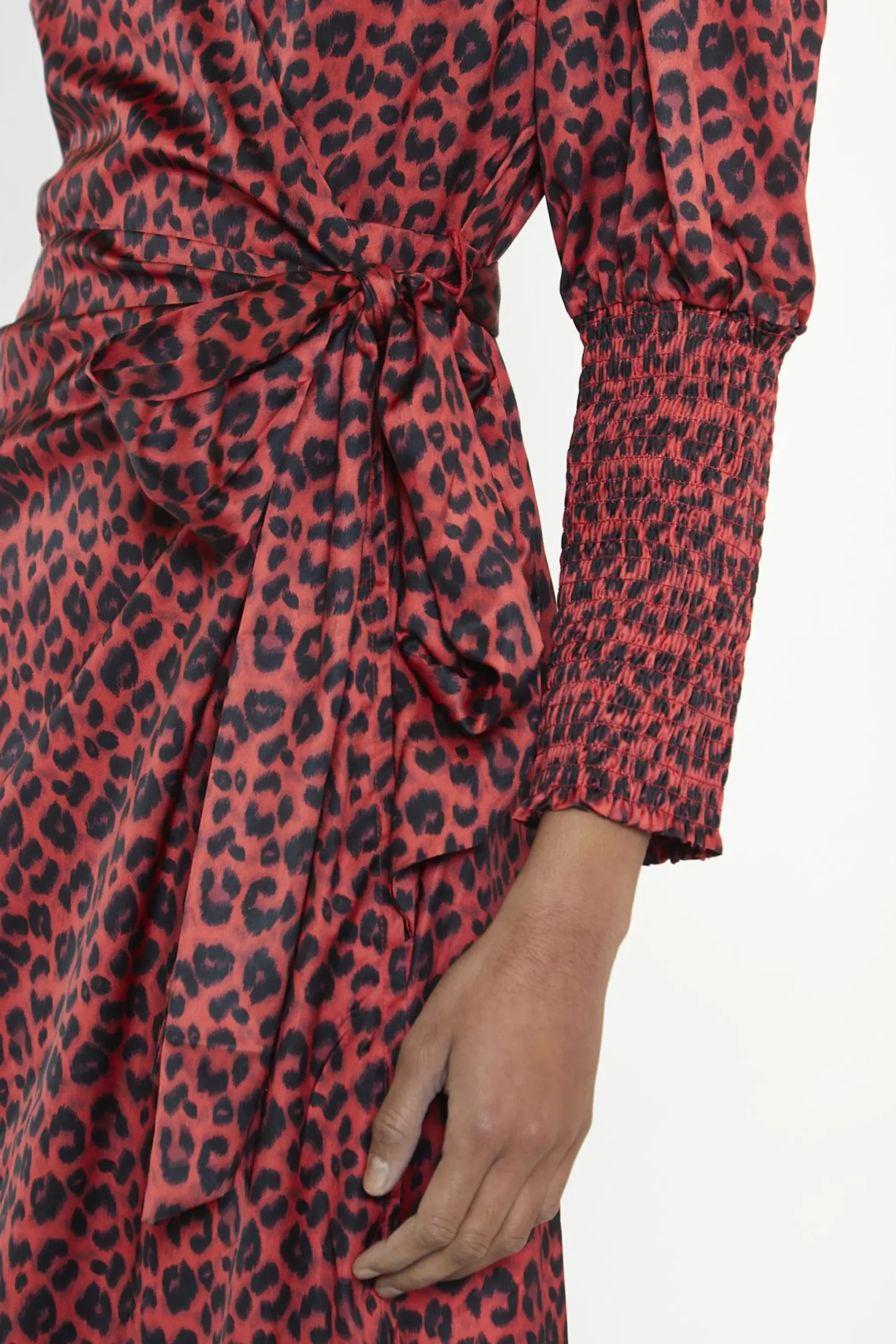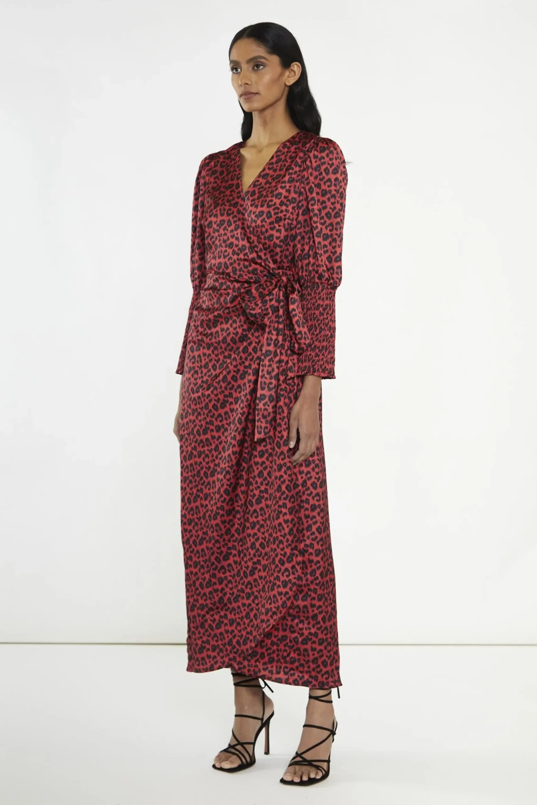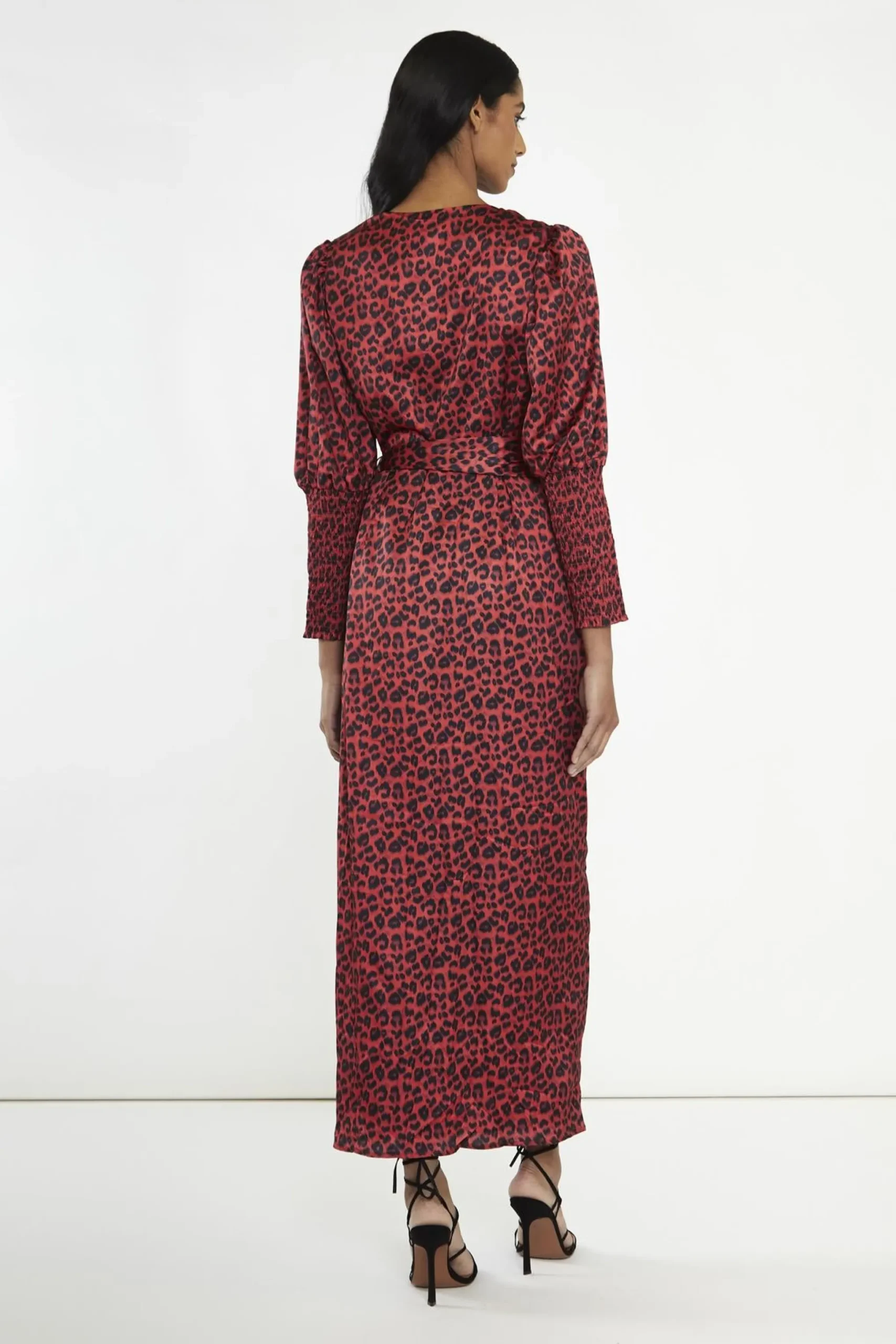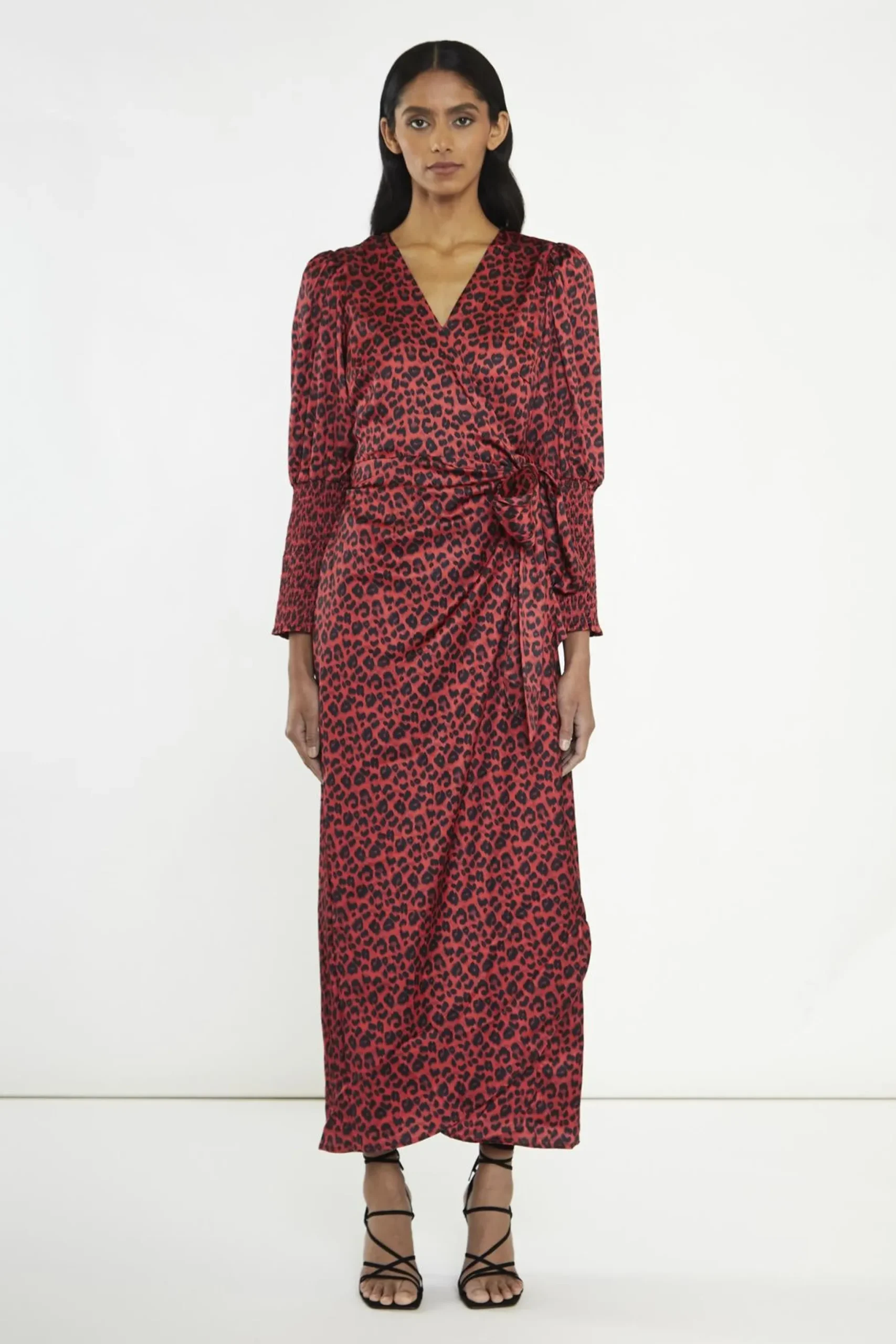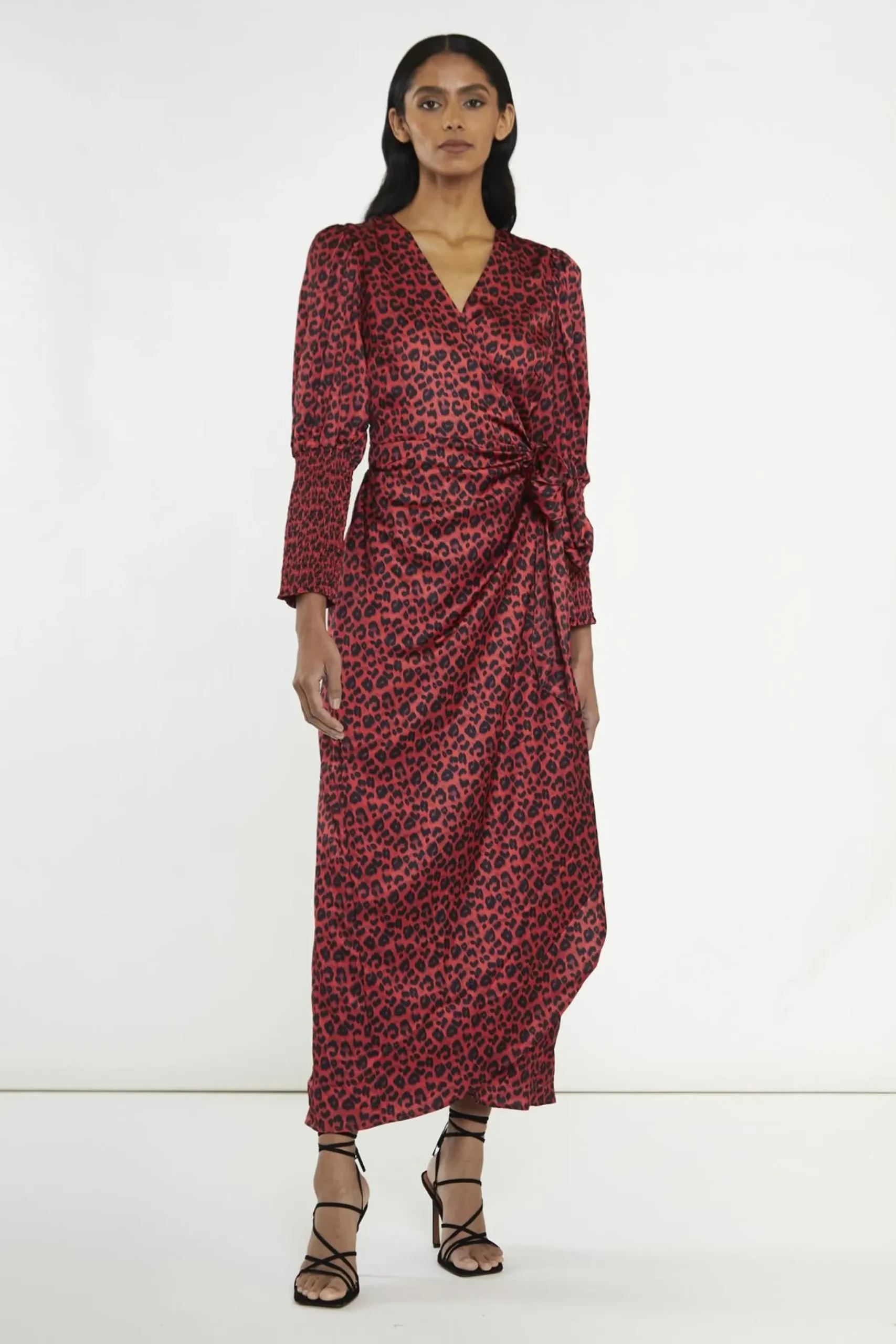 Glamorous Women’s Red Black Animal Wrap Midi-Dress . Unleash your wild side with this eye-catching midi dress that combines comfort and style effortlessly. The wrap design hugs your curves in all the right places, creating a flattering silhouette that’s sure to boost your confidence. Long sleeves offer versatility, making this dress perfect for various seasons and occasions. The V-neck adds a touch of allure, drawing attention to your neckline and framing your face beautifully. Cinch the dress at your waist with the tie feature to accentuate your figure and create a customized fit. The animal print pattern brings a bold and adventurous vibe to your wardrobe, allowing you to stand out from the crowd. This dress transitions seamlessly from day to night – pair it with sneakers for a casual daytime look, or dress it up with heels and statement jewellery for an evening out. The midi length strikes the perfect balance between elegance and practicality, ensuring you feel comfortable and stylish all day long.