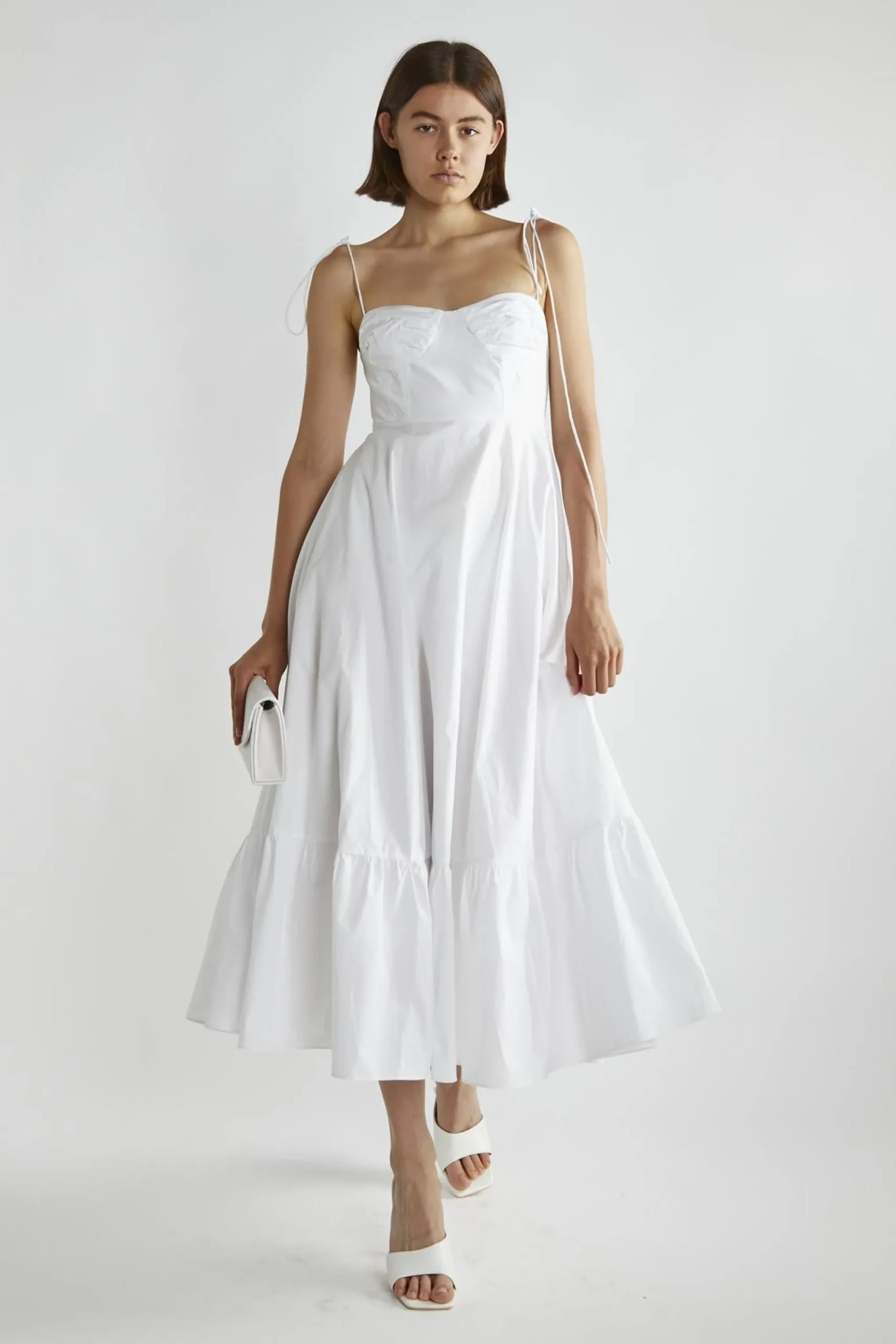 Glamorous Women’s White Scoop-Neck Midi-Dresses. Hey there, fashion lover! Let’s chat about this fabulous scoop-neck midi dress that’s about to become your new wardrobe MVP. The sleeveless design is perfect for those sunny days when you want to feel the warmth on your skin. That scoop neck? It’s like a gentle hug for your collarbone, adding a touch of elegance without trying too hard. And can we talk about those adjustable spaghetti straps? They’re a game-changer, letting you customize the fit to your heart’s content. This dress is like a chameleon – it can go from casual brunch to fancy dinner with just a change of accessories. The midi length is that sweet spot between flirty and sophisticated, making it versatile for so many occasions. Pair it with sneakers and a denim jacket for a laid-back look, or dress it up with some strappy heels and statement earrings for a night out. The fabric feels like a dream against your skin, so you’ll be comfortable all day (or night) long. Trust us, this scoop-neck wonder is going to have you feeling like a million bucks every time you put it on!