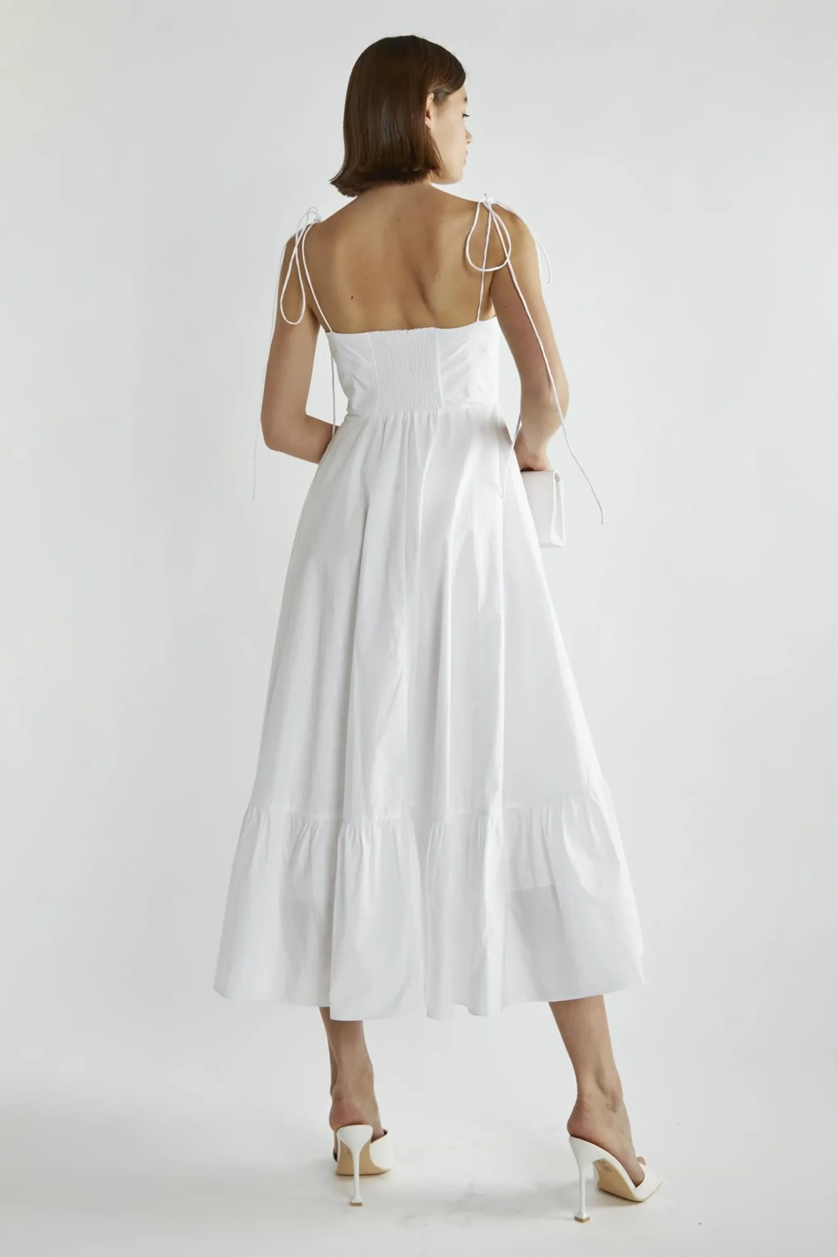 White Scoop-Neck Midi-Dresses
