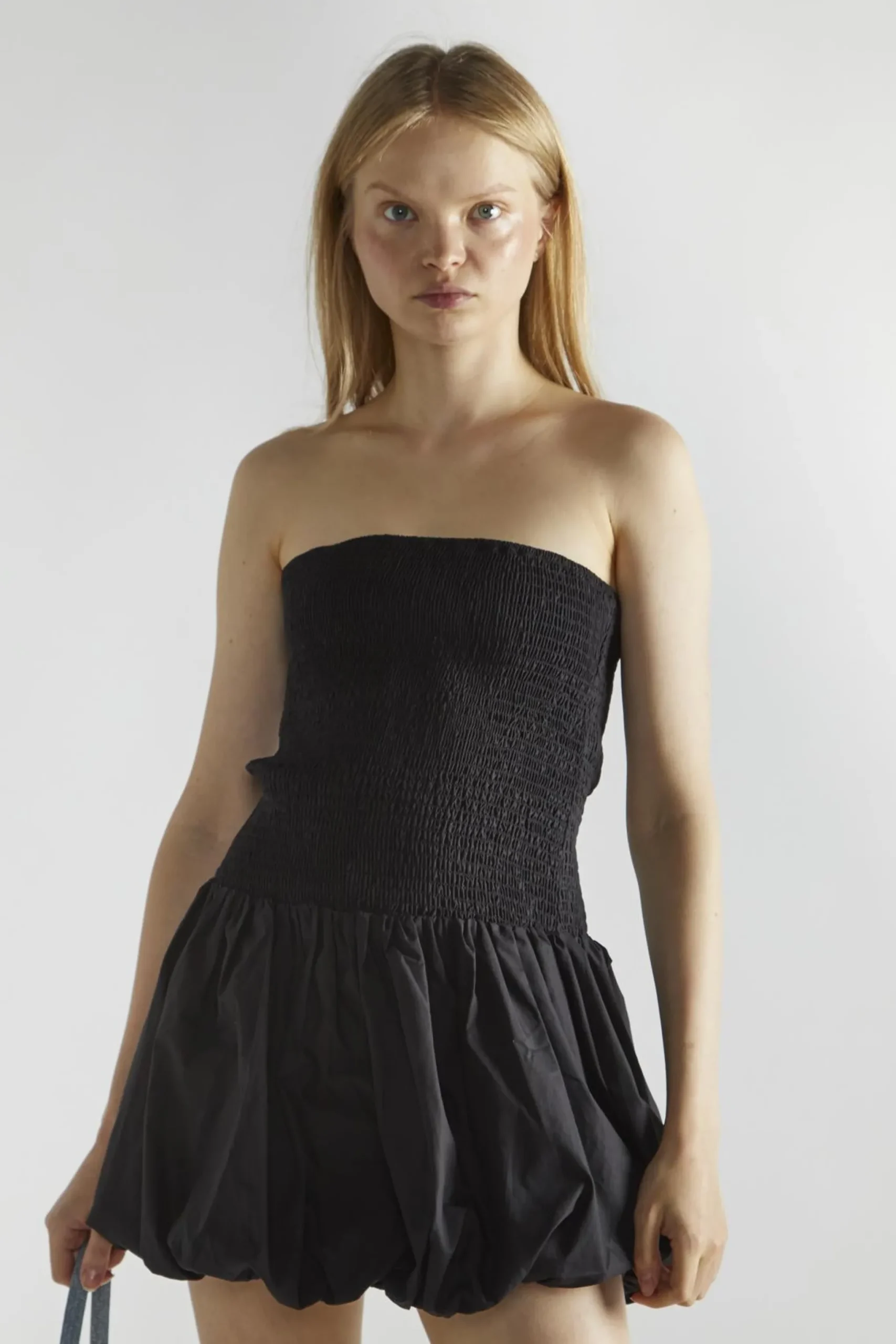 Glamorous Women’s Black Bandeau Shirred Mini-Dress. This bandeau-shirred mini dress is a showstopper that combines sleek style with a figure-hugging silhouette. The bodycon fit accentuates your curves, while the shirred fabric provides both comfort and a flattering texture. The strapless bandeau neckline adds a touch of allure, perfect for showcasing your favourite statement necklace or letting your shoulders take the spotlight. This dress is designed to make you feel confident and sexy, without sacrificing comfort. It’s versatile enough to transition from day to night – pair it with a denim jacket and sneakers for a casual lunch date, or glam it up with strappy heels and bold earrings for a night out dancing. The dark hue is slimming and timeless, making it a go-to piece for various occasions. This mini dress is all about effortless glamour – it’s the kind of piece that does the work for you, ensuring you look polished and put-together with minimal effort. It’s perfect for those moments when you want to feel like the best version of yourself, radiating confidence from the inside out.