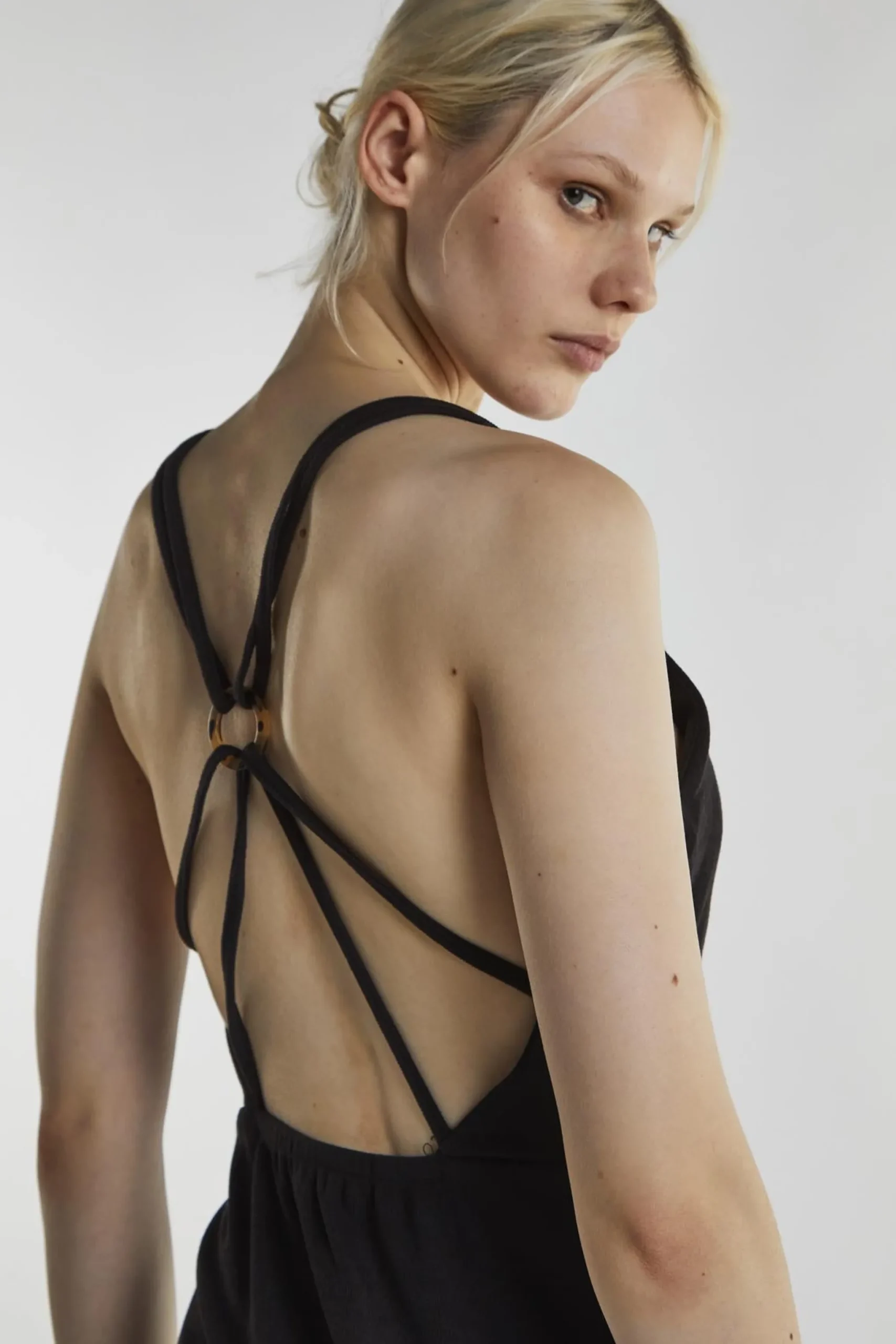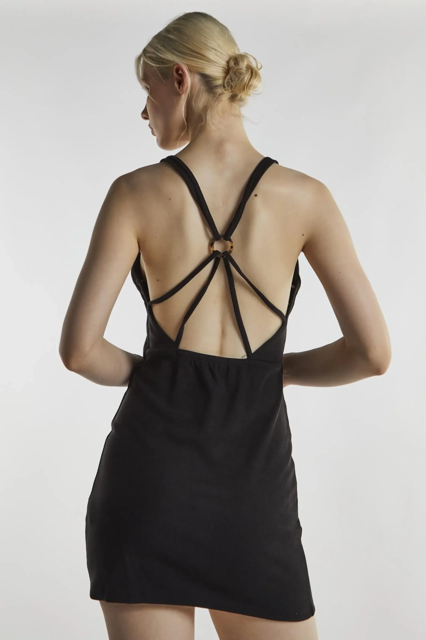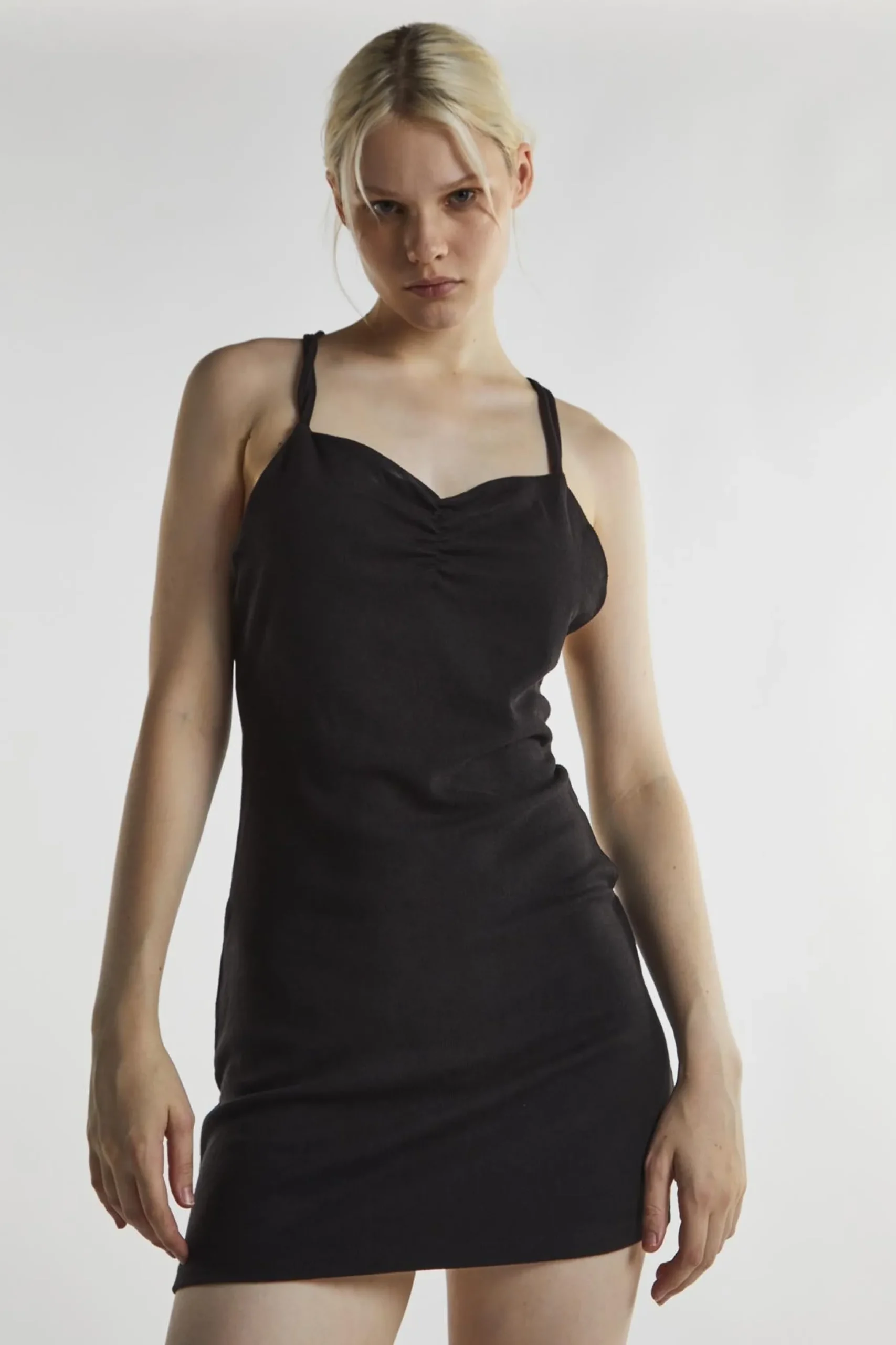 Glamorous Women’s Black Bodycon Mini-Dress. This black bodycon mini-dress is your go-to choice for a night out or a special occasion. It hugs your curves in all the right places, showing off your figure with confidence. The sleeveless design keeps you cool and comfortable, while the sweetheart neckline adds a touch of flirty charm. Turn heads as you walk away, thanks to the alluring open back that’s beautifully accented with tie-back detailing. This dress isn’t just about looks – it’s about feeling amazing in your own skin. Pair it with your favourite heels and statement earrings for a complete look that’s sure to impress. The versatile black colour makes it easy to accessorize, so you can make this dress uniquely yours every time you wear it. It’s the perfect blend of sexy and classy, ready to make you feel like the star of any event.