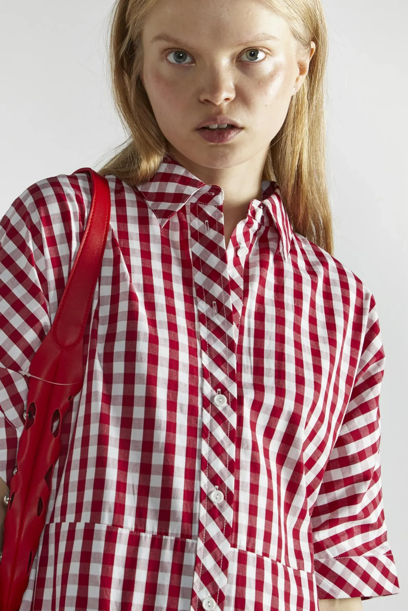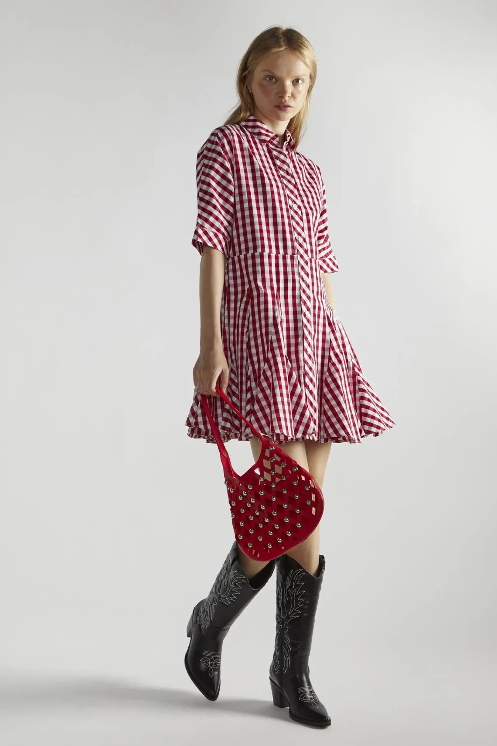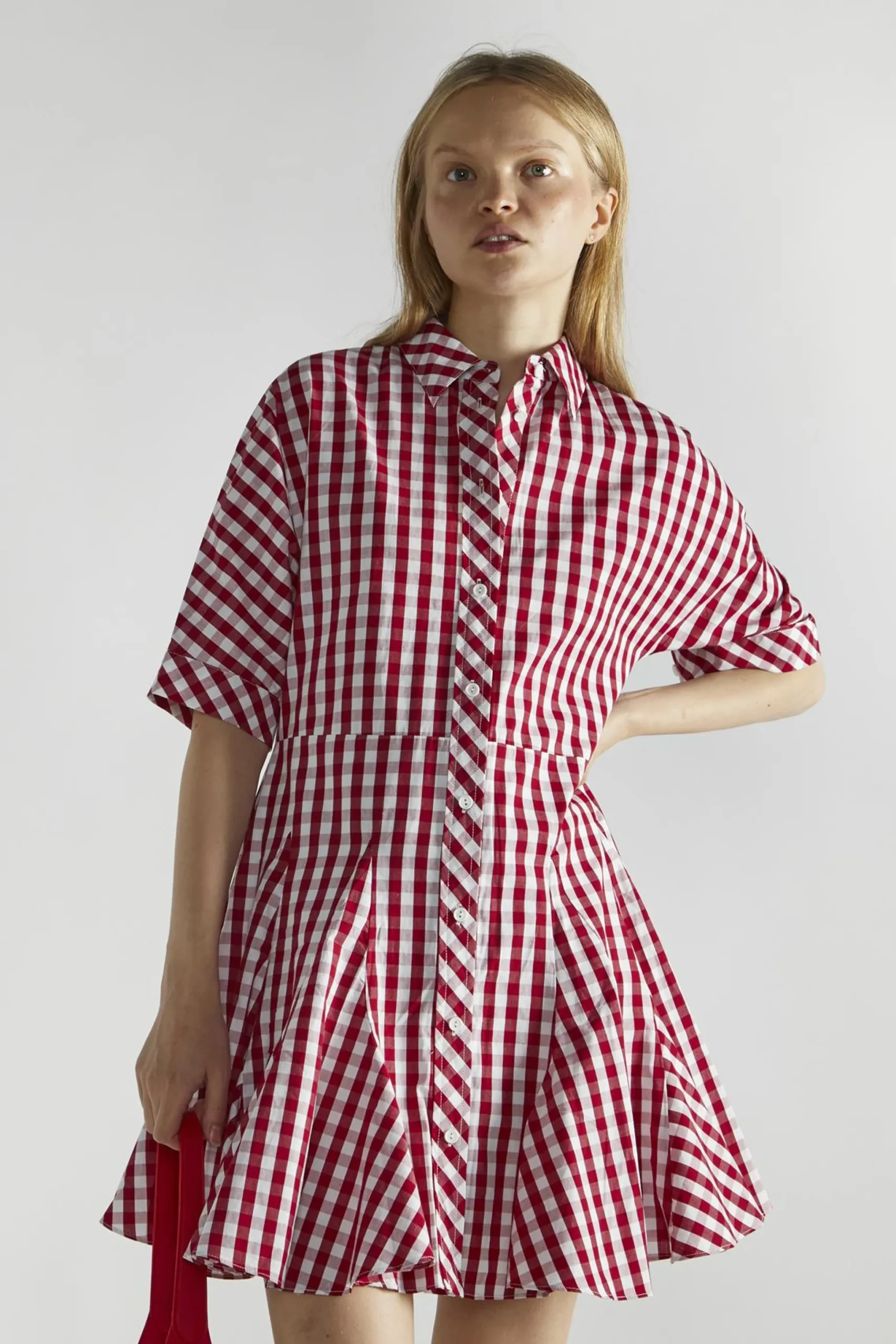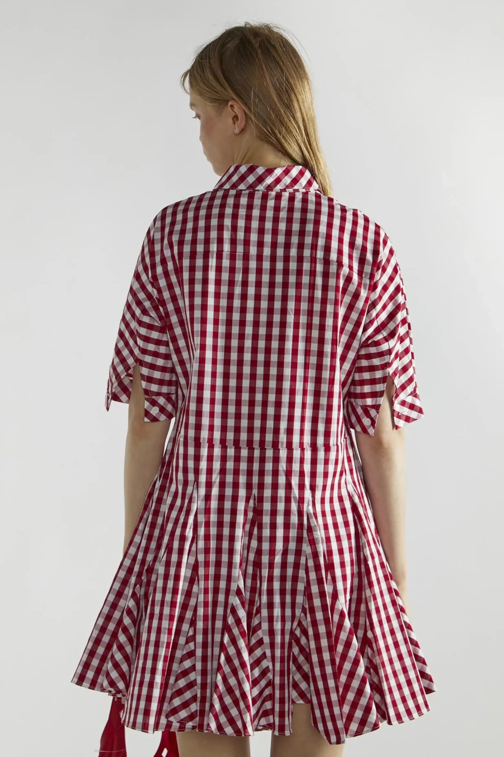 Cherry-Red-Gingham Button-Up- Mini-Dresses