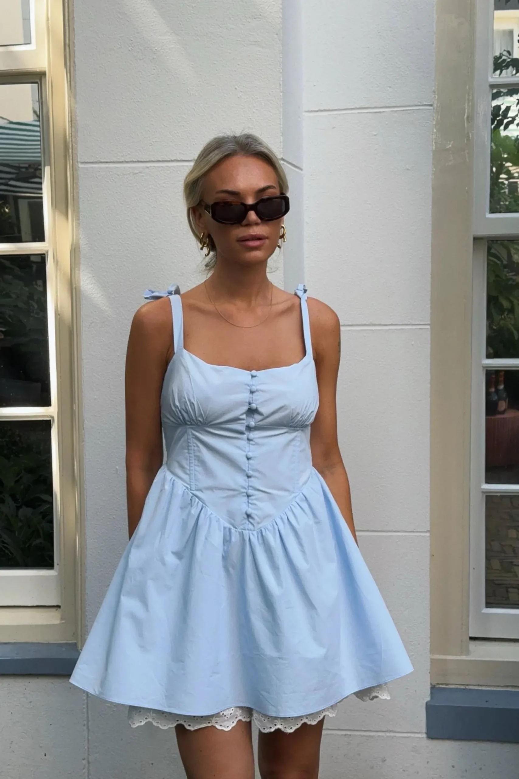 Collective the Label Women’s Louisa Women’s Light Blue Skater Mini-Dress. The Light Blue Louisa Skater Mini-Dress is a charming little number that’s sure to brighten up your wardrobe. This sleeveless beauty features a sweet square neckline, perfect for showing off a delicate necklace or your sun-kissed shoulders. The button-front detail adds a touch of vintage flair, while the lace trim detailing gives it a soft, romantic edge. A concealed zip fastening at the back ensures a smooth fit and easy dressing. The skater style is wonderfully flattering, nipping in at the waist before gently flaring out to create a lovely silhouette. It’s ideal for summer garden parties, casual brunches, or even as a stylish option for a day at the office. Pair it with white trainers for a relaxed look, or dress it up with wedge sandals and a floppy hat for a chic daytime ensemble. This versatile dress is bound to become a staple in your summer rotation.
