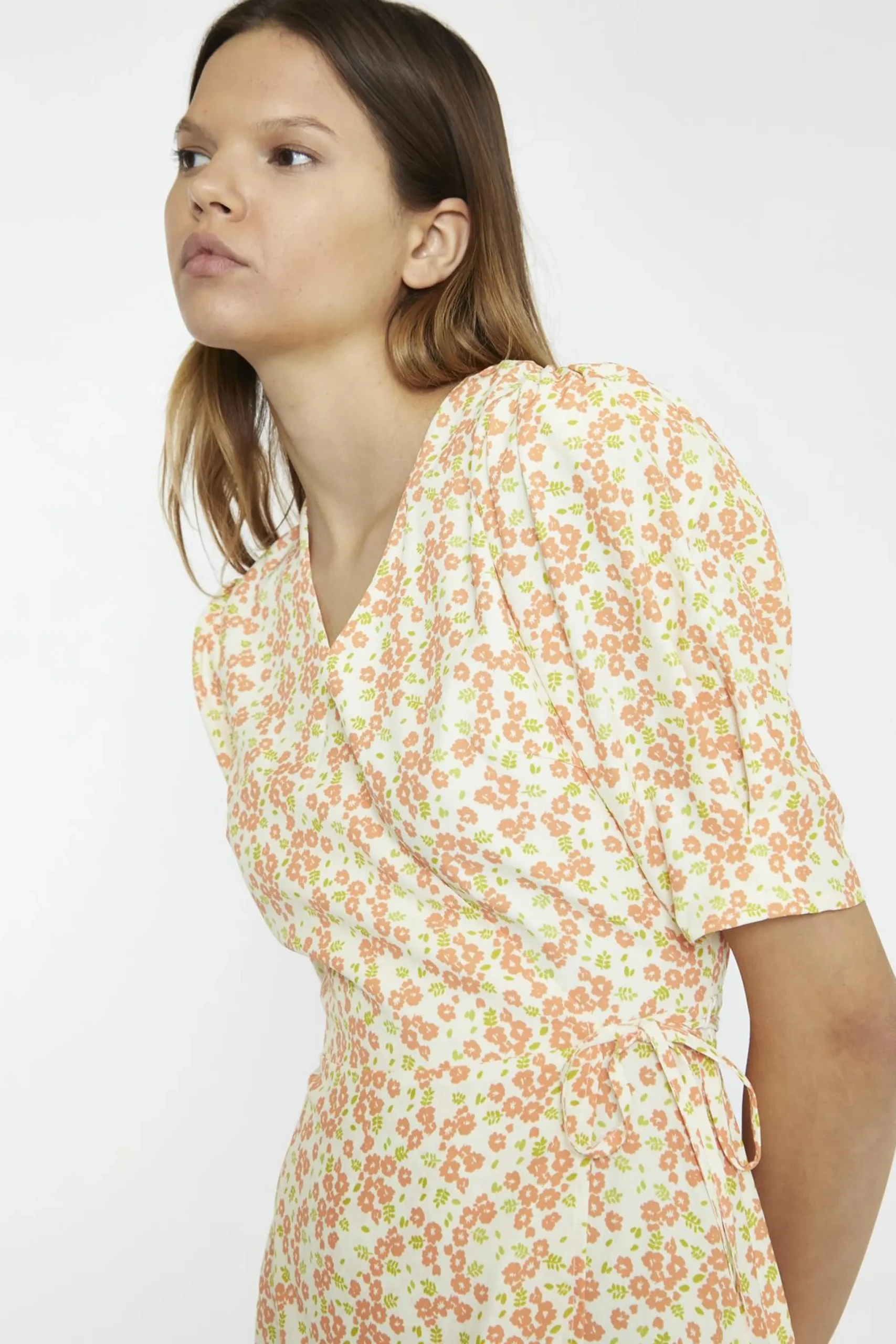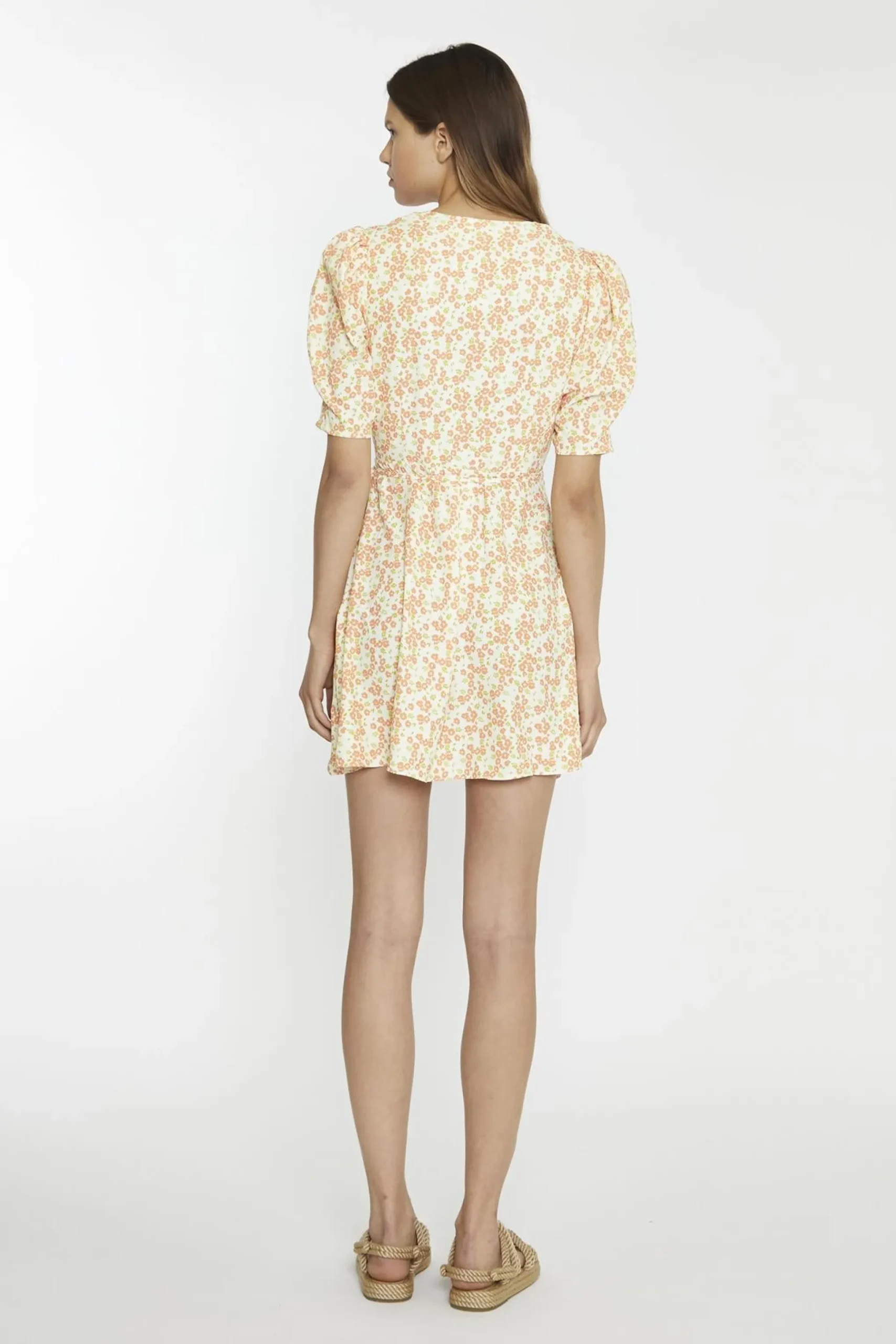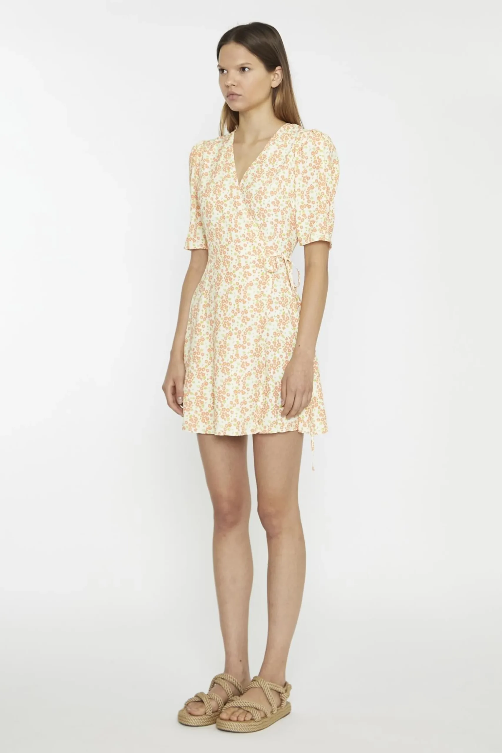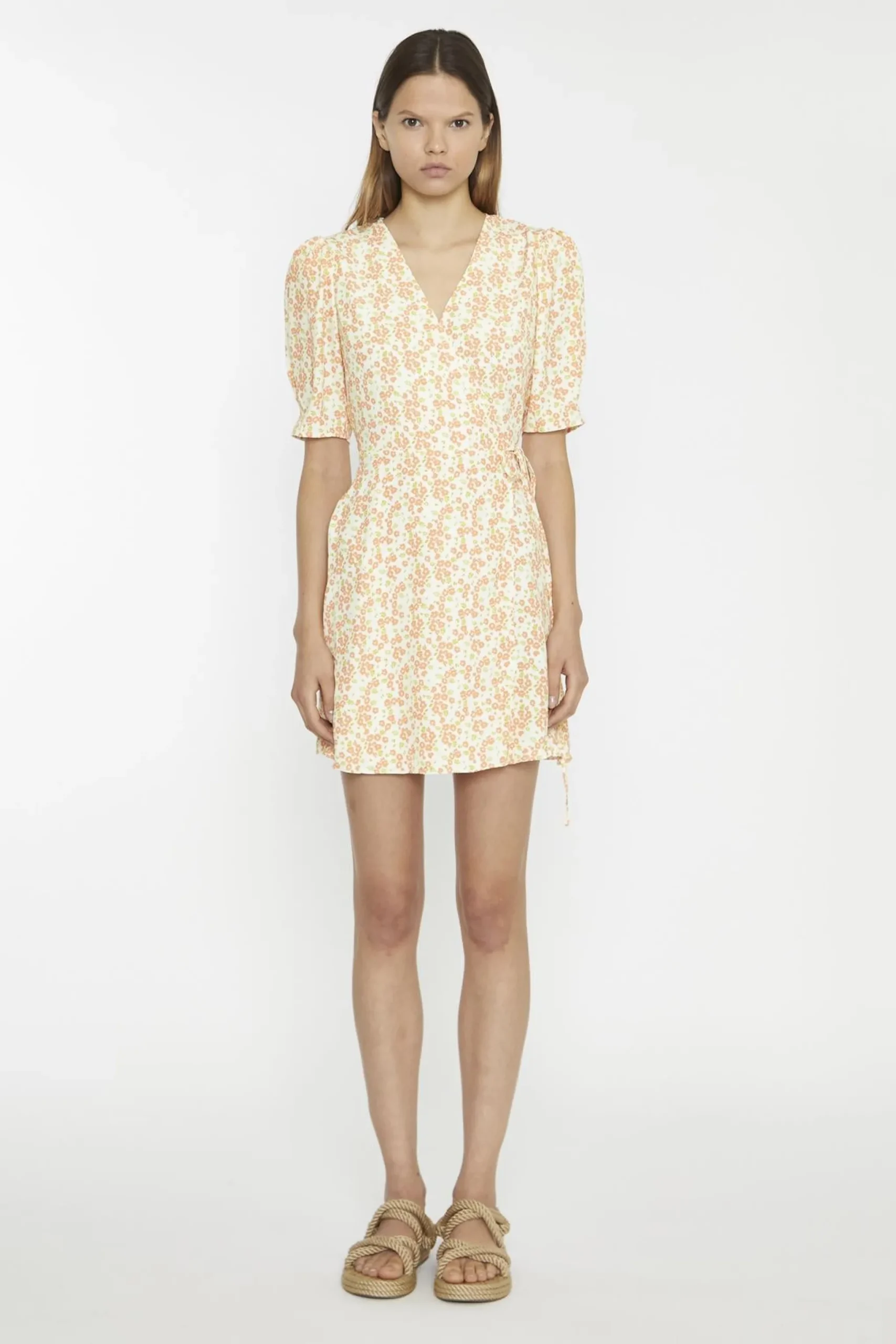Glamorous Women’s Muskmelon-Multi-Ditsy Wrap Mini-dress. Add a fresh and playful vibe to your wardrobe with this muskmelon multi-ditsy wrap mini dress. The wrap design flatters your figure by cinching at the waist, while the V-neckline creates a soft, feminine shape that’s easy to accessorize. Elbow-length statement sleeves bring a touch of flair, balancing the shorter hemline with just the right amount of coverage. The floral print adds a cheerful and lively feel, making this dress perfect for everything from casual outings to special occasions. Pair it with sandals and a woven bag for a relaxed daytime look, or dress it up with heels and delicate jewellery for an evening event. The lightweight fabric ensures you stay comfortable while looking effortlessly stylish. This dress is all about combining charm and versatility, giving you a piece that’s as fun to wear as it is easy to style.