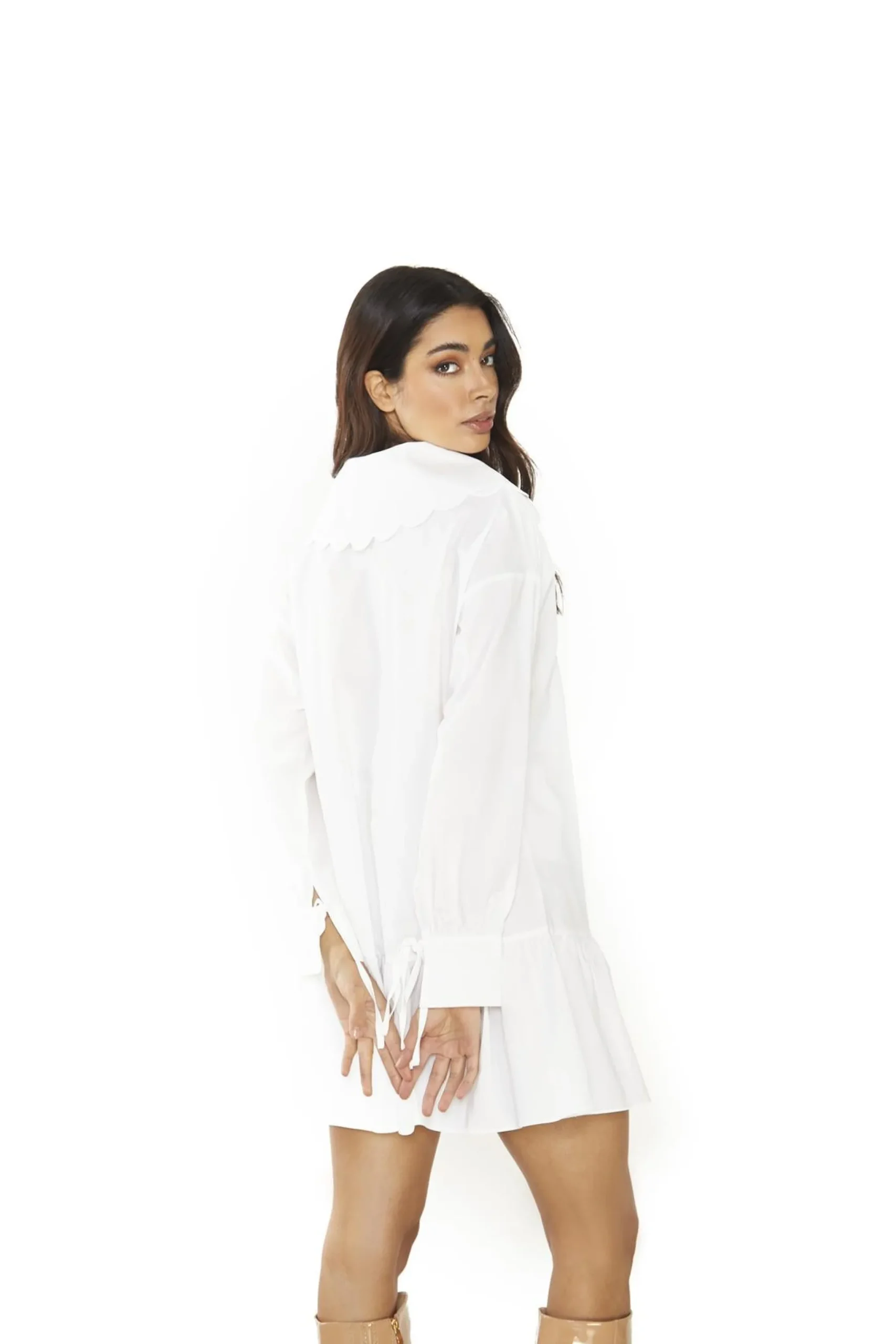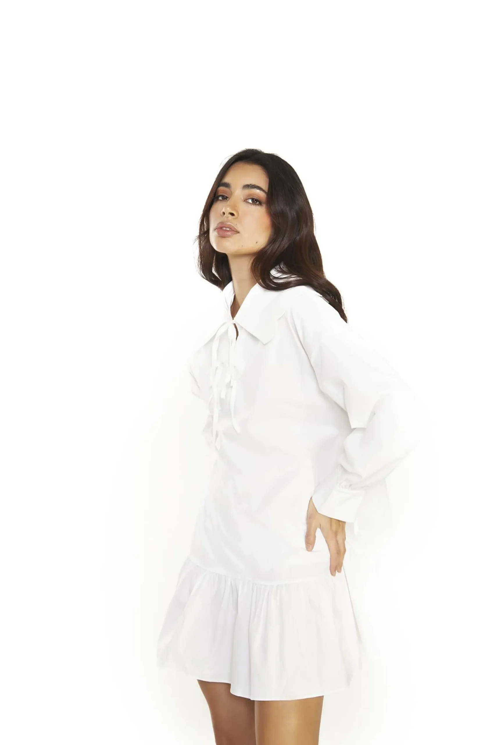 Glamorous Women’s Off White Shirt Mini-Dress. This shirt mini-dress is a delightful blend of classic charm and modern flair, perfect for those who love to mix comfort with style. The pleated detailing adds a touch of whimsy and movement, making this piece stand out from your average shirt dress. Long sleeves offer versatility, easily rolling up for a more casual look or keeping you cozy when the breeze picks up. The tie detailing allows you to cinch the waist just how you like it, creating a flattering silhouette that’s uniquely yours. The collared design brings a crisp, polished touch, making this dress suitable for both work and play. It’s the kind of dress that does the work for you – throw it on with sneakers for a casual brunch date, or dress it up with heels for a night out. The mini length adds a flirty touch without going overboard. This dress isn’t just clothing; it’s a mood-lifter that’ll have you feeling put-together and confident, no matter the occasion. So go ahead, make this your new go-to piece – your wardrobe (and your style game) will thank you.