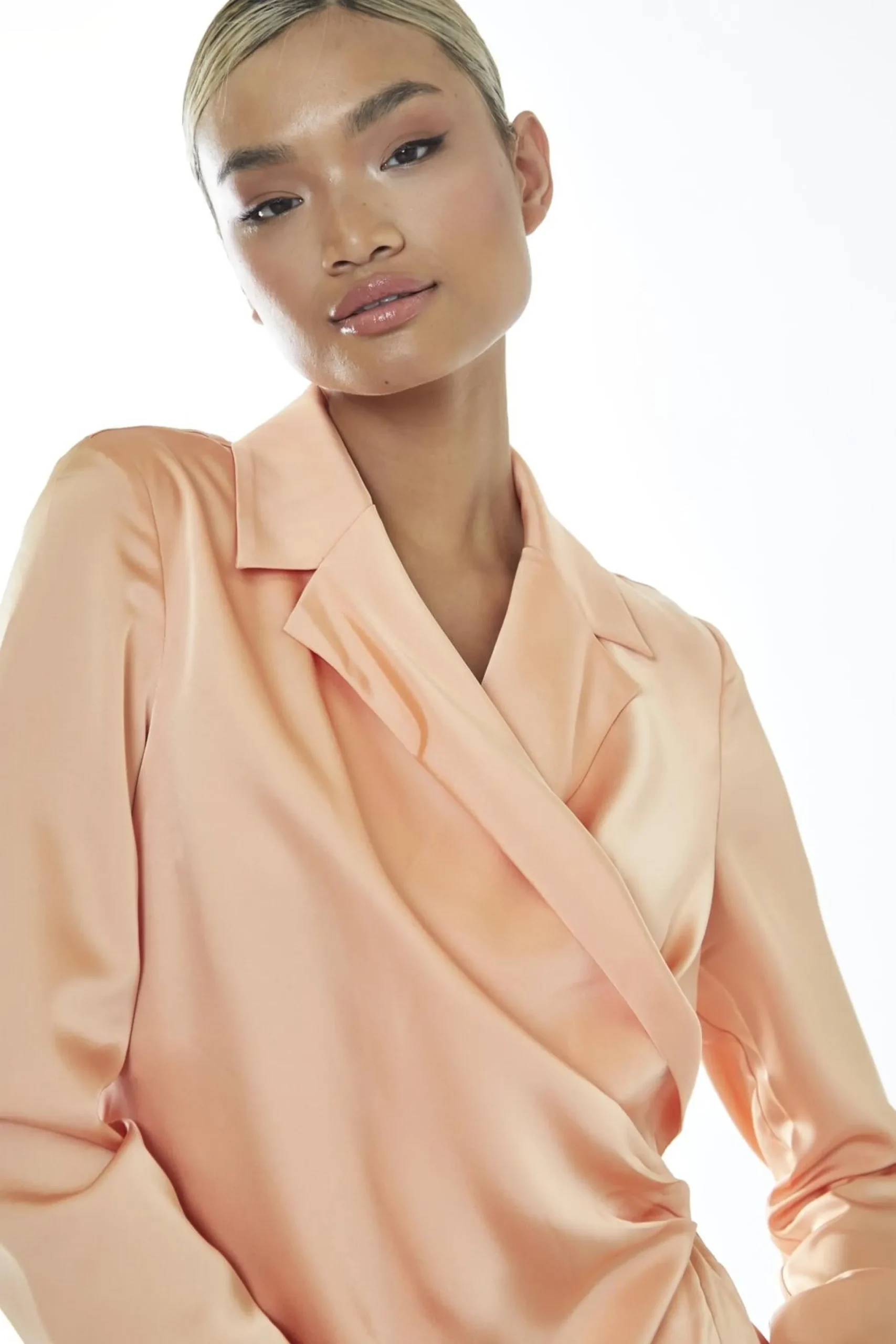 Glamorous Studio Women’s Peach Wrap Shirt Mini-Dress. This charming mini dress is a perfect blend of comfort and style, designed to make you feel fantastic from morning to night. The wrap-shirt design creates a flattering silhouette that hugs your curves in all the right places, while the collared neckline adds a touch of classic elegance. Long sleeves offer versatility, making this dress suitable for various seasons and occasions. The modest style ensures you feel confident and covered, without sacrificing on fashion-forward appeal. It’s the kind of dress that effortlessly transitions from day to night – pair it with flats for a casual office look, or dress it up with heels for dinner with friends. The soft, flowing fabric moves with you, ensuring you feel at ease all day long. This mini dress is a true wardrobe hero, ready to become your go-to choice for those days when you want to look put-together without any fuss. It’s like wearing a hug – comfortable, reassuring, and always stylish.