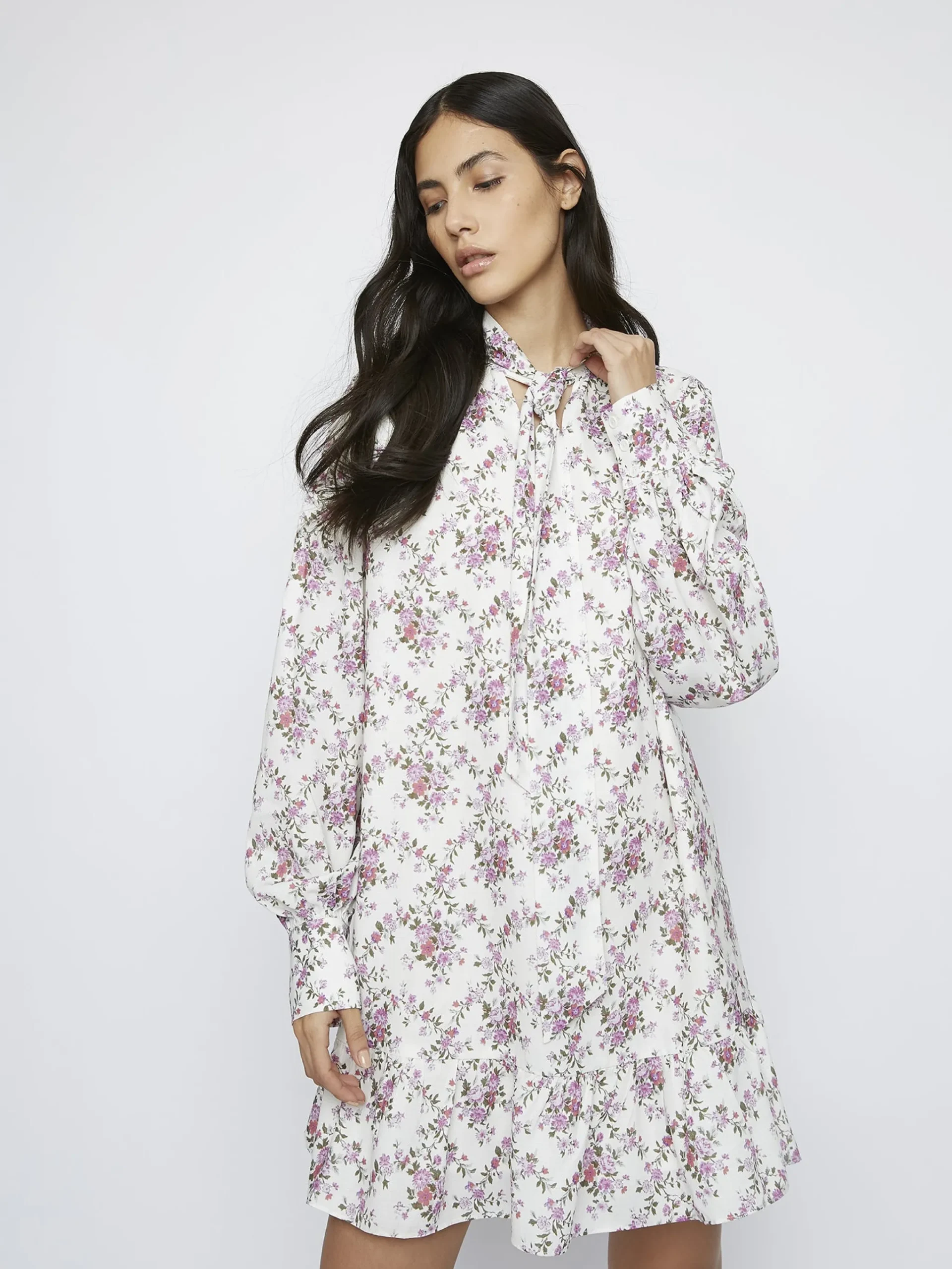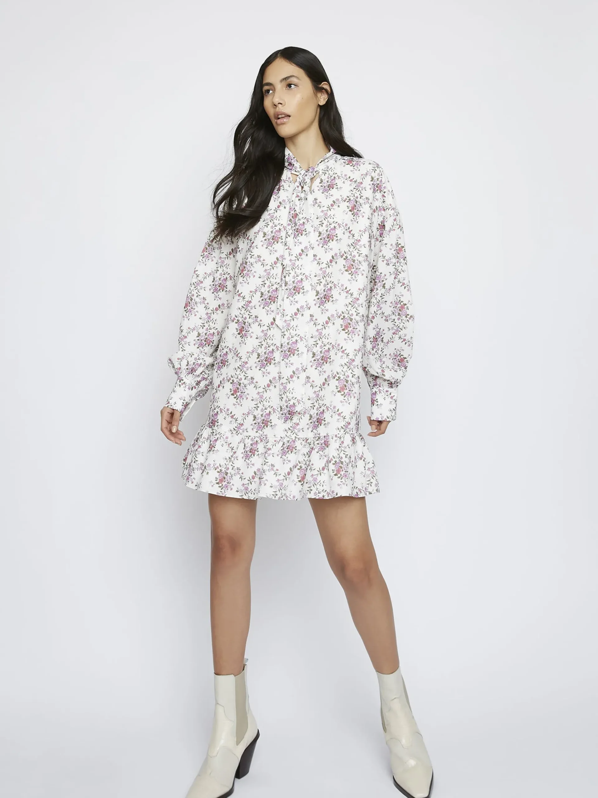 Glamorous Women’s Romantic Floral Mini Dress. When in doubt, opt for our florals. This long sleeve romantic floral mini dress featuring a tie neck detailing is a style worth having in your wardrobe this season. Pair with boots for the daytime and heels for the evening!