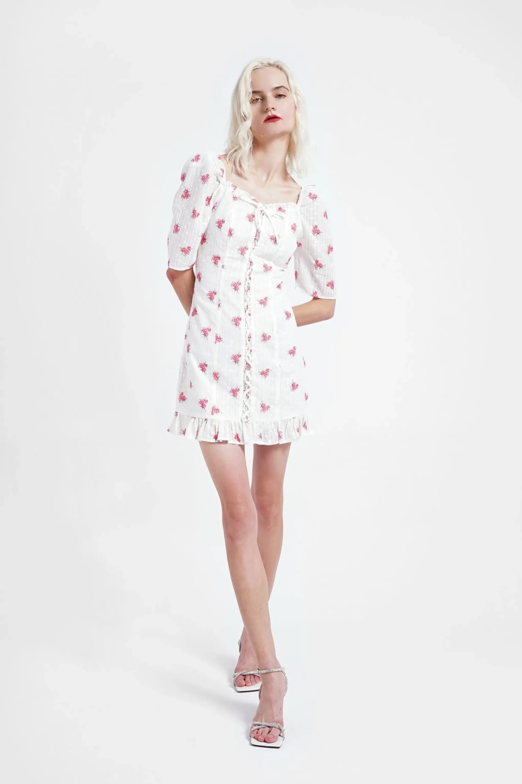 Glamorous Women’s Rose Broderie Ruffle Mini-Dress. This dreamy mini dress is a total celebration of feminine charm, bringing a touch of romantic magic to your wardrobe. The delicate broderie fabric creates a soft, ethereal look that feels like you’re wearing a work of art. 3/4 length sleeves offer the perfect amount of coverage, making it versatile for different seasons and occasions. The tie front detailing adds a playful twist, allowing you to adjust the fit and create a flattering silhouette that moves with you. Intricate pleated detailing adds texture and depth, giving the dress a sense of movement that’s perfect for twirling and dancing. The floral print dances across the fabric, creating a whimsical vibe that’s sure to brighten your day and spark joy wherever you go. This dress is a true wardrobe hero – pair it with sandals for a casual daytime look, or dress it up with heels for a night out with friends. The soft, lightweight fabric ensures you feel comfortable and confident, making this mini dress the kind of piece that makes you feel like the most beautiful version of yourself.