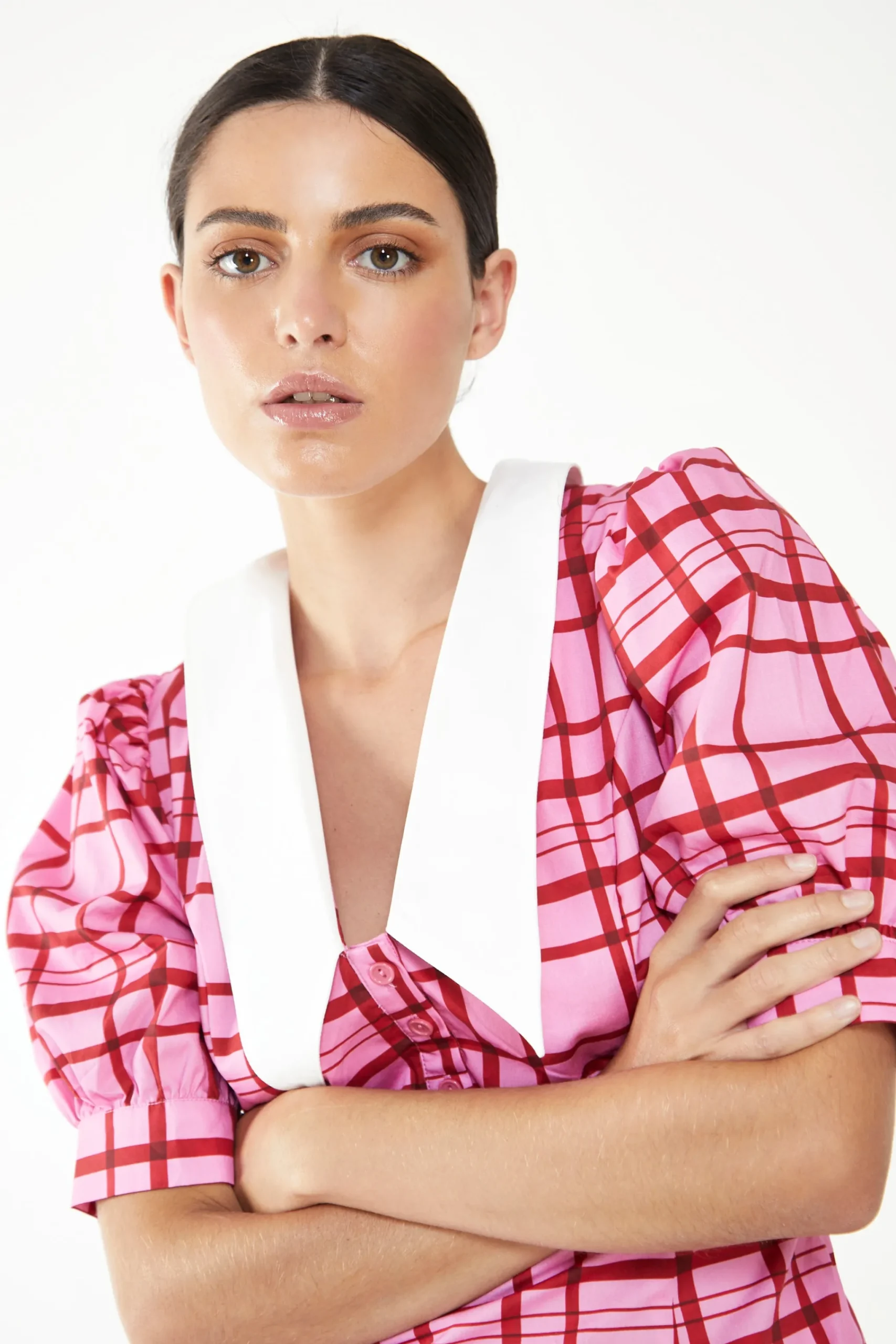 Be the first to review “Glamorous Mini Dresses|Mini Dresses|Short Puff Sleeve Pink Red Grid Check Mini Dress with Collar –” Cancel reply