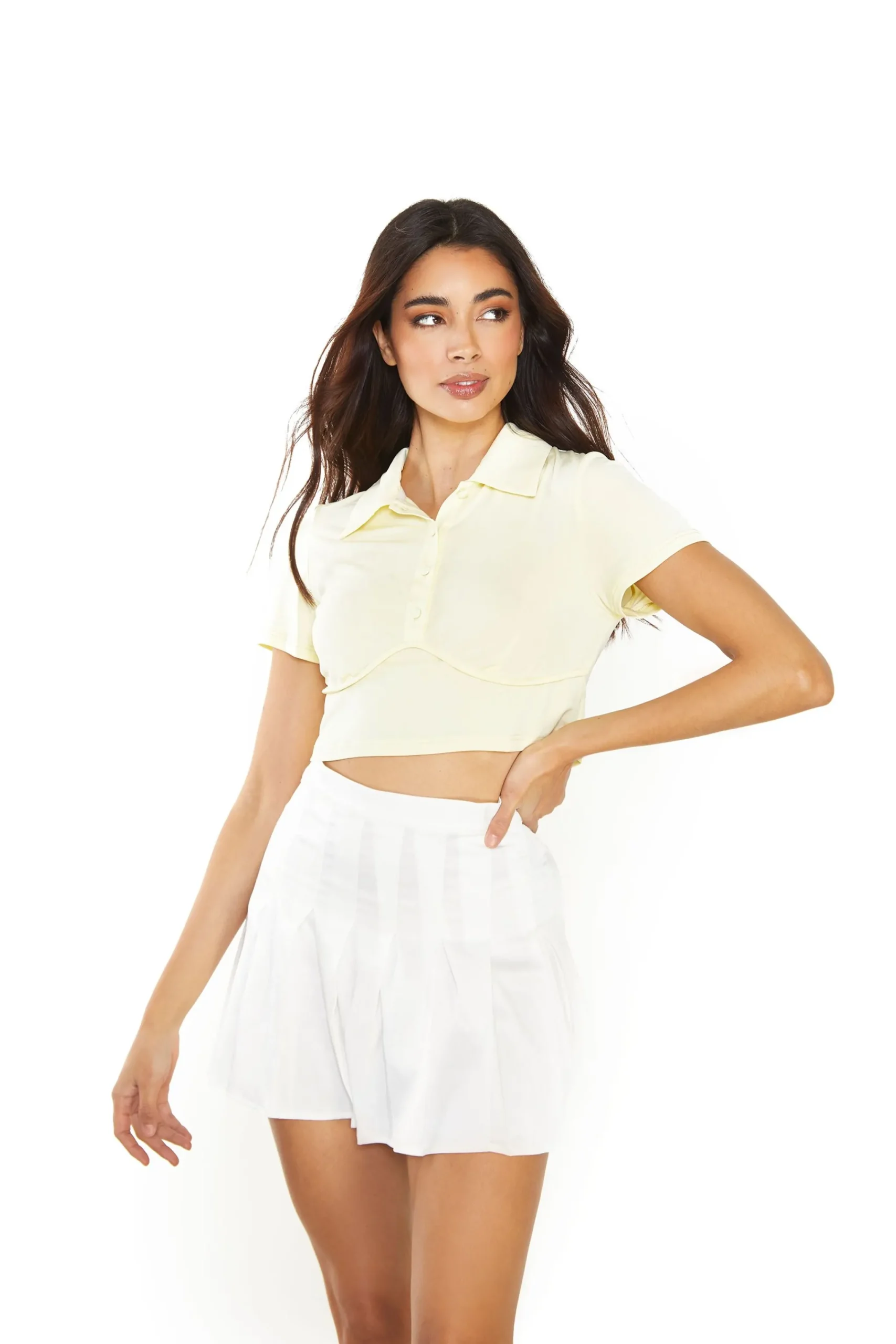 Glamorous womens Off White Pleated Mini Skirt. This mini skirt is perfect for your wardrobe this season. Featuring a pleated finish, flattering fit and luxe finish this mini skirt is the perfect fashion forward fit for you. Pair with a crop top and white boots for the perfect on trend look.