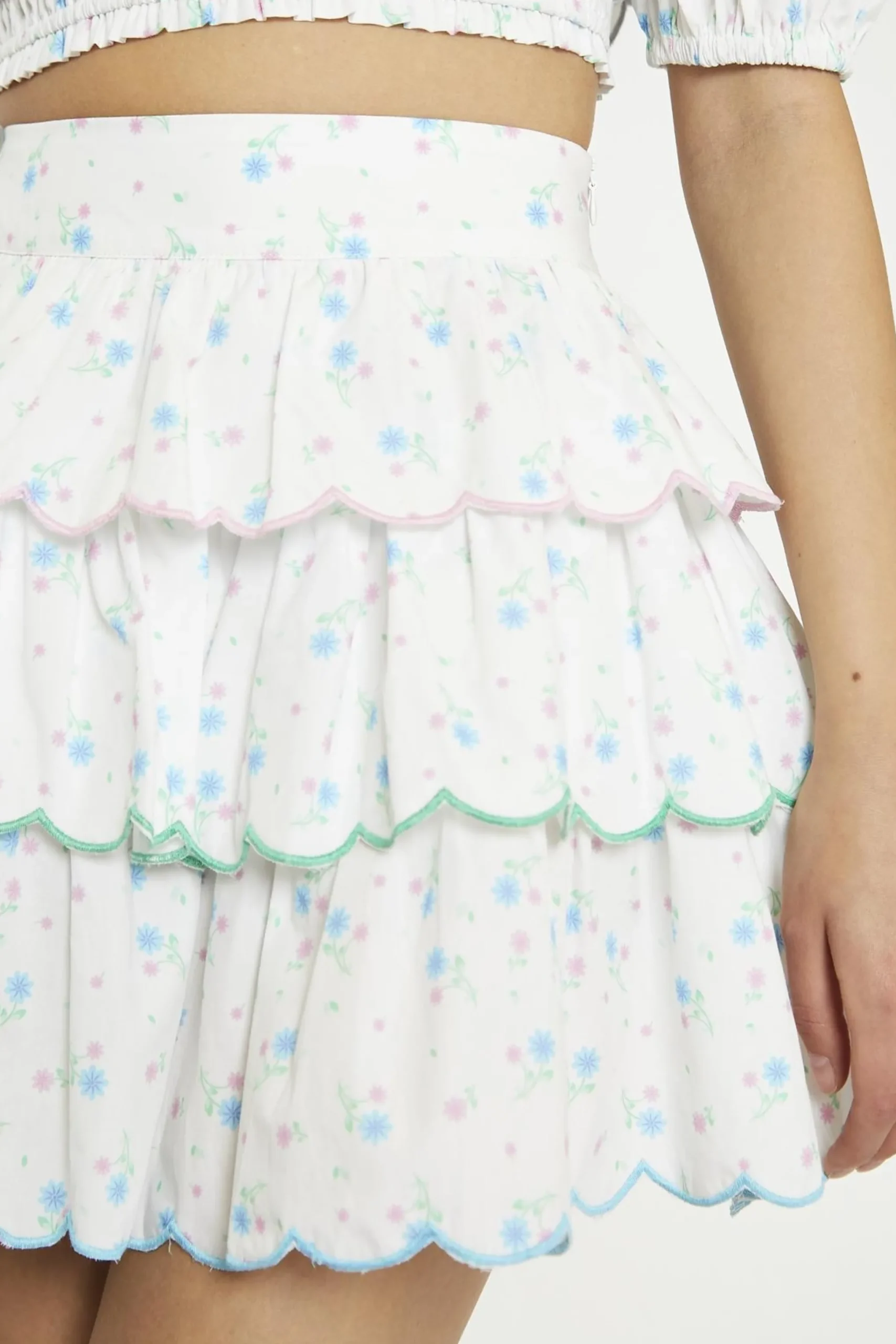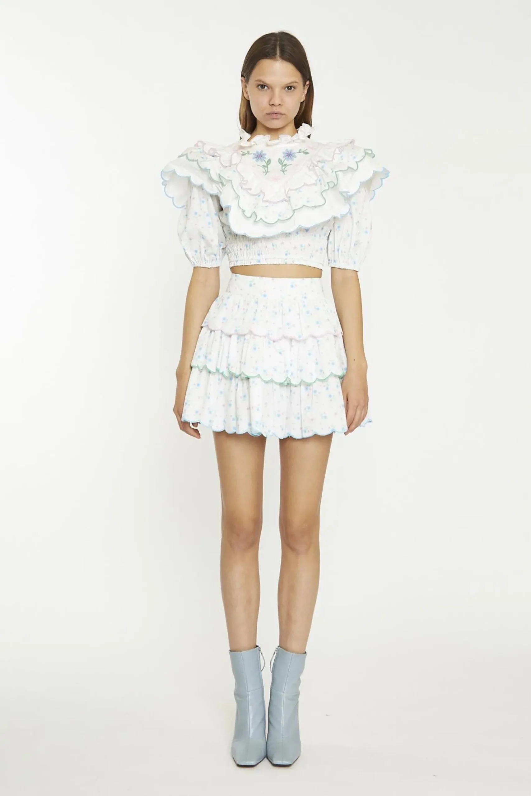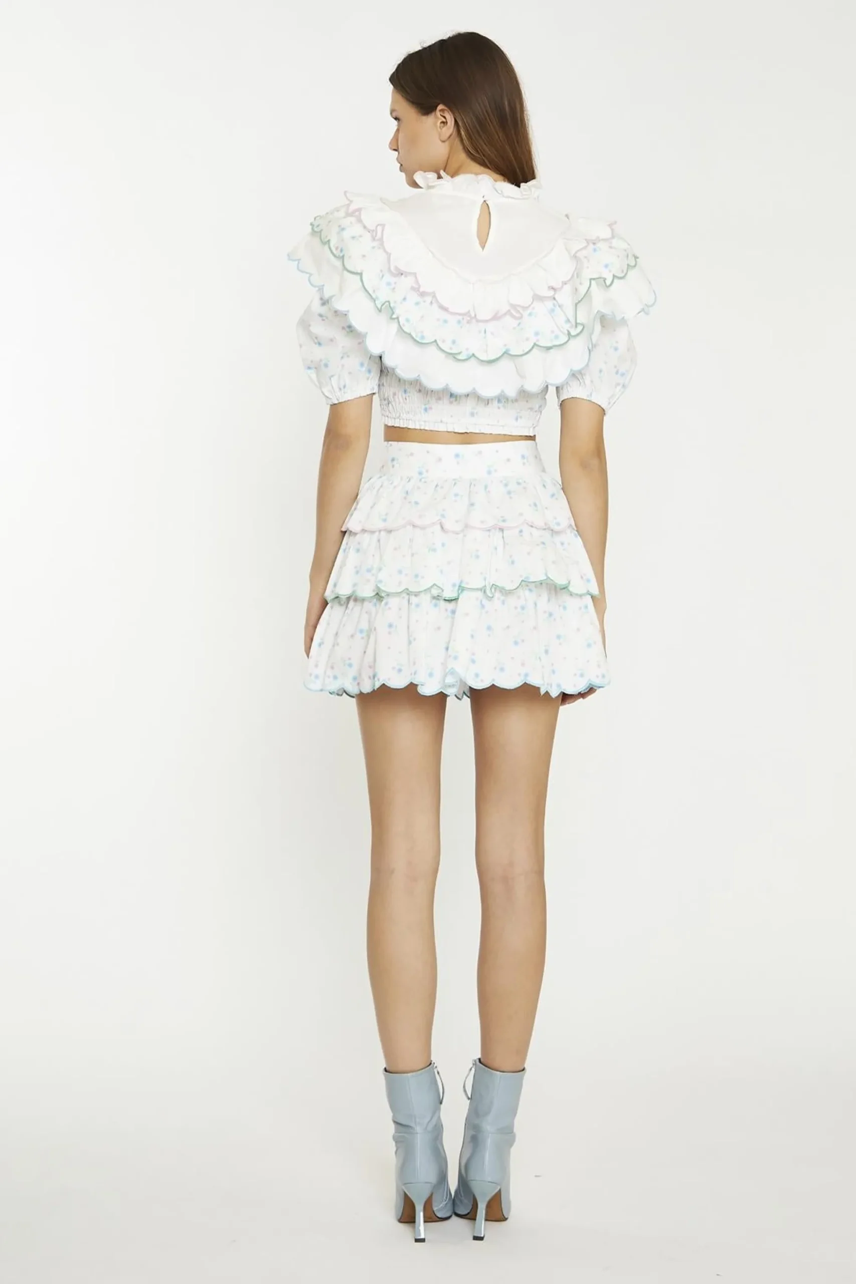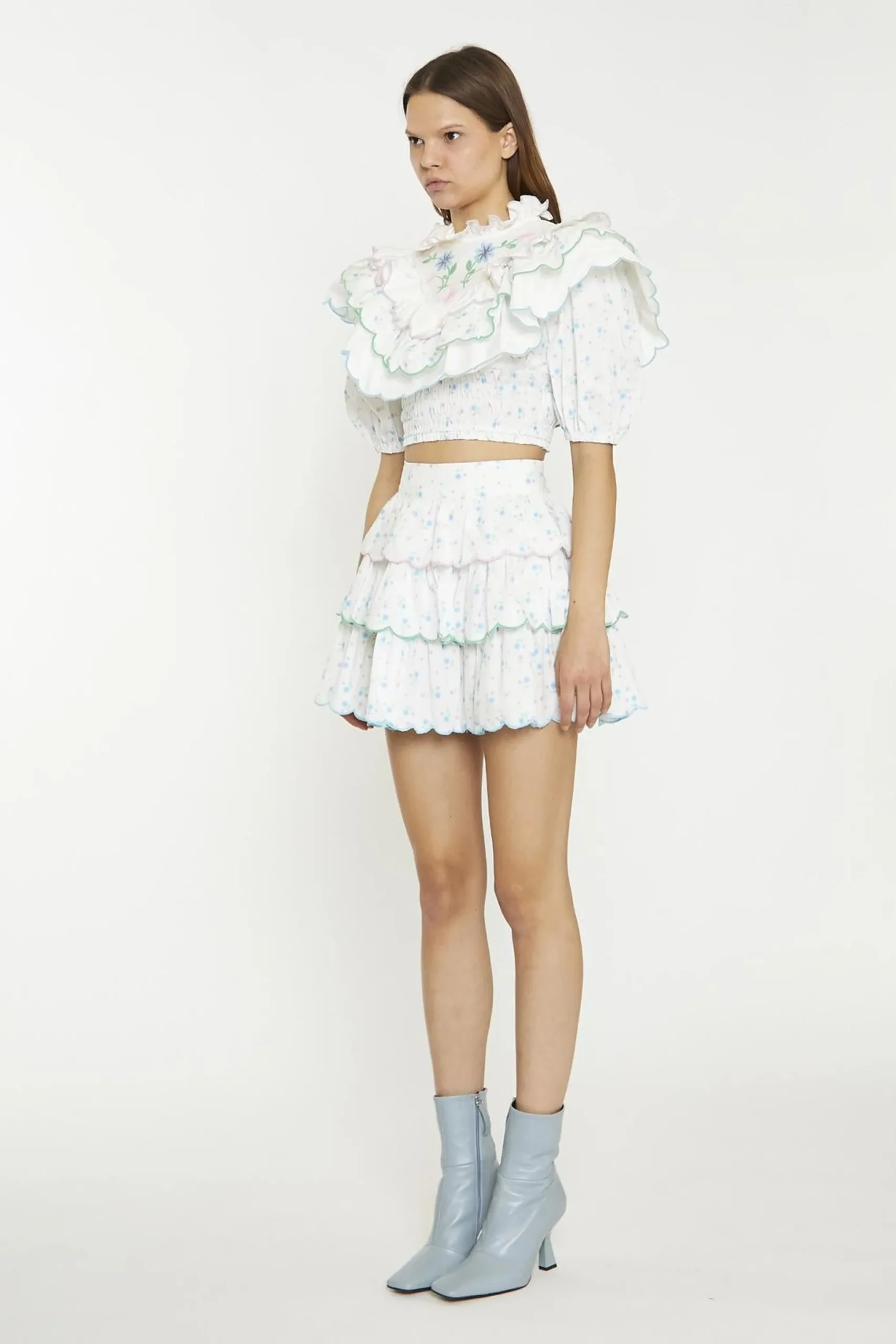 Glamorous Women’s White Blue Pink Ditsy Tiered Mini-Skirt. This white, blue, and pink ditsy tiered mini-skirt is a playful addition to your summer wardrobe. The delicate floral print brings a touch of whimsy, while the tiered layers add movement and texture to the design. Each ruffle catches the breeze, creating a flirty and fun silhouette that’s perfect for warm days. The mini length shows off your legs and pairs beautifully with sandals or sneakers. For a coordinated look, team it with the matching top, or mix it up with a solid colour tee or tank. The lightweight fabric makes it comfortable for all-day wear, whether you’re strolling through a farmers market or enjoying a picnic in the park. This skirt is an easy way to add a dash of charm to your outfit.