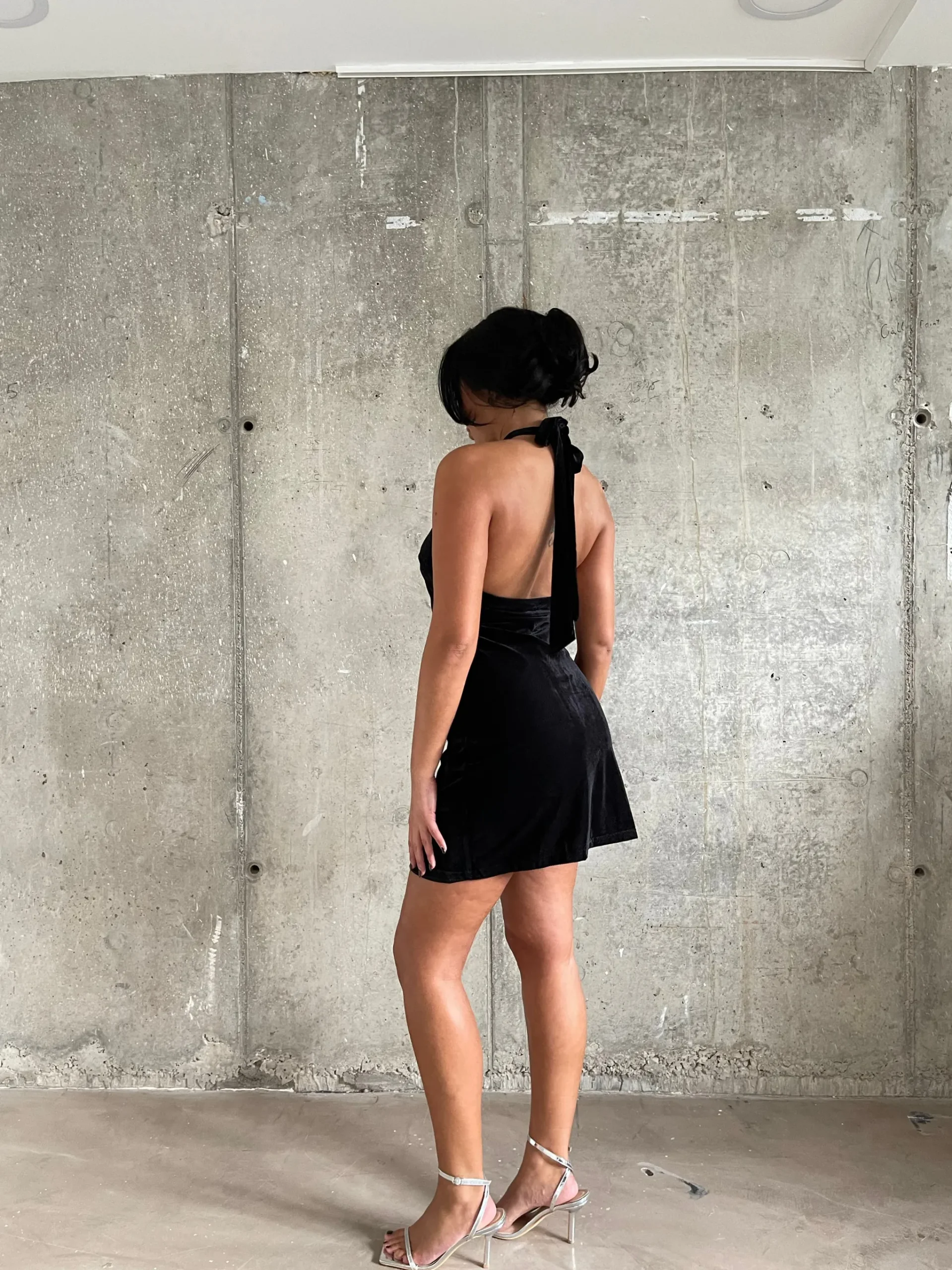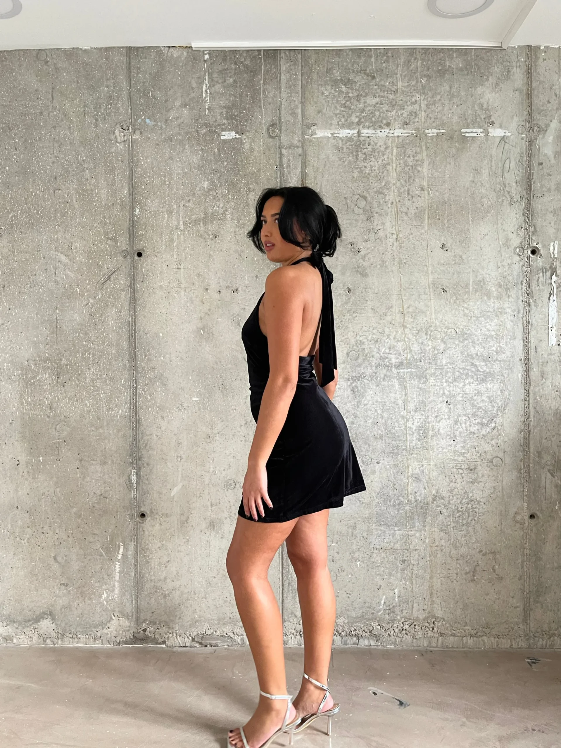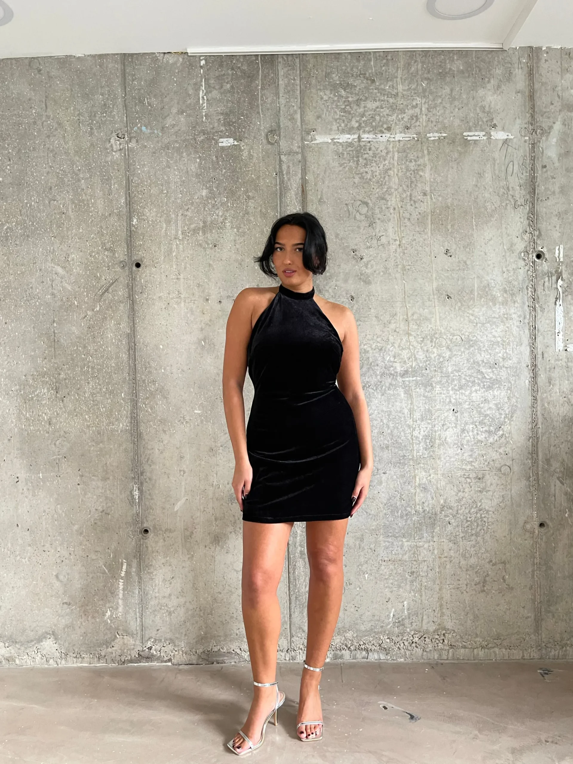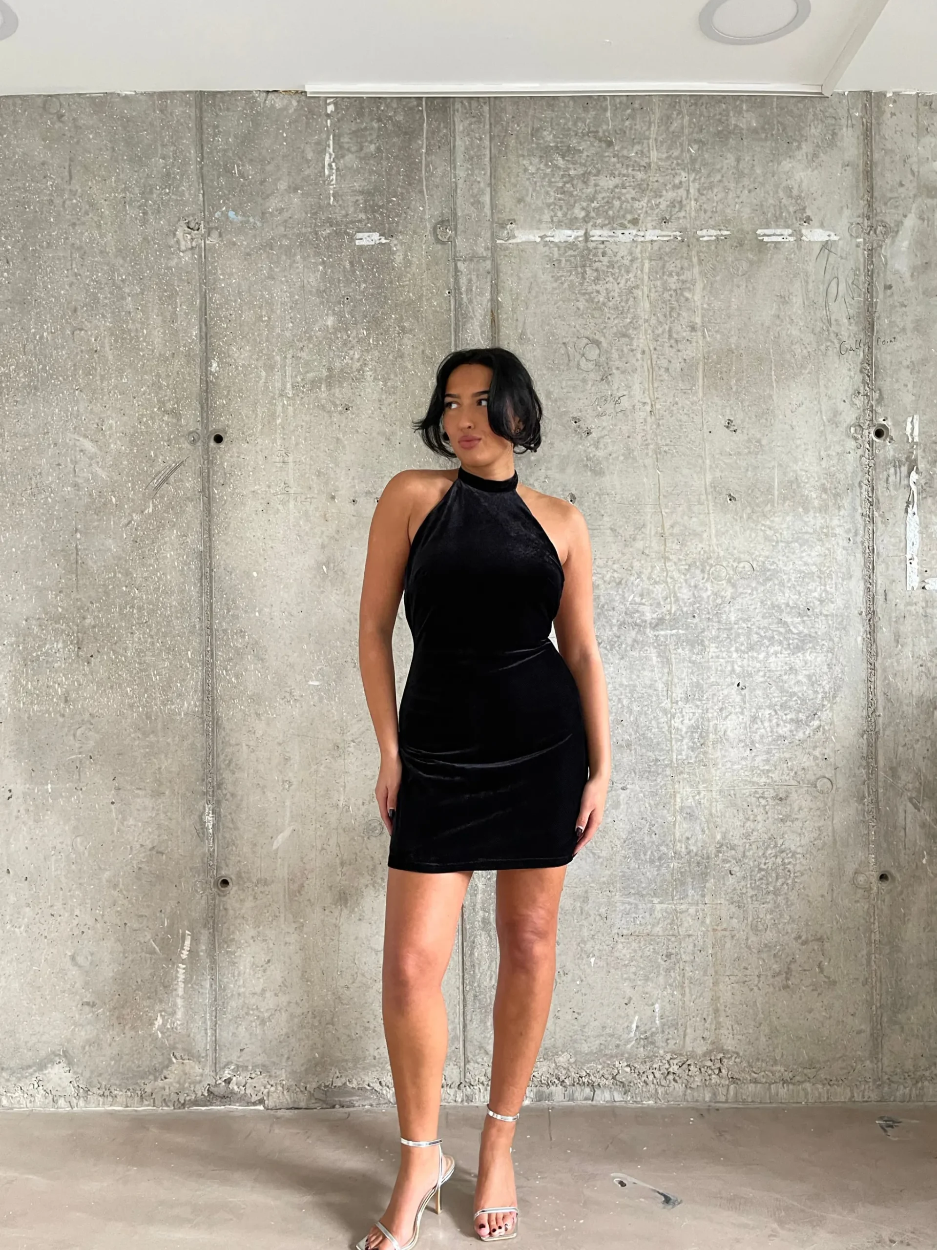 Glamorous Women’s Black Rib-Velvet Halterneck Mini-Dress. Meet your new go-to for effortless glamour: our Black Rib-Velvet Halterneck Mini-Dress. This little number combines comfort with head-turning style, perfect for those nights when you want to feel both cozy and confident. The rich, rib velvet fabric hugs your curves in all the right places, creating a sleek bodycon silhouette that’s sure to impress. The halterneck design adds a touch of retro charm while showing off your shoulders and back. With its mini length, this dress is ideal for dancing the night away or making a statement at your next dinner party. Pair it with strappy heels and statement earrings for a classic look, or throw on a leather jacket and ankle boots for an edgy twist. This versatile piece is ready to become the star of your wardrobe, no matter how you choose to style it.