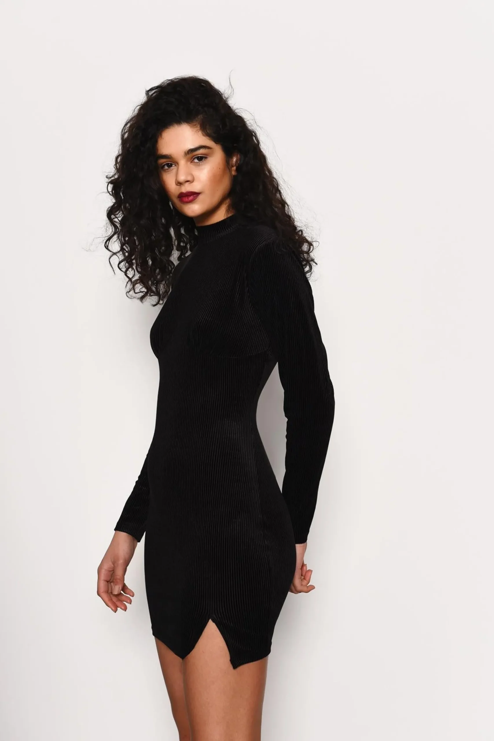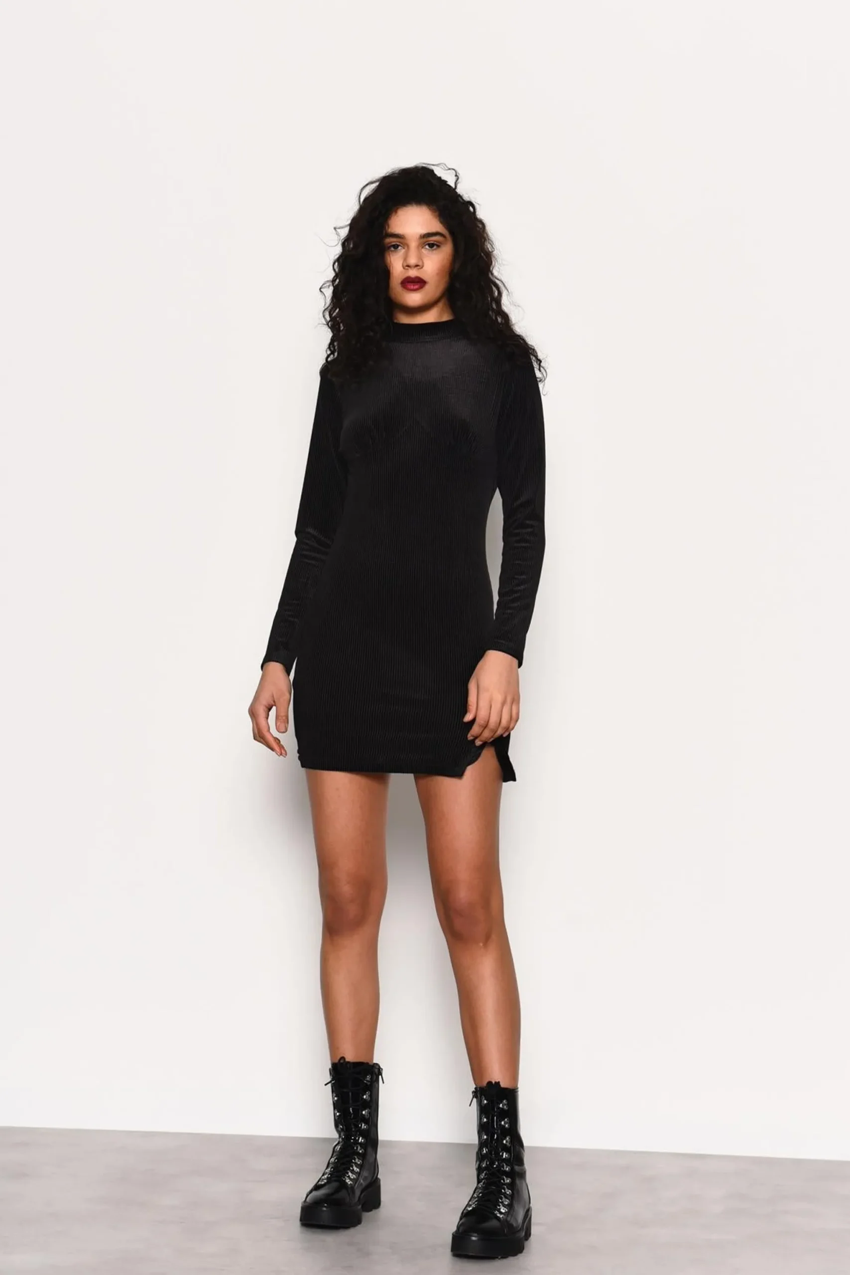 Glamorous Women’s Black Velvet-Rib High-Neck Mini-Dress. This cozy black velvet rib high neck mini-dress is perfect for those chilly evenings when you want to feel both snug and stylish. The soft, touchable fabric hugs your curves in all the right places, while the high neck adds a touch of elegance and warmth. A front side split gives you freedom of movement and adds a flirty flair to your look. The dress’s velvet finish catches the light beautifully, giving you a subtle glow as you move. For easy wear, there’s a convenient neck fastening that lets you slip it on and off without a fuss. This versatile piece can be dressed up with heels and statement jewellery for a night out, or paired with ankle boots and a leather jacket for a more casual vibe. It’s a go-to dress that’ll have you feeling confident and comfortable, no matter the occasion.