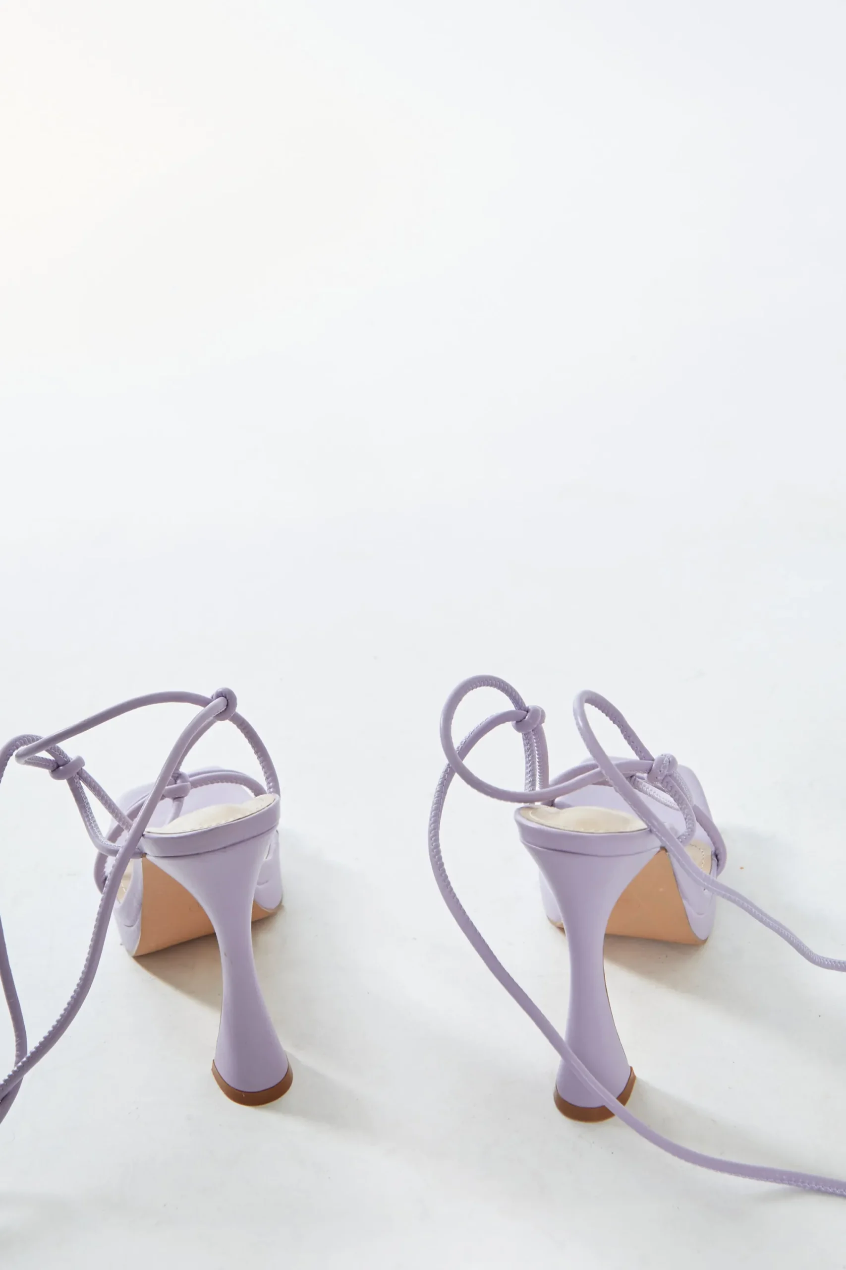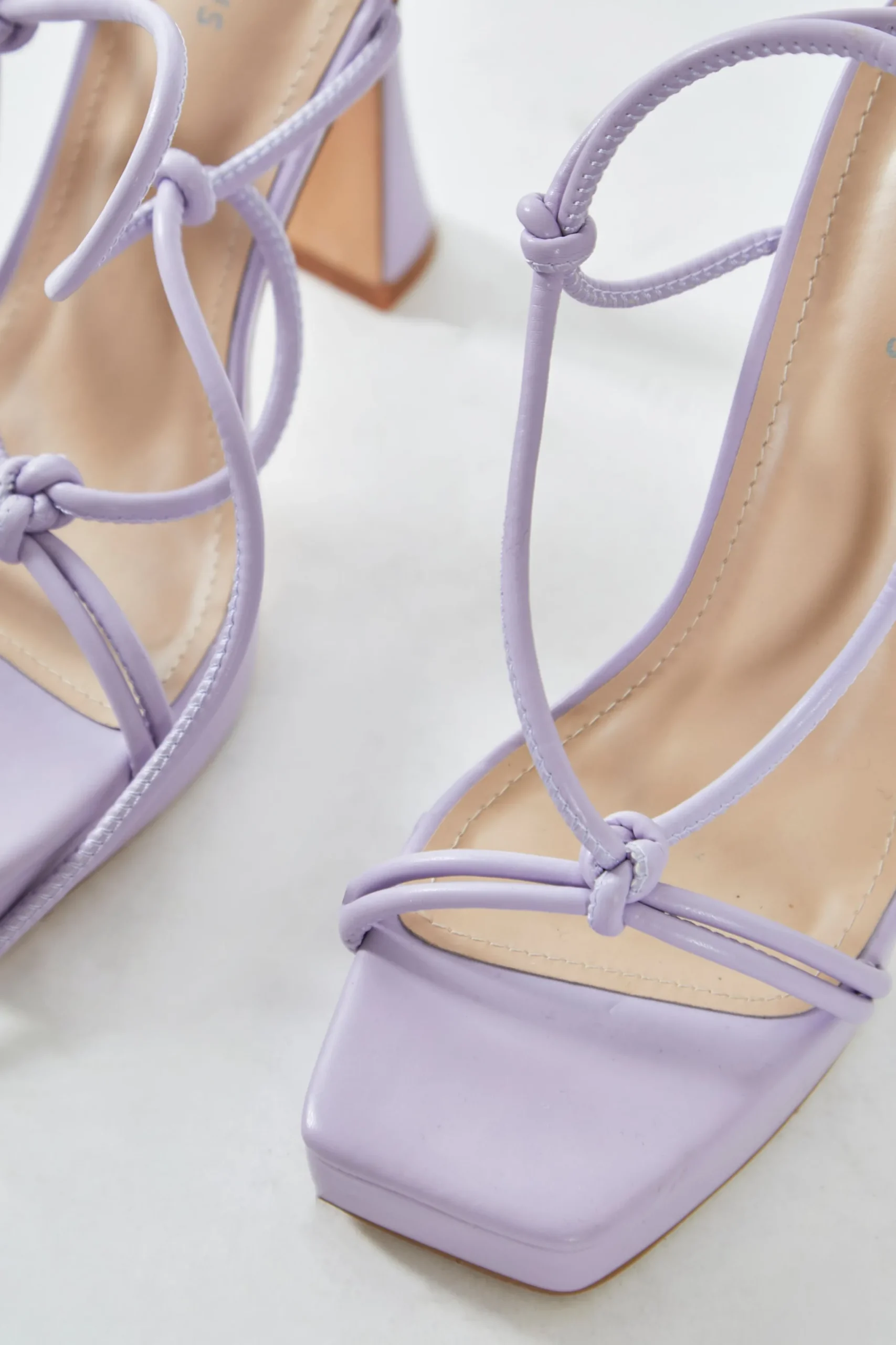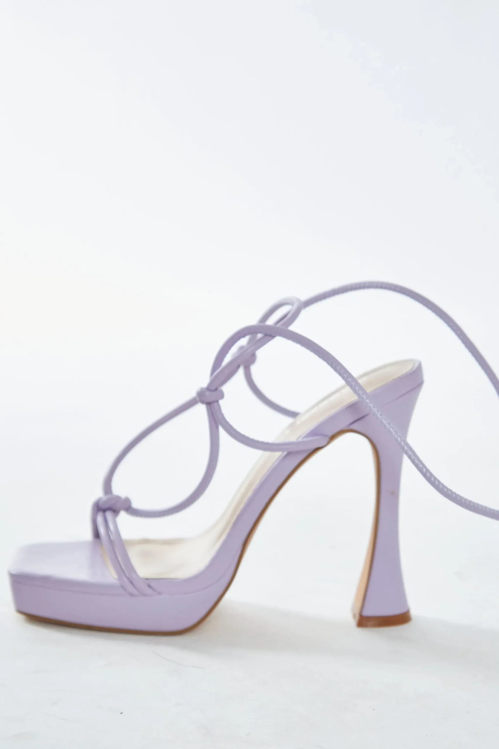 Glamorous Lilac Lace Up Flared Heels. These lace up heels are your new shoe-drobe essential. Featuring a flared heel, open square toe and a lace up fastening, these heels will elevate every look. Super chic and highly versatile, looks great teamed with jeans for date night or dressed up with a floral dress for a wedding.